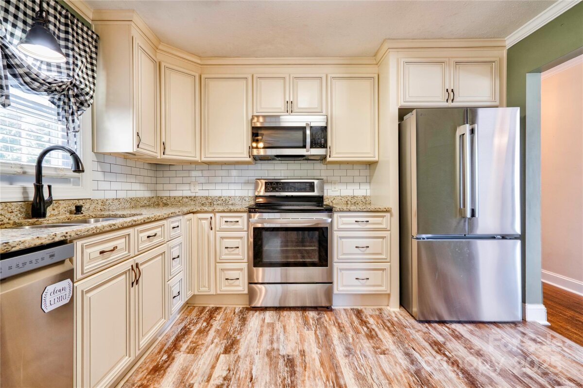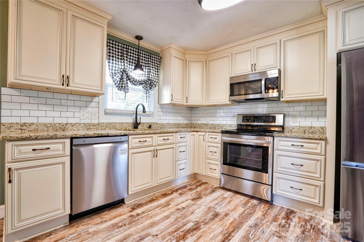 Welcome home to this adorable brick ranch on nearly an acre (0.91 acres) with a fenced backyard and a covered carport. Recent updates include a newer roof (2023), giving peace of mind for years to come. Inside, you’ll love the bright, open kitchen with granite countertops, plenty of natural light, and all appliances included ; yes, even the refrigerator, washer, and dryer! The spacious bathroom features double vanities, offering comfort and convenience. This home is truly move-in ready, combining modern updates with classic charm. All of this in a great location, just 20 minutes to Gastonia and only minutes to Cherryville.