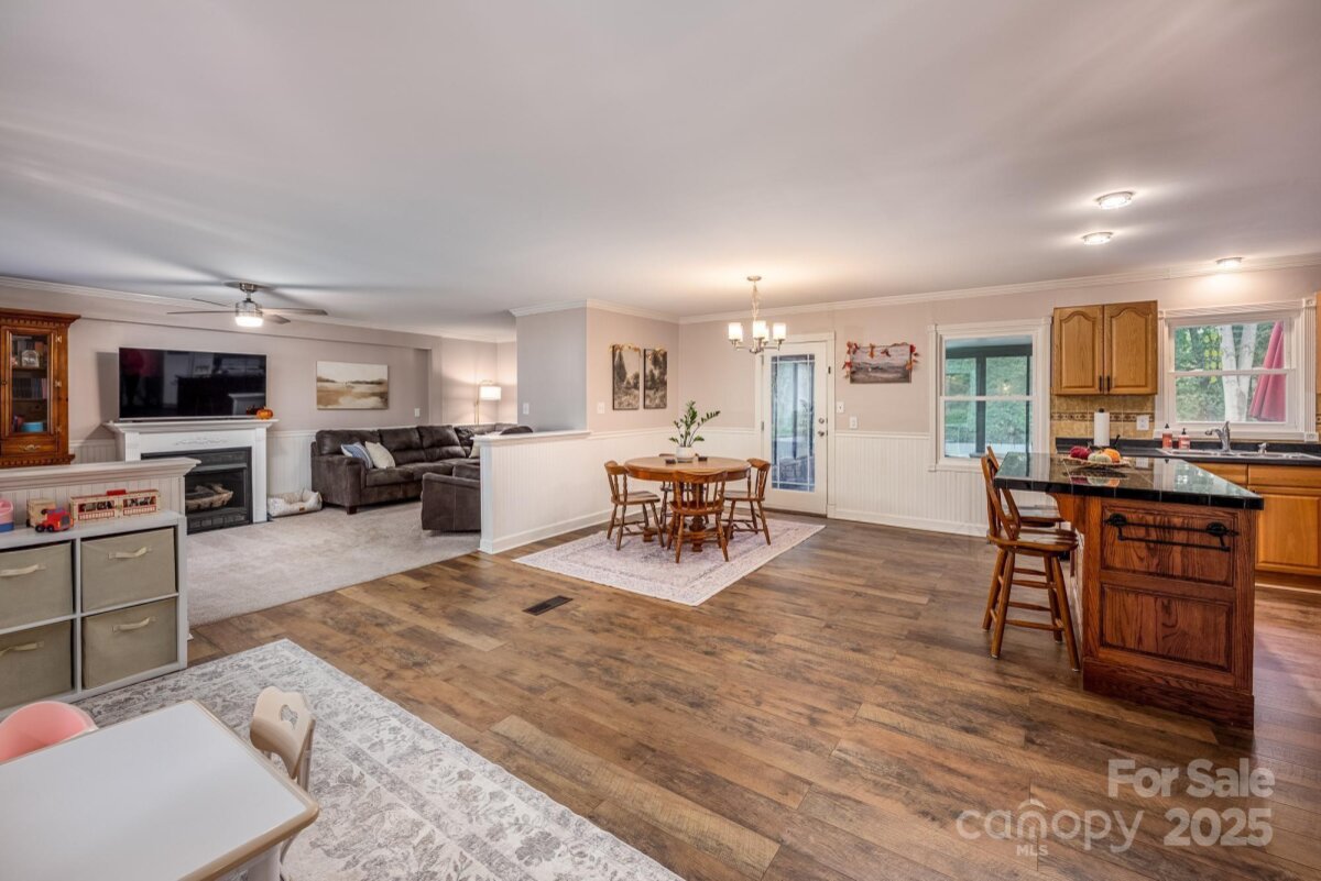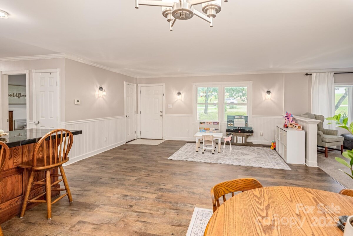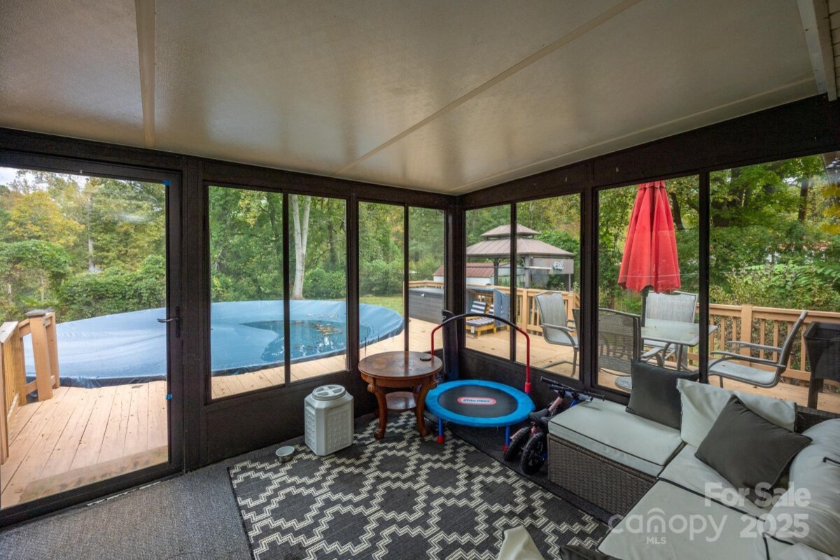Immaculate 3 BR/1.5 ranch home on 1/2 acre lot in a great location on the southeast side of Mooresville, not in the city limits (so no city taxes!) but in the Mooresville School District. Beautiful lot with established trees, screened in porch/sunroom overlooking large backyard and new above-ground swimming pool. Seller just had new vinyl plank flooring installed in kitchen and dining areas, and new carpet in bedrooms. Beautiful, neutral paint, open floorplan with island in kitchen. Pella energy star windows, no HOA!