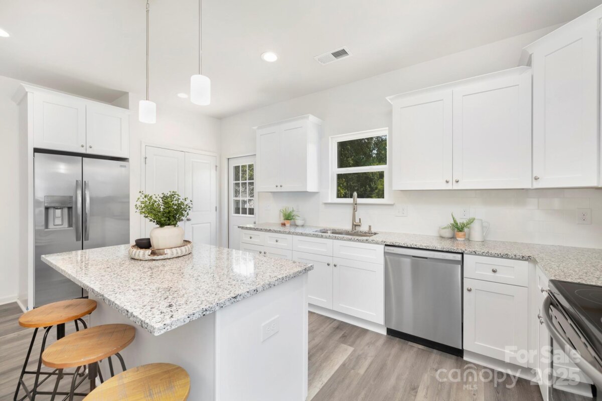Northway Homes presents this beautifully crafted 3-bedroom, 2-bathroom ranch-style home in the desirable 28269 area of Charlotte. Offering over 1,200 square feet of modern living space, this thoughtfully designed layout features an open-concept living area that seamlessly connects to a stylish kitchen with contemporary cabinetry, sleek appliances, and ample counter space—perfect for both everyday living and entertaining. The private primary suite includes a full en-suite bath, while two additional bedrooms provide versatility for guests, a home office, or hobbies. Located just minutes from I-85 and I-485, this home offers convenient access to Uptown Charlotte, shopping at Northlake Mall, and nearby parks and greenways. Don’t miss your opportunity to own this brand-new Northway Homes property in one of Charlotte’s most convenient and growing areas! *Photos may reflect a similar floor plan and not the exact home.