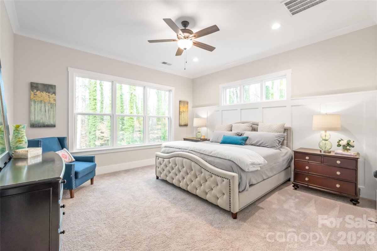 Location, Location...Minutes from the town of Mooresville & across the street from Mooresville Golf Club. Convenient to I-77, Lake Norman Regional Medical Center, Schools, Parks, Lake, Shopping, Restaurants & much more! The Home's Open Floorplan is perfect for everyday living, or entertaining. Luxury Primary Suite is on the main level. Gourmet kitchen has Large Island & Walk-In pantry and is open to the Great Room which flows out to the Huge Covered Porch overlooking the Wooded Private Yard. Upper Level has 3 Spacious Bedrooms, & 2 Full Bathrooms. Large Loft Area for entertaining & Walk-In storage. 3-Car Garage with ample storage.