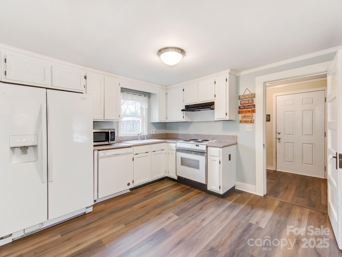 Charming 2-bedroom, 1-bath bungalow situated on a large lot with a classic rocking chair front porch. This move-in ready home features brand new LVP flooring throughout, a welcoming living room, and an open kitchen with ample cabinet space. The full bath is well-appointed, and both bedrooms offer comfortable space. Major updates include a new HVAC system installed in 2020 and a roof replaced in 2016. Enjoy outdoor living on the large back patio with retaining wall—perfect for entertaining—overlooking an expansive backyard. Additional highlights include a detached building/workshop equipped with 30-amp/120V electrical service, ideal for hobbies or storage. Conveniently located with easy access to Hwy 601 and Hwy 29, and just 8 minutes from Historic Downtown Concord, shopping, dining, and entertainment.
