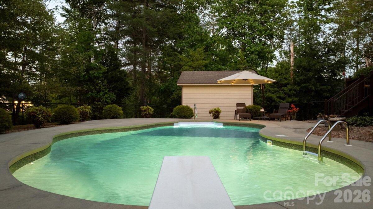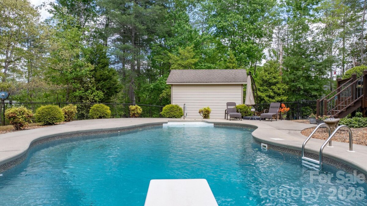 Welcome home to this stunning all-brick residence nestled in the highly sought-after Doe Run subdivision of Granite Falls, where charm, craftsmanship, and convenience meet on half an acre of beautifully wooded property. Mature trees frame the lot, offering a peaceful, picturesque setting and a serene backdrop you'll enjoy year-round. Even better, this home is part of a waterfront community with boating access, giving you the lake lifestyle without the lake price tag and best of all, there is NO HOA. Step inside to discover real hardwood floors flowing throughout, with tile, a cozy gas fireplace anchoring the living room, and custom ceiling speakers built right into the living space, perfect for entertaining or relaxing at home. Thoughtful main-level living offers a spacious primary suite, convenient main-floor laundry, and a layout that lives easy for everyday life. Upstairs you'll find the additional bedrooms along with a versatile bonus room ideal for a media space, home office, playroom, or guest retreat. With three bedrooms, two and a half bathrooms, and a two-car garage, this home strikes the perfect balance of comfort and functionality. The outdoor living is truly the showstopper. Step from the back deck into your fully fenced pool area featuring a custom inground pool, pool liner replaced approximately four years ago (2022) and pool pump replaced roughly three to four years ago (2022–2023) designed for summers full of memories with family and friends. This home has been impeccably maintained with major-ticket items already taken care of: both heat pumps were replaced in 2025 (a $19,000 investment), the garage door motor was upgraded in 2024 and includes smart-home technology that allows you to open your garage and view a live camera feed straight from your phone, and the home is protected by an alarm system for added peace of mind. The crawl space foundation rounds out a property that has been thoughtfully cared for inside and out. All-brick construction, an acre, custom pool, mature trees, waterfront community access, and NO HOA opportunities like this in Granite Falls do not come around often. Schedule your private tour today.