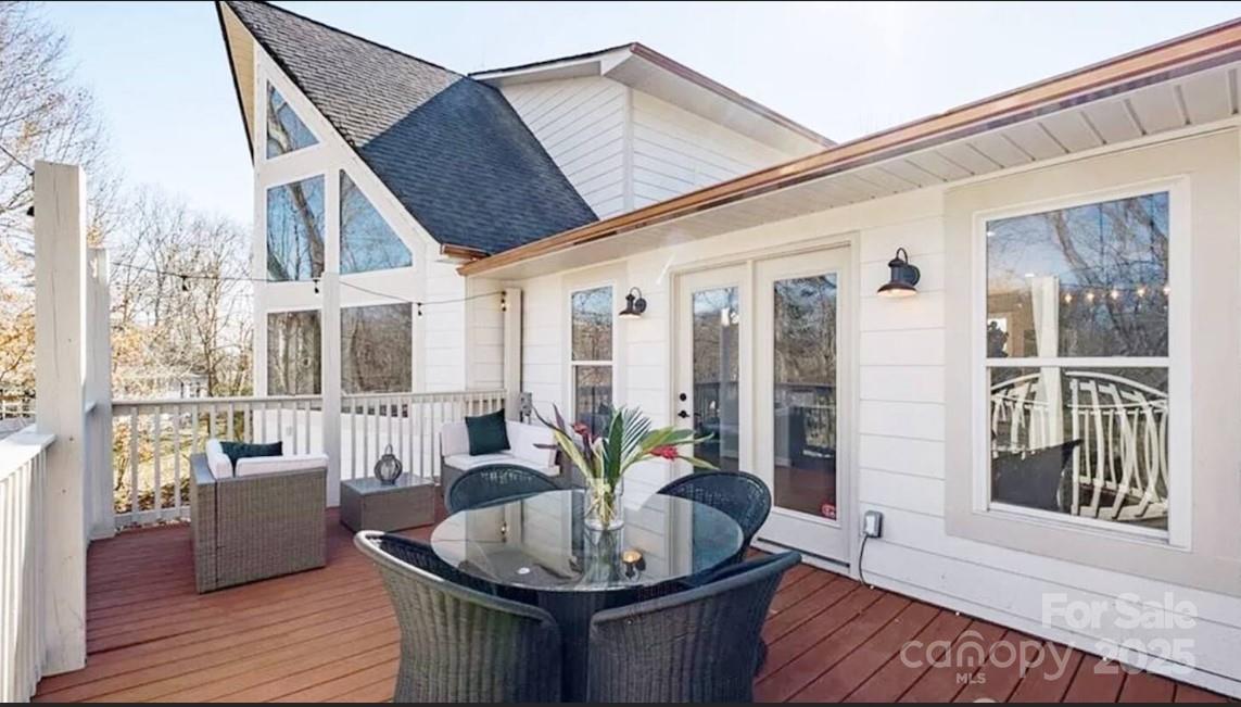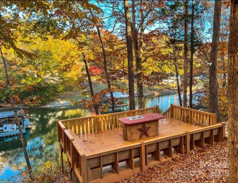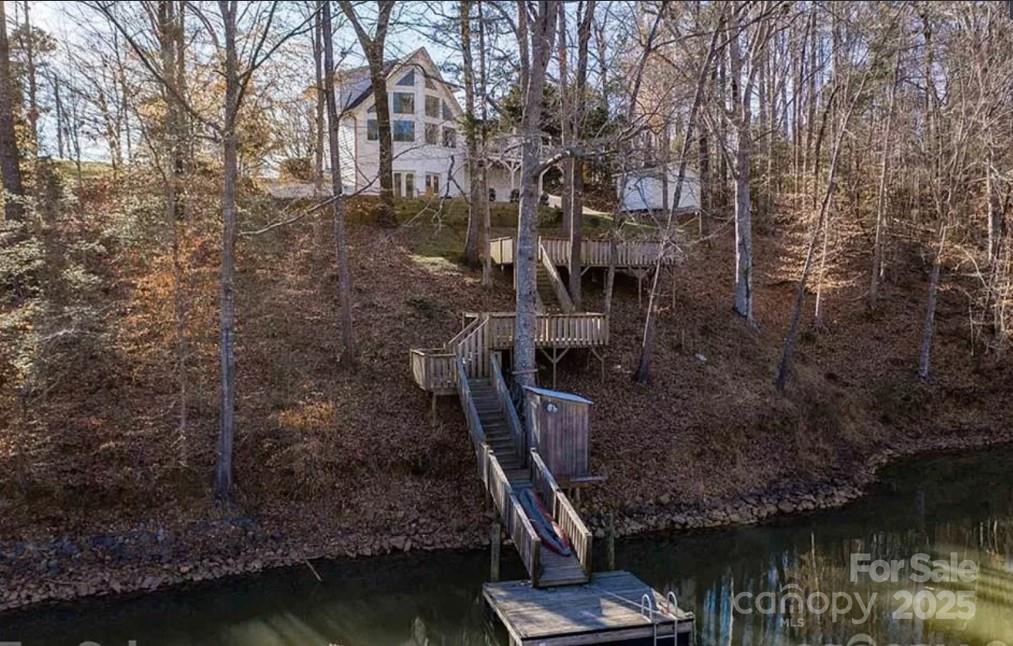 This waterfront Lake Norman retreat offers the perfect blend of comfort, privacy, and recreation. Situated on a large wooded lot with mature trees, the property features a private floating dock in a peaceful no-wake cove, while still providing quick access to public boat ramps and the main channel. The home boasts 3 bedrooms and 2 flex rooms, each with a closet, 3.5 bathrooms, and a thoughtful tri-level design. The main floor serves as the heart of the home with spacious primary living areas, while the walk-out basement is designed for entertaining. The top floor is dedicated to the Primary Suite, where you can unwind on your private balcony while enjoying stunning sunset water views. The lower level is ideal for gatherings, offering a wet bar, game area, media area, and two versatile bonus rooms, each with closets. These flexible spaces can function as a home office, gym, guest quarters, or hobby rooms, tailored to your needs. Outdoor living is at its best with expansive decks and multiple balconies, creating inviting spaces to relax, host friends, or simply take in the lakeside breeze. A newly installed Viking hot tub (2024) adds a touch of luxury, while the detached storage shed provides convenience for tools, water toys, or seasonal gear. Additional features include hardwood floors throughout, a horseshoe driveway, and ample parking for up to 8 vehicles. Despite its tranquil setting, the property offers quick access to Troutman and Statesville, where you’ll find shopping, dining, and community amenities. This property currently operates as a successful short-term rental, generating strong rental revenue and offering excellent investment potential for buyers seeking both personal enjoyment and income-producing opportunity. Owner is open to selling fully furnished. Whether you’re seeking a primary residence, a vacation getaway, or a home designed for entertaining, this Lake Norman property combines lakeside living with modern comforts in an unbeatable location.