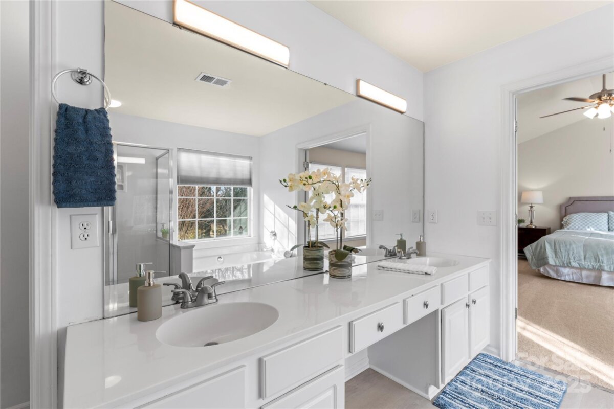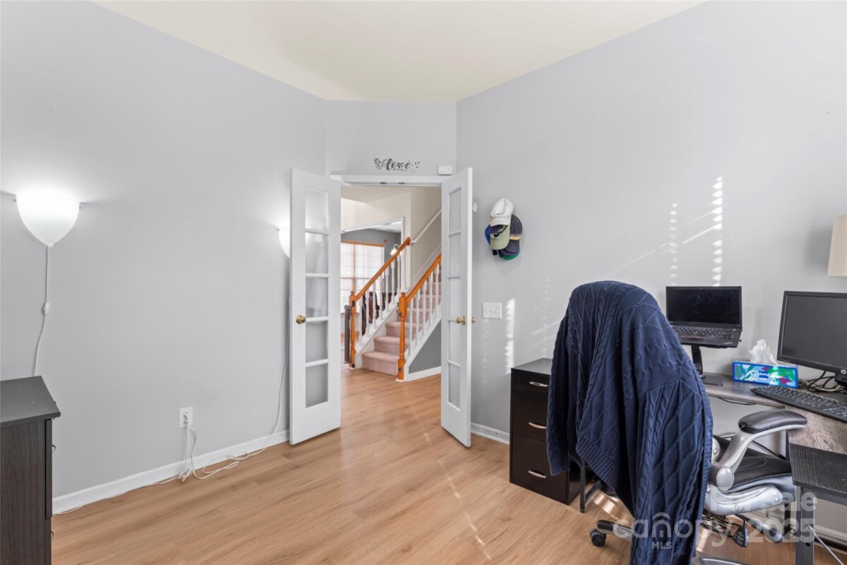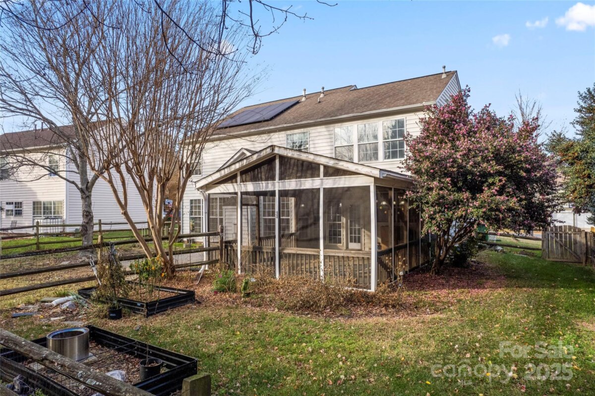 THE WAIT IS OVER! This beauty is ready for you! Amazing, stately home on large .31 acre lot which backs up the driving range of the esteemed Highland Creek golf course. Step in to the 2-story foyer, and you are greeted by BRAND NEW LVP flooring which flows throughout main level offering a peaceful continuity as you transition through the home. Spacious dining room features chair-rail & picture frame molding and is perfect for the upcoming holiday gatherings. Living room/den area provides a cozy nook to catch up on some reading or maybe host lively game nights! You don't need it to use it as an office space as the home smartly offers an office with french doors for privacy plus mounted wall cabinets for all your storage needs. Spacious family room with gas-log fireplace and detail trim is the perfect setting to snuggle up with popcorn for movie nights. Updated kitchen includes sleek classic white cabinets, stainless steel applicances which includes a wall oven and induction cooktop with range hood, gorgeous granite countertops, undermount farm sink, tile backsplash, decorator shelving, spacious walk-in pantry, wall of cabinets & convenient butcher block center island with storage. Upstairs, you will find NEW CARPET, four spacious bedrooms, secondary bathroom & conveniently located laundry. 18x20 screened patio with ceiling fans offers fun picnic dinners or quiet evenings overlooking the large fenced backyard. Rooftop solar panels supplement monthly electrical expense. Fabulous Highland Creek amenities and easy access to all the things the area provides: shopping, dining, entertainment, access to interstates 77, 85 & 485. WELCOME HOME!!