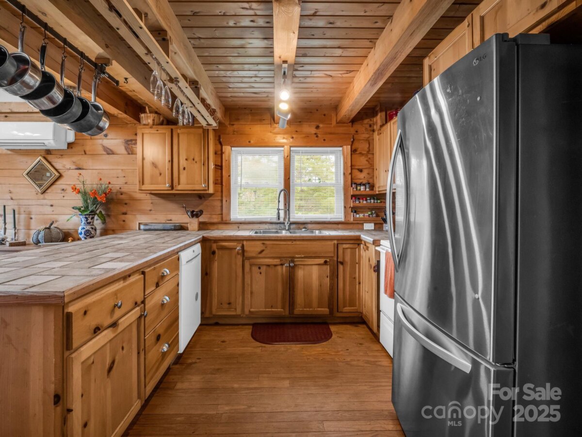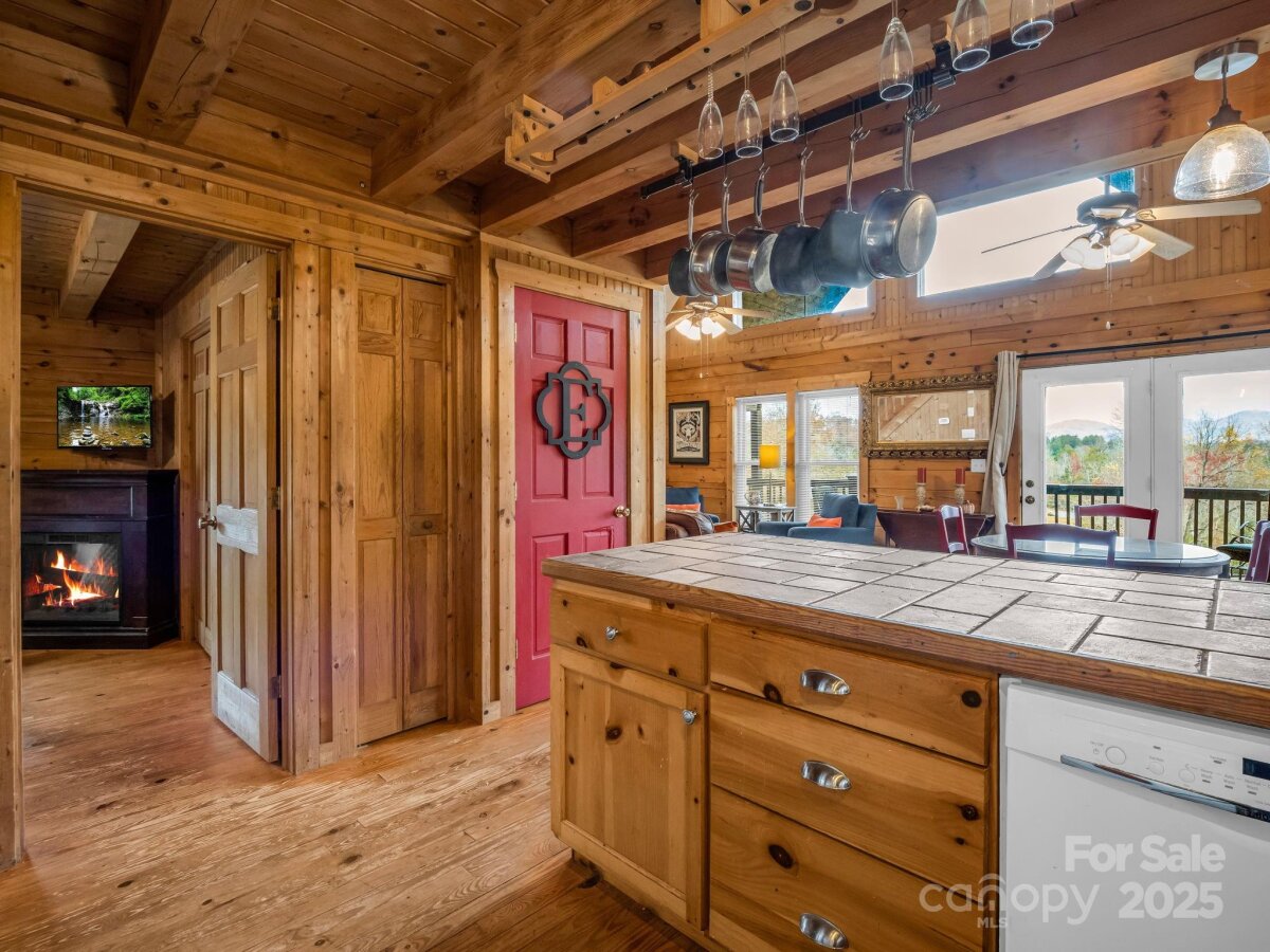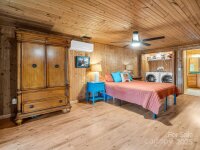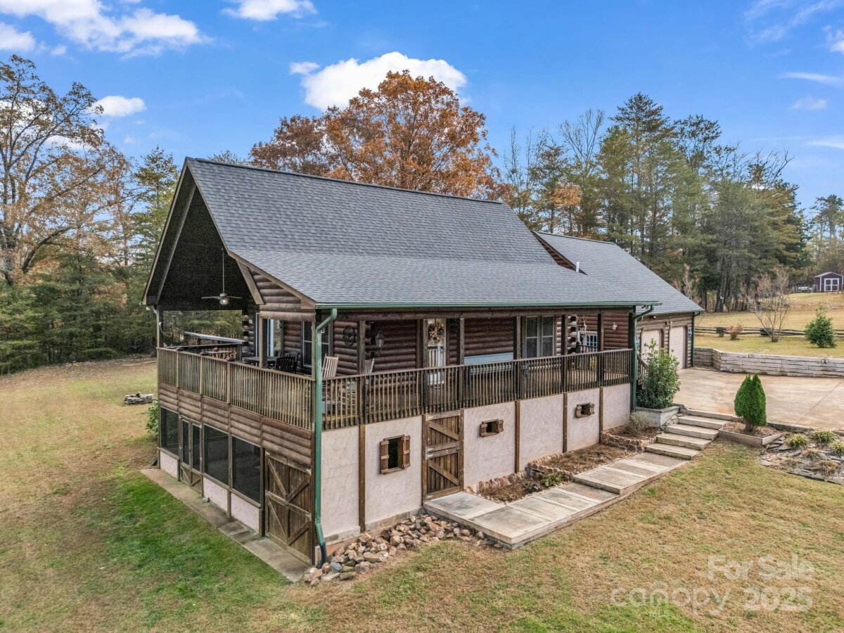Cozy log cabin with a 2-car detached garage at the tip of a quiet cul-de-sac, overlooking gorgeous year-round, long range mountain views and the adjoining Emerald Lake. Front-to-side wrap-around covered porch perched above this 3.07-acre parcel offers a peaceful setting & sunsets. The main level boasts an open concept cathedral ceiling living room, kitchen with a nice breakfast bar, dining area, laundry closet, full bathroom, and primary bedroom. The bedroom or sleeping area for guests. Downstairs in the walk-out finished basement you’ll find a large en-suite bedroom with an office/flex space, full bath, laundry closet, and a screened, covered porch with access to the backyard. There is also an unfinished fully insulated storage space that could be converted to finished, and another exterior entrance to a tool storage area. The main level two car garage has a finished unheated area above the garage with two closets that could be turned into another en-suite bedroom by adding plumbing in one of the closets for a bath and utilizing one of the unused mini splits from the main house. Concrete drive with ample parking and a RV parking area with water, electric and sewer hookups. Brand new HVAC system installed Nov. 1st, 2025.