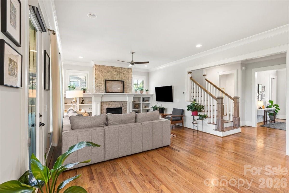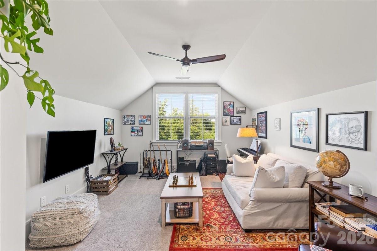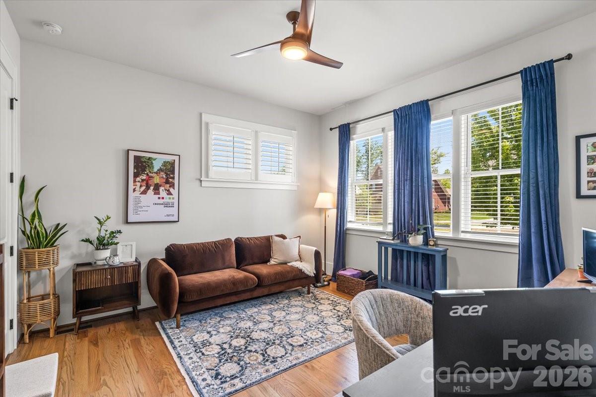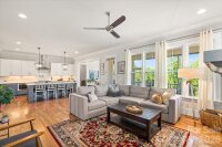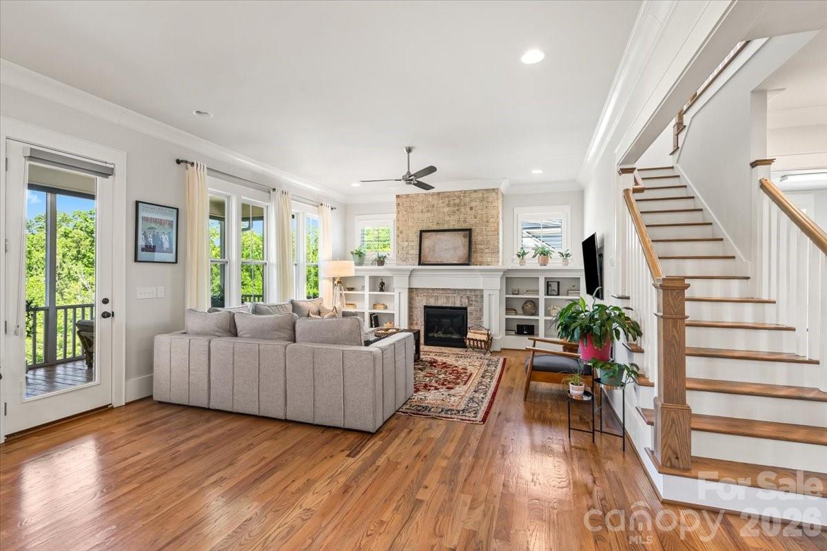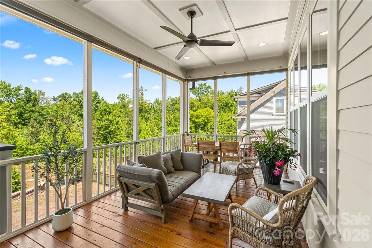 559 Preservation Drive is where elevated design meets everyday comfort. A welcoming rocking-chair front porch sets the tone for this acclaimed Saussy Burbank build; inside, 10' ceilings and light-filled rooms invite you to stay. At the heart of the home, a gas fireplace is flanked by custom built-in bookshelves and crowned with transom windows washing every gathering in natural light. Plantation shutters add quiet polish throughout. The main-level primary suite offers two generous walk-in closets and a beautifully updated 2025 en suite 5-piece bathroom featuring new tile shower, countertops, and fixtures, a rare upgrade in a home only 5 years young. A second main-level bedroom with full bath flexes as guest space, in-law suite, or private office. Upstairs, two bedrooms share a thoughtful jack-and-jill bath with a dual-sink vanity, while a versatile bonus room may function as a fifth bedroom, media room, or playroom. The lower-level office adapts to whatever life calls for next ... formal dining, workout space, or work-from-home retreat. Step outside and exhale. The expansive screen porch with privacy shades opens to tranquil, private views, while the extended lower patio, complete with gas grill connection and a showcase landscaped retaining wall beyond the desirable open, flat back yard area, made for entertaining. A neighborhood walking path runs just behind the property and beyond that, a beautiful treescape. Recent upgrades include heat-tolerant bermuda grass, an expanded driveway, and a whole-home surge protector. Spacious main-level laundry, a drop zone, and a 2-car garage with attic storage complete the picture. Beautifully maintained and move-in ready in the highly coveted Nims Village, Fort Mill, close to highly rated schools, shopping, restaurants, greenways, and more.