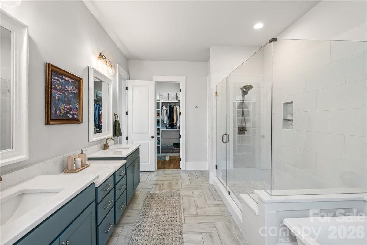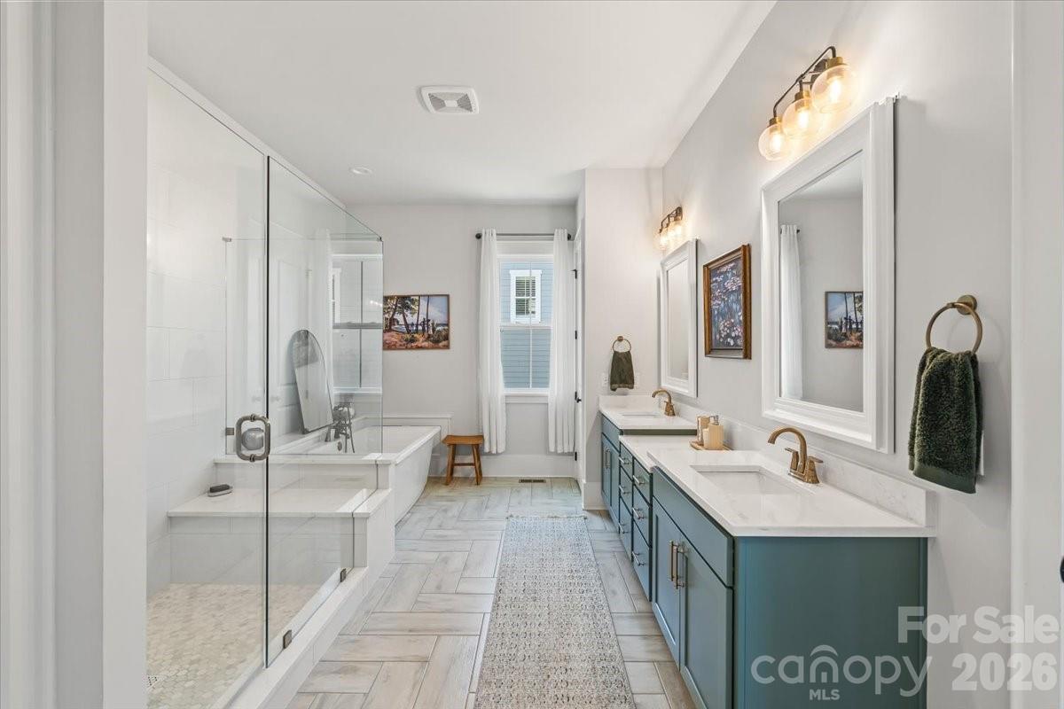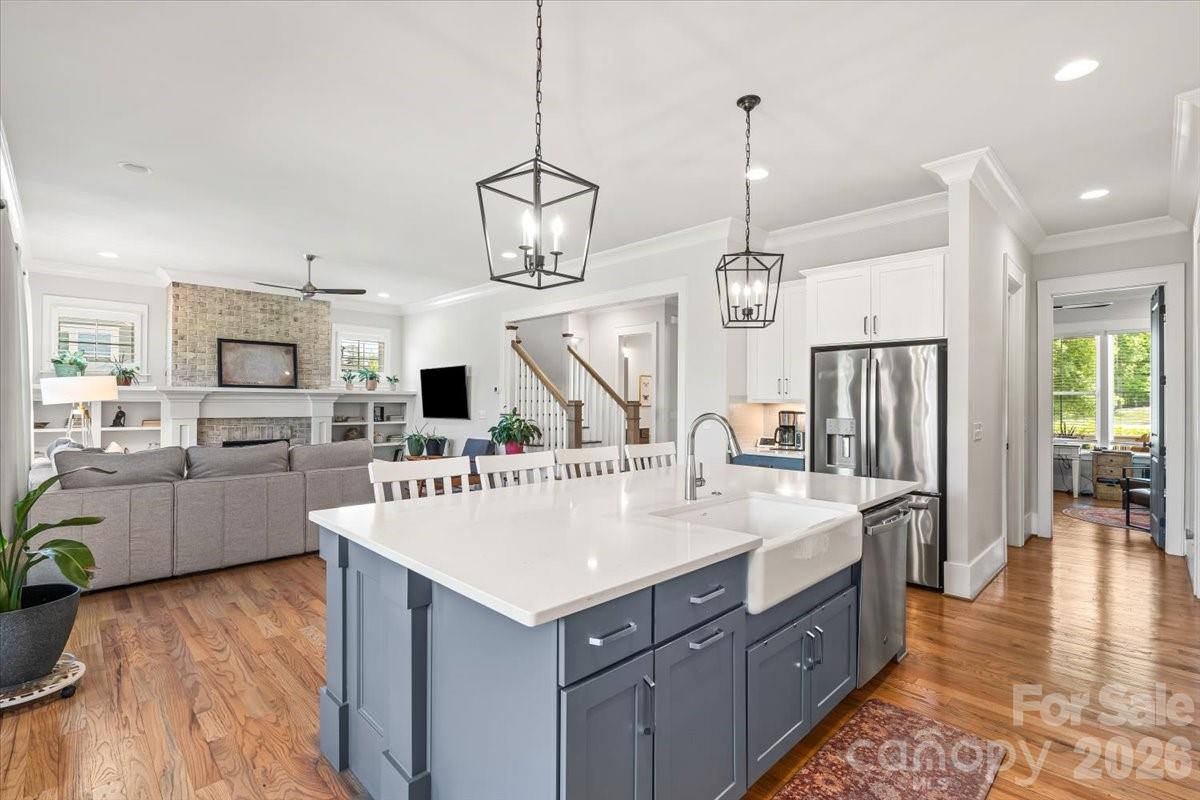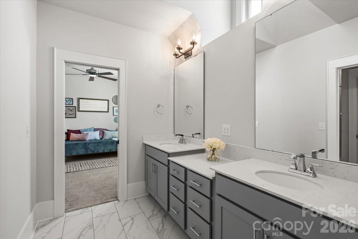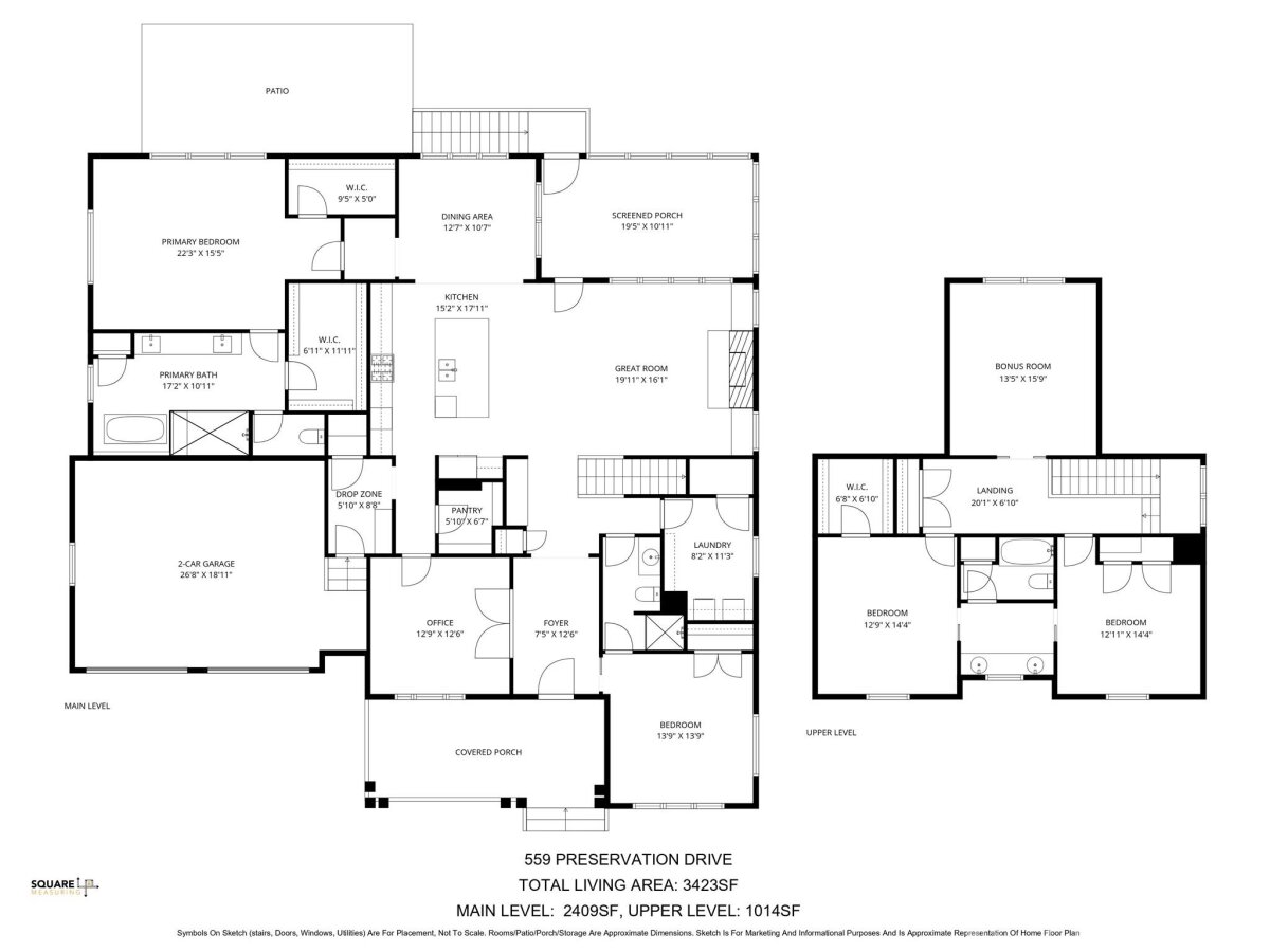 559 Preservation Drive is where elevated design meets everyday comfort. A welcoming rocking-chair front porch sets the tone for this acclaimed Saussy Burbank build; inside, 10' ceilings and light-filled rooms invite you to stay. At the heart of the home, a gas fireplace is flanked by custom built-in bookshelves and crowned with transom windows washing every gathering in natural light. Plantation shutters add quiet polish throughout. The main-level primary suite offers two generous walk-in closets and a beautifully updated 2025 en suite 5-piece bathroom featuring new tile shower, countertops, and fixtures, a rare upgrade in a home only 5 years young. A second main-level bedroom with full bath flexes as guest space, in-law suite, or private office. Upstairs, two bedrooms share a thoughtful jack-and-jill bath with a dual-sink vanity, while a versatile bonus room may function as a fifth bedroom, media room, or playroom. The lower-level office adapts to whatever life calls for next ... formal dining, workout space, or work-from-home retreat. Step outside and exhale. The expansive screen porch with privacy shades opens to tranquil, private views, while the extended lower patio, complete with gas grill connection and a showcase landscaped retaining wall beyond the desirable open, flat back yard area, made for entertaining. A neighborhood walking path runs just behind the property and beyond that, a beautiful treescape. Recent upgrades include heat-tolerant bermuda grass, an expanded driveway, and a whole-home surge protector. Spacious main-level laundry, a drop zone, and a 2-car garage with attic storage complete the picture. Beautifully maintained and move-in ready in the highly coveted Nims Village, Fort Mill, close to highly rated schools, shopping, restaurants, greenways, and more.