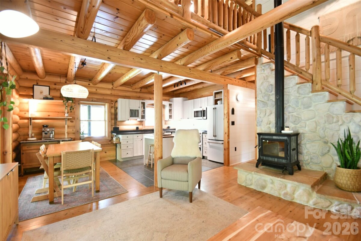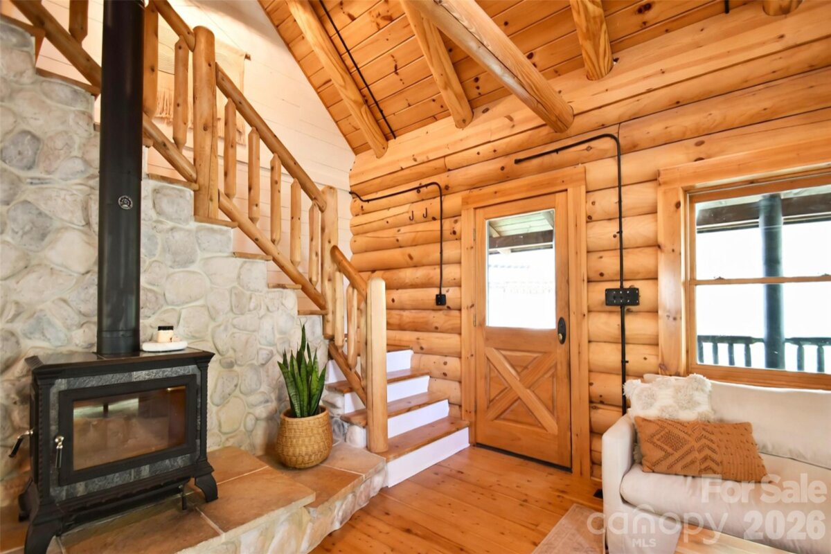 Tucked away on over 13 acres of pristine woodland, this extraordinary custom-crafted modern log estate offers a rare fusion of timeless craftsmanship and refined, modern comfort. Built by renowned log home artisans, this 3-bedroom, 2-bath residence is a masterclass in authentic mountain-inspired living—where every detail has been thoughtfully designed to elevate both form and function. Constructed with striking 10-inch Swedish Cope white pine exterior walls and complemented by rich 8-inch yellow pine beams, rafters, and purlins, the home exudes warmth, character, and enduring quality. Beneath it all, a Superior Wall insulated foundation ensures lasting efficiency and structural integrity. Inside, the open-concept great room and kitchen create an inviting space ideal for both intimate evenings and effortless entertaining, while distinctive industrial accents add a sophisticated edge. The primary suite is a true retreat, featuring a spa-inspired bath with a Jacuzzi tub, complemented by a loft. Step outside and experience the essence of elevated country living. A sweeping wraparound porch invites peaceful mornings and golden-hour sunsets among the fruit trees, while the outdoor hot tub offers a private sanctuary beneath the stars. The beautifully designed barn-style garage, additional carport, and 12x12 outbuilding provide both charm and versatility. There are private ATV trails and a beautiful creek running through the woods of the property. Despite its serene, secluded setting, this property is ideally located just minutes from the Catawba River and Lake Norman, as well as the charm of the Village of Catawba, historic Murray’s Mill, and the covered bridge. Vibrant downtown Statesville—with its boutiques, dining, and live music—is also just a short drive away. This is more than a home—it’s a destination. A place where nature, craftsmanship, and lifestyle converge into a daily escape unlike any other.