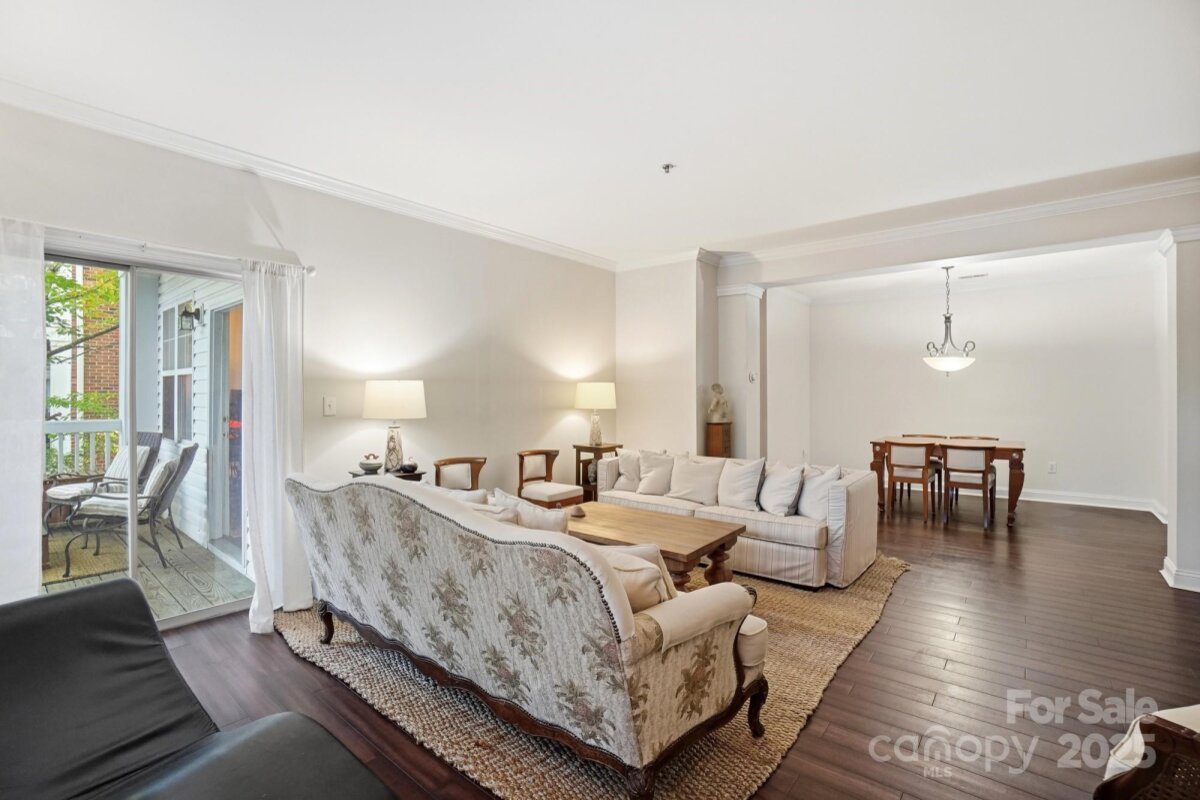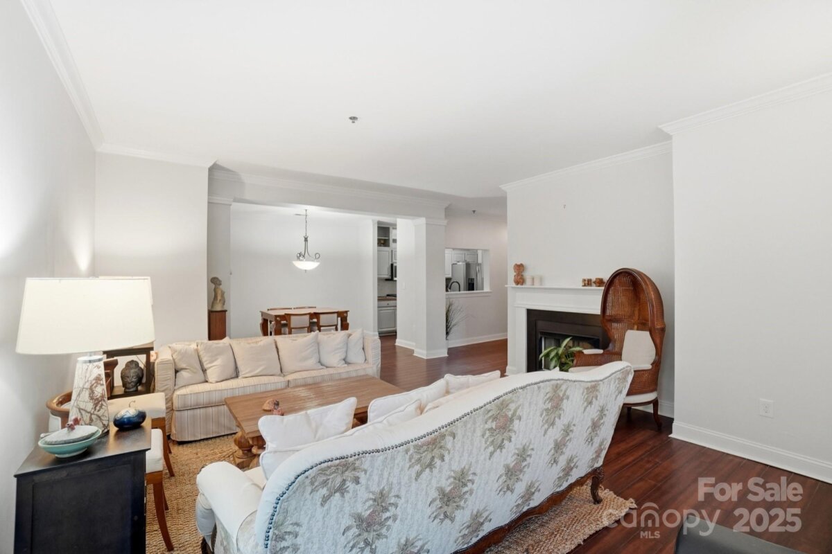 Welcome Home to this lovely 3 Bedroom, 2 Bath Condo at Wren Crest of Southpark. Beautifully upgraded & well maintained Condo featuring Hardwood & Tile Floors throughout, Neutral Paint and Window Blinds. The Kitchen features: Butcher Block Counters, Tile Back Splash, Gas Stove, Refrigerator, Dishwasher, Built in Microwave, Farmhouse Sink and lots of Cabinetry including under counter lighting. This Condo also features a Split Bedroom Floor Plan with Walk In Closets in the Primary and 1 other additional Bedroom. 3rd Bedroom has access to the Covered Patio and could be used as a Home Office or Guest Bedroom. Both Full Baths have been upgraded with Tile Floors, Lighting, Mirrors, Sinks and Custom Walk in Marble Tiled Showers! Other items to note are: Covered Patio with access from the Great Room and 3rd Bedroom, Gas Fireplace in the Great Room, Walk in Laundry Room/Pantry in the Kitchen, Crown Molding, 2nd Floor Condo, Open Parking, Convenient location to lots of Shopping and Dining in Southpark, close to Park Road Park and just a few minutes away from Park Road Shopping Center.