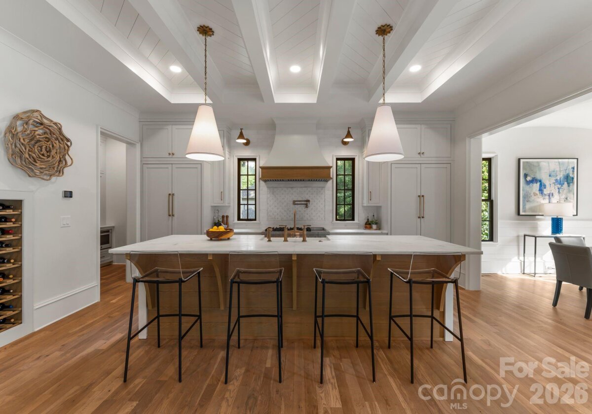 Tucked away on a private half-acre homesite in Charlotte’s coveted Mammoth Oaks community, 5625 Timber Lane is an exceptional custom home by Pike Properties that effortlessly blends timeless architecture with refined, modern living. With 5 bedrooms and 4.5 baths, every space has been thoughtfully designed to balance comfort, functionality, and understated luxury. Inside, an open and light-filled floor plan welcomes you with soaring ceilings and rich hardwood floors throughout. The kitchen serves as the centerpiece of the home, featuring high-end appliances, a walk-in pantry, and an oversized island that flows into the dining area and inviting family room anchored by a fireplace. The main level also includes a dedicated study, ideal for a home office or quiet retreat, along with a spacious primary suite designed for privacy and relaxation with a spa-inspired bath. The second level features three generously sized bedrooms, including one ensuite with its own private full bath, while the remaining two bedrooms are connected by a well-appointed Jack-and-Jill bathroom. A flexible loft-style space provides the perfect area for a homework station, lounge, or additional living space. The third level adds even more versatility with a private guest suite and bonus area—ideal for extended family, overnight guests, or a private retreat. Outdoors, a covered porch with a fireplace creates a welcoming space for year-round enjoyment while overlooking a beautifully landscaped backyard framed by mature trees that offer both privacy and room to play. Located just minutes from SouthPark, this home offers an exceptional combination of thoughtful design, everyday comfort, and one of Charlotte’s most desirable locations