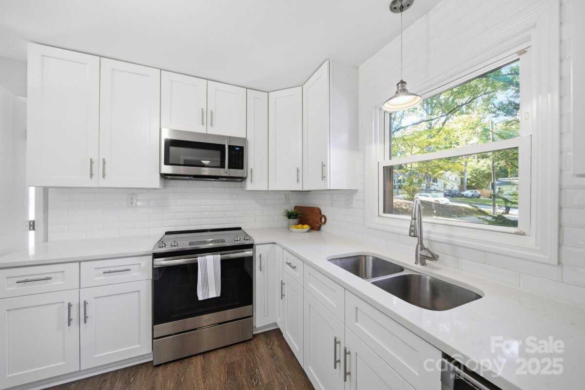 This bright and inviting ranch blends classic Charlotte charm with modern comfort. Sunlight fills each room, highlighting fresh updates and easy flow throughout. A new roof (2024) and gas water heater (2025) provide lasting peace of mind, while the cheerful kitchen shines with stainless steel appliances, modern cabinetry, and plenty of counter space. The living and dining areas feel naturally connected, perfect for both quiet mornings and casual gatherings. Three bedrooms, including a spacious primary suite, offer inviting spaces designed for rest and relaxation. The bonus/flex room is currently used as an office and gives added flexibility for guests, work, or play. The laundry room provides ample room for additional storage. Outside, enjoy a large fenced backyard with lush grass and room to relax or garden. Conveniently located in Montclaire and Madison Park, this home offers quick access to dining and shopping in SouthPark, parks and greenways close by, and just 10-15 min to SouthEnd and Uptown Charlotte. Whether you’re stepping into homeownership or simplifying life with style, this home offers comfort, updated convenience, and undeniable charm.