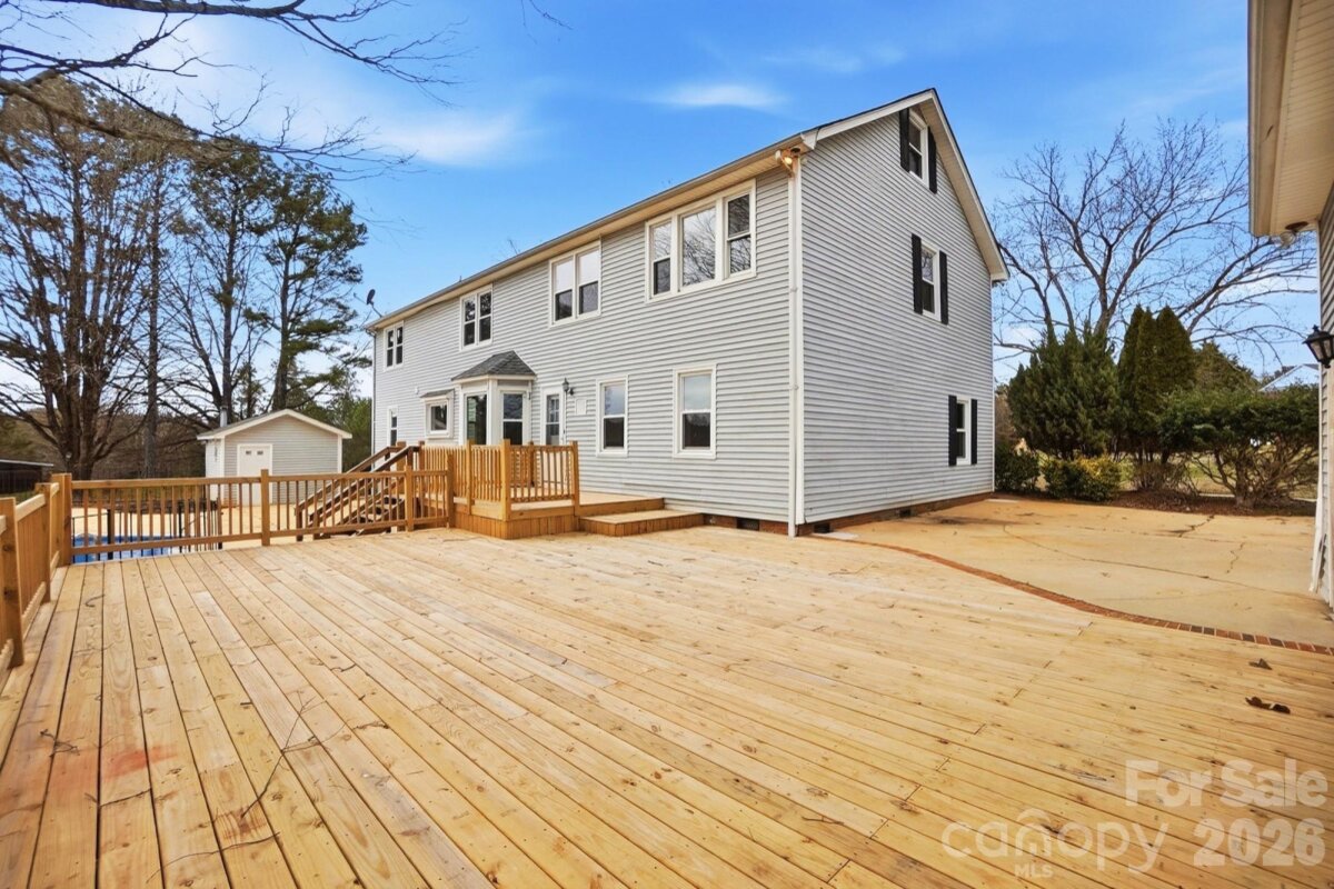 Discover a rare retreat where privacy, space, and comfort come together on 4 beautiful acres in a prime location. This must-see property offers the perfect blend of everyday living and peaceful escape — complete with your own in-ground pool oasis. A long, private driveway welcomes you home, revealing a picture-perfect setting with a charming covered front porch — the ideal spot for morning coffee or sunset views. Inside, the Chef's kitchen is the heart of the home, featuring a huge window that frames the serene backyard and fills the space with natural light. The adjoining breakfast area with bay window creates a cozy place to gather, flowing seamlessly into the spacious living room with built-ins. The main level also offers exceptional flexibility with a bonus room, dining room or office, and a second living room with a fireplace — perfect for relaxing evenings. The primary suite provides a private retreat with its own full bath. Plus three additional bedrooms and two more full bathrooms offer generous space for everyone. Outside welcomes you to your backyard paradise. An enormous deck overlooks the expansive patio and in-ground pool, creating the ultimate setting for entertaining or unwinding in total privacy. Surrounded by open space and nature, this outdoor haven truly feels like a getaway. Complete with a detached 2-car garage and pool house/Storage Shed with 1/2 bathroom, this exceptional property offers room to breathe, room to grow, and a lifestyle that’s hard to find. A rare opportunity to own your own private retreat — schedule your showing today.