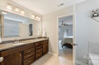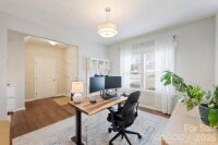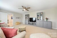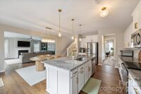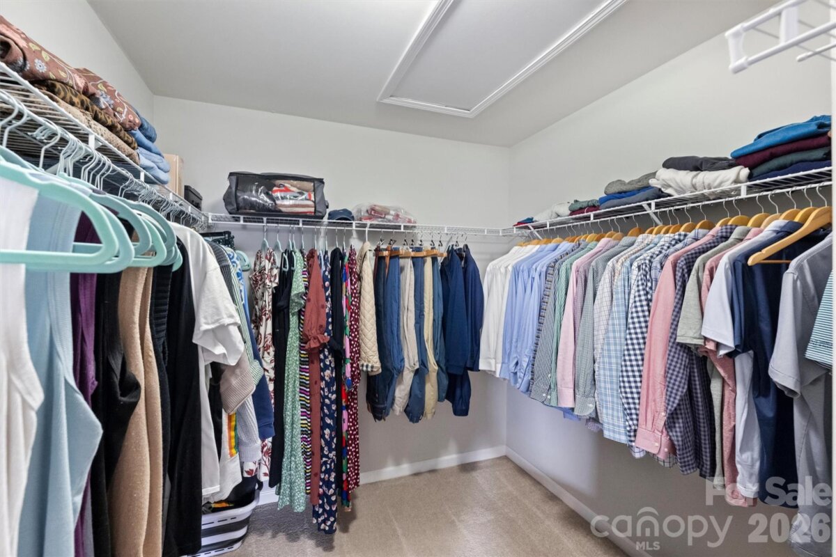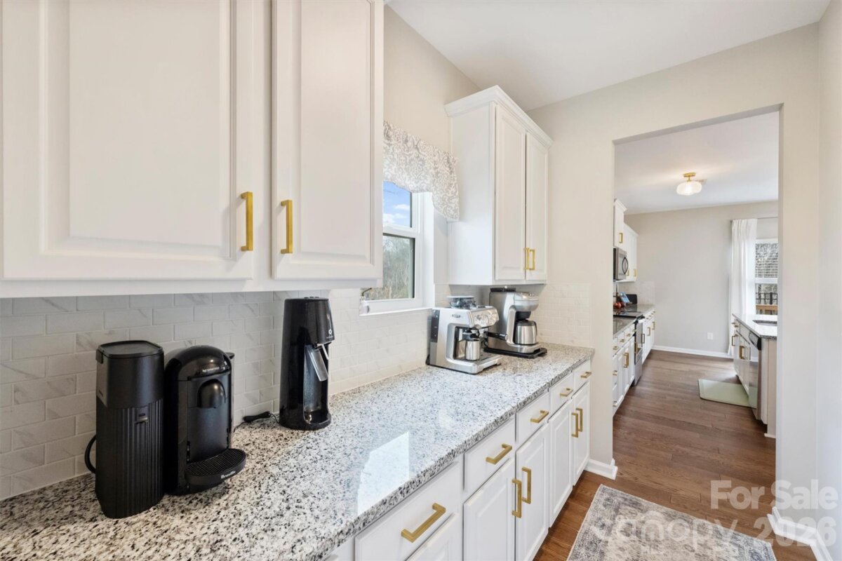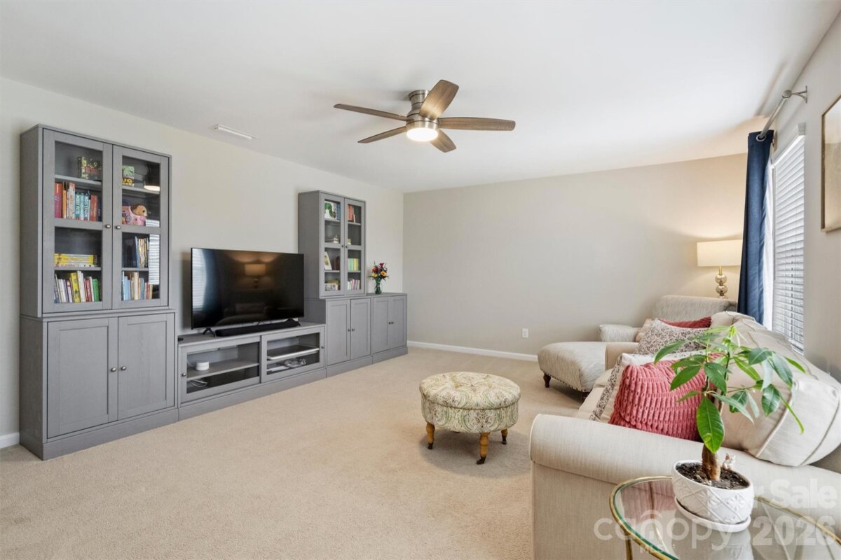 Beautifully maintained 3BR/2.5BA home with all bedrooms upstairs and a thoughtfully designed layout that offers both comfort and functionality. Situated on a flat lot with excellent privacy, this home features a fully fenced backyard with 6-foot black powder-coated aluminum fencing, irrigation in the front, back, and sides, a tidy deck perfect for entertaining, decorative peach tree, and Bermuda grass lawn. A $12,000 retaining wall adds both structure and value. The home backs up to an expanse of mature trees and natural area and Sugar Creek within the neighborhood, and is only 5 homes from a Greenway access point! Inside, upgraded engineered hardwood floors span all main living areas. The front formal living room is currently used as a home office, offering flexible space to fit your needs. The inviting living room showcases custom built-in shelving and cabinetry, an electric fireplace, and is beautifully open to the kitchen. The kitchen is a true centerpiece with granite countertops, abundant cabinetry and shelving, a large island with seating and three pendant lights, brushed gold hardware, new lighting, smooth-top electric range, built-in Whirlpool microwave with recirculating vent, a large butler’s pantry, and a large pantry closet. Upstairs, you’ll find a spacious bonus room over the garage complete with built-in cabinetry and ceiling fan/light. This room could be used as-is or transformed into a wonderful 4th bedroom. The oversized primary suite offers a huge walk-in closet and en-suite bath with dual sinks, granite countertops, separate garden tub, stand-up shower, and private water closet. Two additional bedrooms feature good natural light and ceiling fan/light combinations, and the hall bath includes a cultured marble vanity and tub/shower combination. A large laundry room with vinyl flooring and electric dryer hookup adds convenience. Additional features include a storm door at front and rear, Ring doorbell and camera, coat closet at entry, powder room with decorative wallpaper and shelving, electric HVAC, electric water heater, electric fireplace, and the home is plumbed for gas. Two-car garage with built-in storage racks provides excellent organization. Move-in ready and meticulously cared for — this home checks all the boxes! The owners have truly warmed this home up with big-ticket upgrades in flooring, built-in custom storage additions, full in-ground irrigation, fresh paint throughout, updated stylish lighting, permanent exterior holiday lighting, the list goes on. Greenway access just 5 houses away! A truly special home!