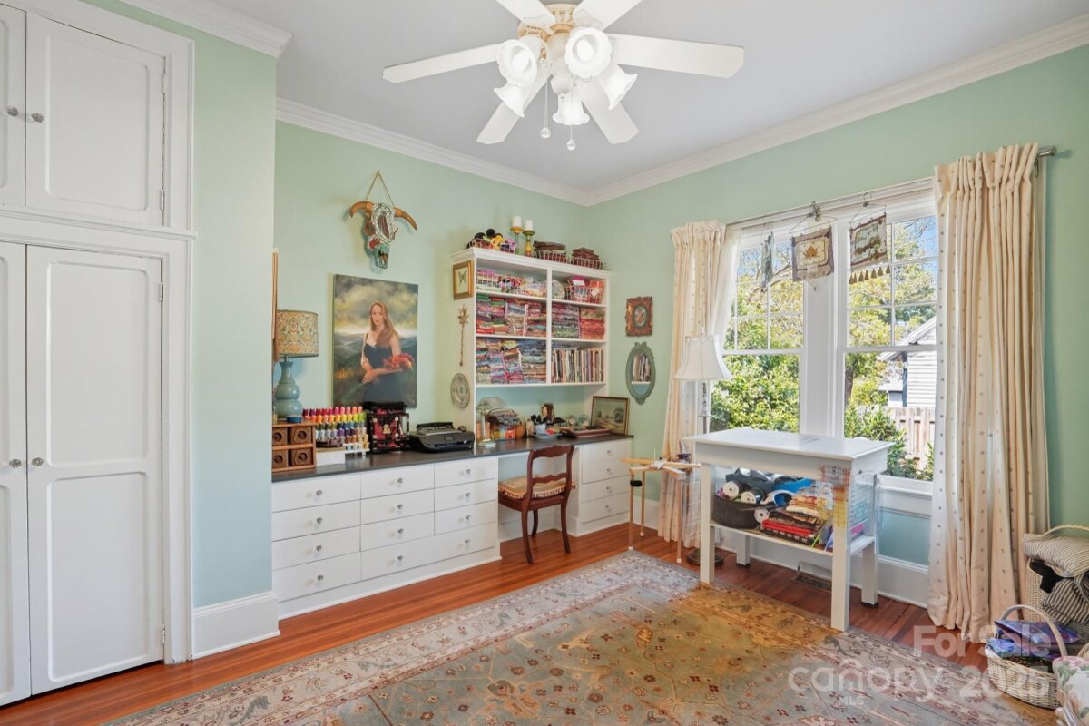 Welcome to the stunning “Wren Cottage" situated on South Union Street, Concord. This immaculately kept historic 4-bedroom home connects timeless charm with modern comfort. High ceilings and hardwood floors flow throughout the open, light-filled layout, creating a warm and inviting atmosphere. The updated kitchen and bathrooms blend style and function, while the large upstairs primary suite offers a private retreat with en suite bath. Enjoy the secluded, fenced backyard with custom-designed landscaping, spacious deck, and updated pergola—perfect for relaxing or entertaining. A huge detached two-car garage with carport provides ample storage and parking. A short walk to Downtown Concord’s new streetscape, restaurants and shopping. Located on the Greenway trail, this beautiful Craftsman bungalow is a block from the area’s new elementary school, and within walking distance of Les Myers Park, with tennis, softball, pickleball and multiple play areas for children. This home is a true artist's home and a very rare find with character, modernized updates and unmatched convenience!