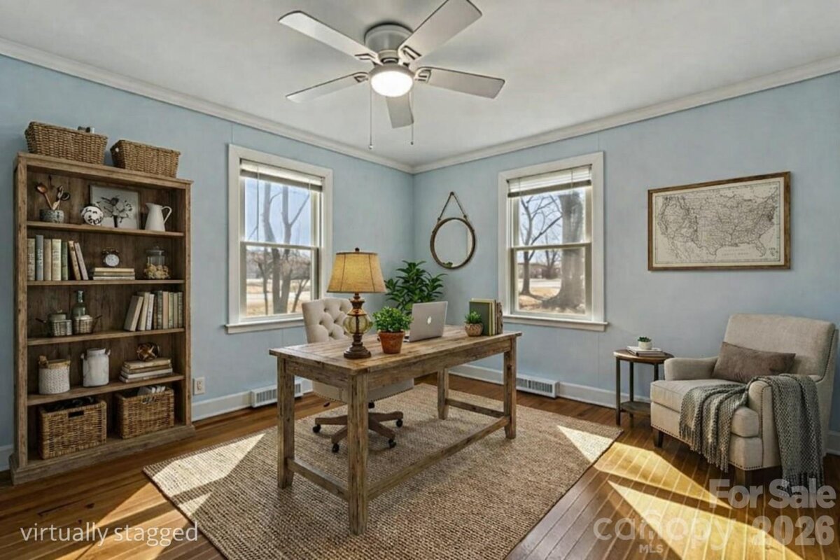 This one has heart! The covered rocking chair front porch offers a warm welcome and sets the tone before you even step inside. From there, the living room greets you with a large picture window and built-in shelving, and original hardwood floors run through much of the home. Crown molding, chair rail, and an arched doorway add just enough character to remind you this isn’t a cookie-cutter house. The kitchen offers plenty of cabinet space, a farmhouse sink, and the kind of footprint that makes sense for everyday living. The layout flows easily, and the backyard is level with mature trees — a great space to enjoy without feeling crowded. And then there’s the back porch. The oversized screened porch truly extends the living space and may quickly become your favorite spot in the house — perfect for quiet evenings, morning coffee, or hosting friends while overlooking the backyard. A concrete driveway leads to covered two-car parking, adding convenience to the charm. There's a lot here to love! It’s easy to see the potential here. A little vision and some thoughtful updates could go a long way, and homes with this much personality don’t come around often. With its character, practical layout, and inviting outdoor spaces already in place, this home is ready for its next chapter.
