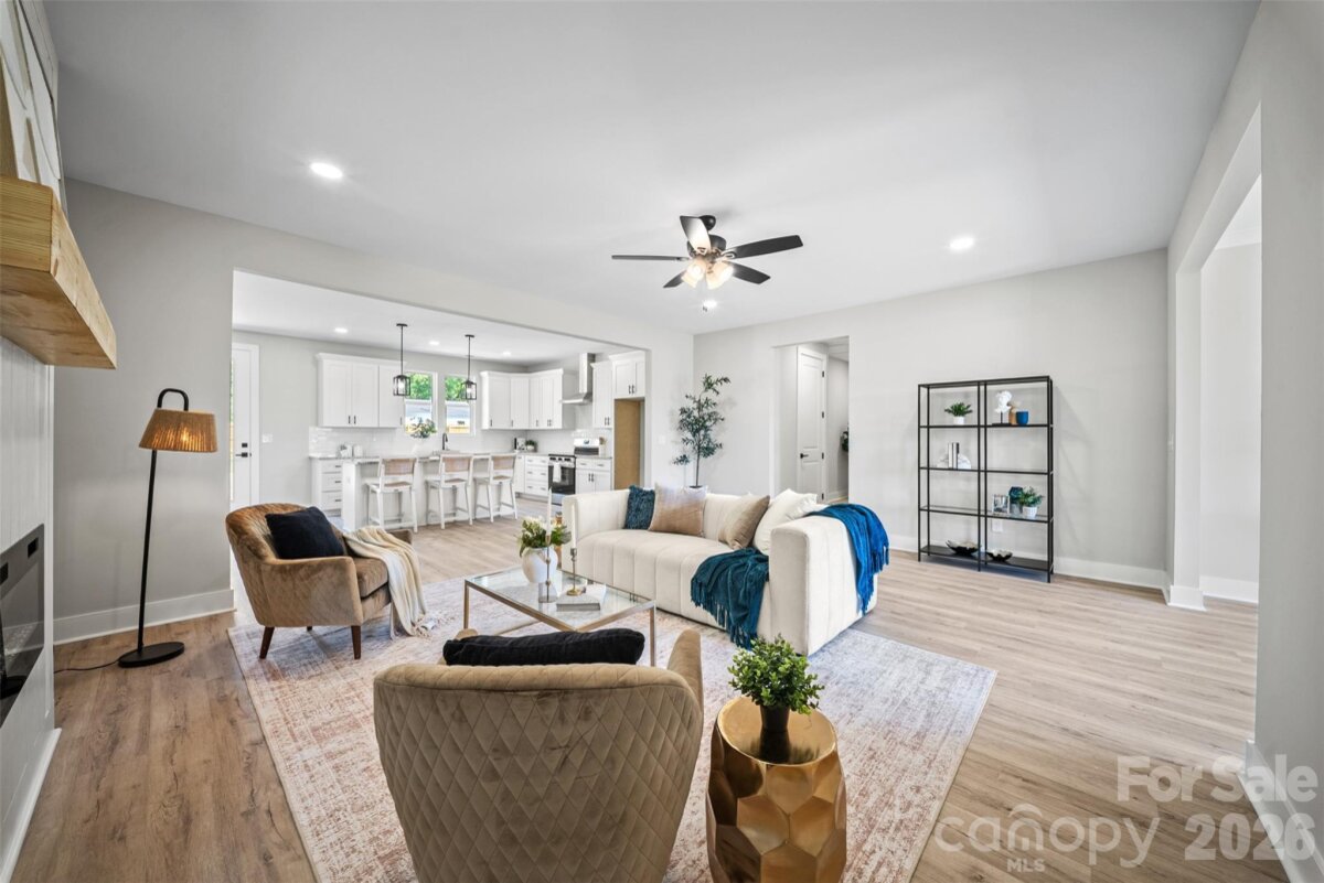 Hard to find ranch living meets modern new construction on over an acre in a prime Concord location—the perfect combination of elevated, yet comfortable finishes, single-level living, and space. This thoughtfully designed home offers an open-concept layout filled with tons of natural light and a natural flow ideal for both everyday living and entertaining. The kitchen is a true centerpiece, showcasing granite countertops, a stylish subway tile backsplash, sleek, white cabinetry, and a spacious island with plenty of room for seating. Located just off the kitchen, the separate dining area offers a seamless extension for everyday meals or hosting family and friends. You will love the durable luxury vinyl plank flooring throughout the home, offering both style and functionality. The electric fireplace with shiplap surround anchors the inviting living room for cozy nights in or gathering with guests. A dedicated office/flex space with french doors adds versatility to the open floor plan - ideal for working from home, a kid's space or a quiet retreat. The primary suite provides a relaxing escape with a well-appointed en-suite bath with oversized tiled shower, double vanity, complete with a large walk in closet. All bathrooms feature quartz countertops and modern fixtures that add a polished, upscale feel. Step outside and experience one of this property’s most incredible features—over an acre of land. Whether you’re dreaming of a future pool, outdoor kitchen, garden, or simply enjoying the peaceful surroundings, this homesite offers endless possibilities. And the location truly sets this home apart. Conveniently located near I-85, you’ll enjoy quick access to Concord, downtown Kannapolis, and the charm of Mt. Pleasant—making commuting, dining, and shopping effortless. New construction. Acreage. Ranch living. Prime location. Opportunities like this don’t come around often—don’t miss your chance to call it home.