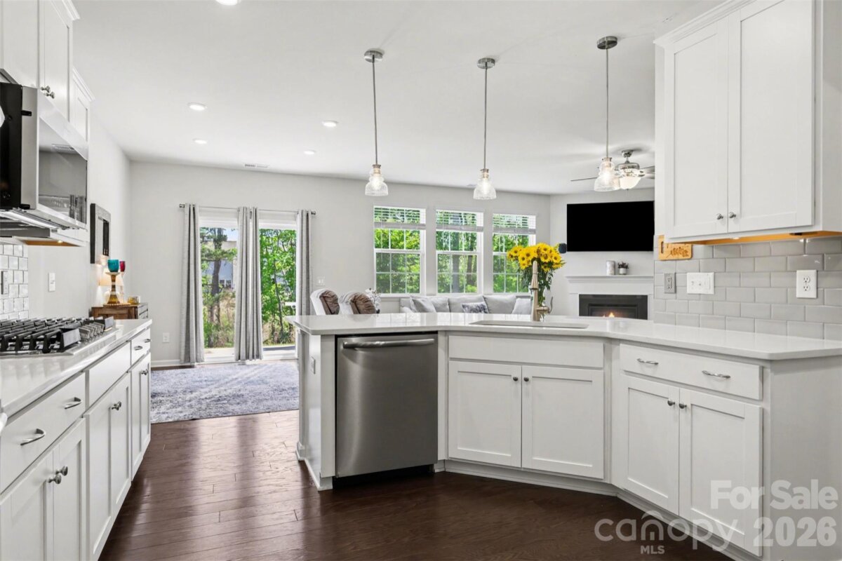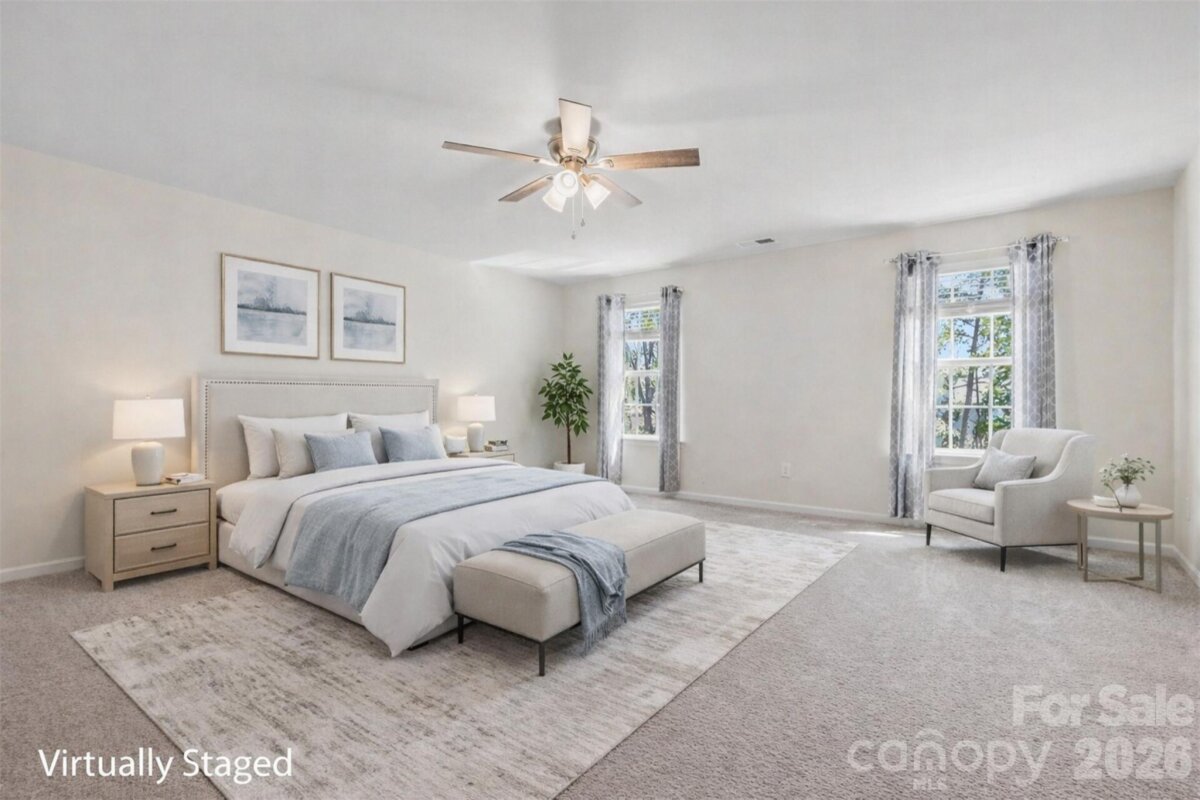 Situated in the desirable Walnut Creek community in the Indian Land area, just minutes from downtown Waxhaw and the new shopping center featuring Target and Costco, this expansive six-bedroom, five-and-a-half bath, three-story home offers space, privacy, and modern convenience. Backing to serene woods with a peaceful pond beyond, the home provides a tranquil setting. The gourmet kitchen features white cabinetry, double ovens (both with air fryers), a microwave air fryer combo, a breakfast nook, under-cabinet lighting, and elegant arched doorways. On the main level, you’ll find a spacious secondary suite with an en-suite bath, a French door office, a formal dining room, a gas log fireplace, and a convenient half bath for guests, all accented by engineered hardwoods. On the second level, the main primary suite boasts a double vanity, walk-in shower, and a walk-in closet. Three additional bedrooms and two full bathrooms complete the second floor. The third level offers another bedroom, a full bath, and a spacious loft. Enjoy modern comfort with an Ecobee smart thermostat system on each level, integrated with a front door camera. The community provides two pools, a clubhouse with a fitness center, and vibrant clubs and events. Additionally, residents enjoy access to Lancaster County-owned sports fields, tennis and pickleball courts, and the Carolina Thread Trail. Together, this home and community offer the ideal lifestyle!