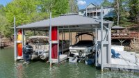 WELCOME to your lakeside retreat! Nestled on a peaceful waterfront cove, this charming property offers the perfect blend of relaxation and adventure. Enjoy the peacefulness and lake view from the screened-in porch or take in the scenery from the private gazebo and expansive deck right on the lakefront. Boating enthusiasts will appreciate the double covered metal boat dock complete with a jet ski ramp, ideal for water sports, leisurely cruises, kayaking or paddle boarding. Inside, the inviting living room features a cozy wood-burning fireplace open to the kitchen and dining area. Outdoors, endless opportunities await - with nearby hiking trails, state parks, and local breweries offering unique experiences. Whether you're seeing a serene escape or a vibrant lifestyle filled with outdoor activities, this property is a true gem waiting to be discovered.