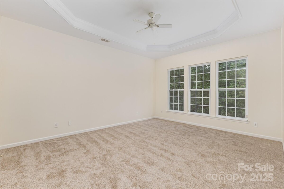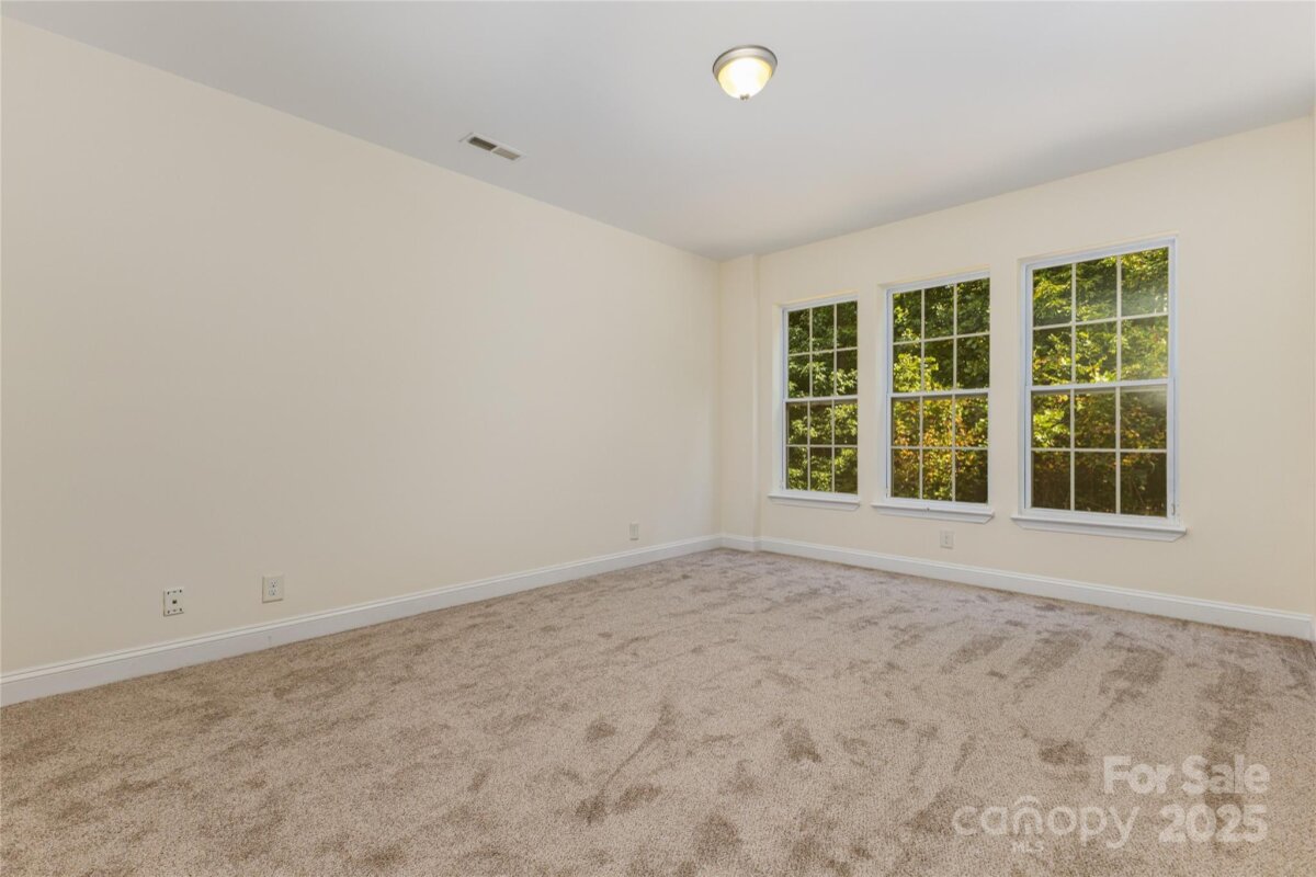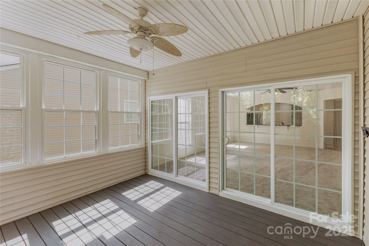 This beautiful Surrey Crest home sits on a charming tree-lined cul-de-sac in the highly sought after Grey Hawk neighborhood and is conveniently located near The Lodge amenity center and Water's Edge Park. Enjoy views of the beautiful rear woods from the primary bedroom, office/den, three-season room, and upper deck, as well as from the basement bedroom and living area, and covered lower patio. The beautiful kitchen has granite counters, a tile backsplash, stainless steel appliances, and fabulous pull-out shelves. The washer and dryer in the laundry room, which is conveniently located between the kitchen and the garage, both convey. The large basement has a great room with a bar/serving area, a flex room that would make a great study, office, or craft room, a large bedroom & bath, and a large unfinished utility room/storage area. This fabulous home has been freshly painted, has new carpeting, and is move-in ready! Now is the time to live your dream! Come and enjoy all the beautiful amenities & diverse activities this premier 55+ community has to offer! Sun City Carolina Lakes has a public golf course and is in close proximity to shopping, restaurants, medical facilities, recreation areas, entertainment, and more!