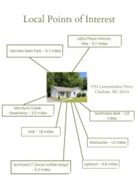 Welcome to this cozy and well-maintained ranch home that was completely renovated in 2020. Situated in a quiet community with tree-lined privacy in the back yard, this light-filled home offers comfortable one-story living. Granite countertops, stainless steel appliances, soft-close cabinets and a pantry in the kitchen, LVP flooring throughout, shiplap accent wall in living room. Lots of storage, including 2 linen closets, a hall closet and a laundry/utility room. Conveniently located within 5 minutes of Northlake Mall and Perimeter Woods shopping center, as well as with easy access to I-77, I-85 and I-485. Less than 15 minutes to Uptown. No HOA! HVAC, roof, and water heater were all replaced in the remodel. Ask about loan incentives with preferred lender. Come see this lovely home today!