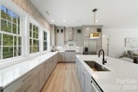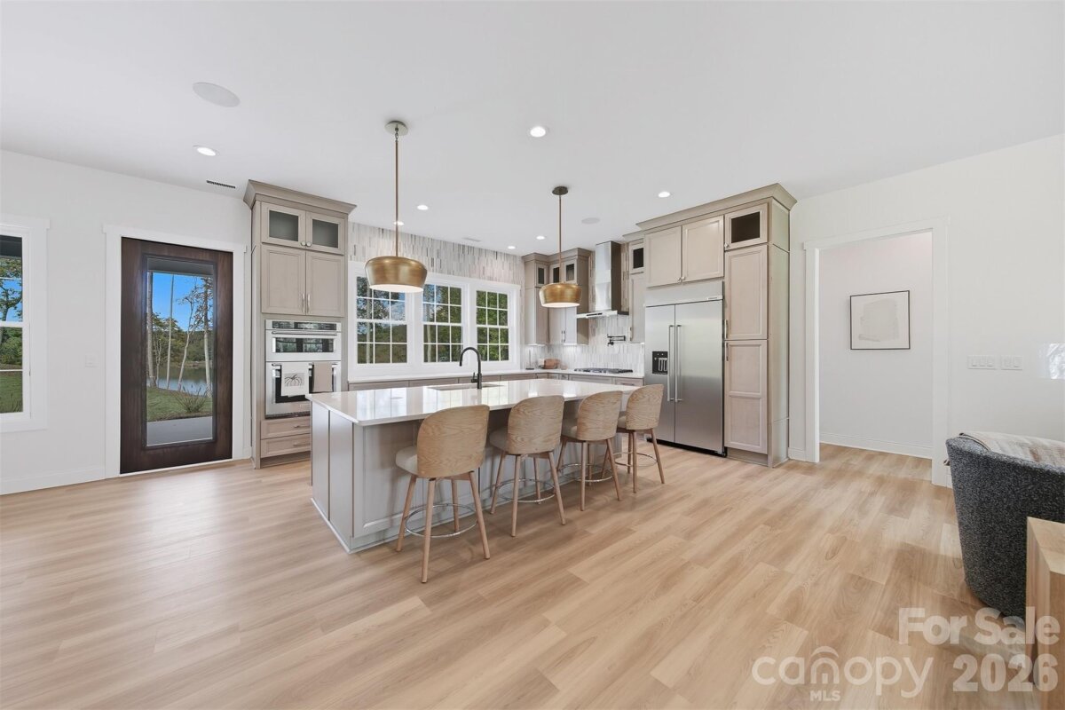 Luxury waterfront living on Lake Hickory in the gated and private Waterfront Harbor community. This stunning new construction home is situated on a 0.86-acre lot and thoughtfully positioned to capture expansive lake views from nearly every room, offering exceptional privacy and a peaceful, low-traffic setting. The 1.5-story home with a partially finished basement features an open-concept main level designed for both entertaining and everyday living, allowing for comfortable one-level living with the primary suite and main living areas on the main floor. The designer kitchen includes custom cabinetry, a grand island, built-in refrigerator, double oven, gas cooktop, and high-end finishes throughout, seamlessly flowing into spacious living and dining areas overlooking the water. The main-level primary suite offers a private retreat with dual walk-in closets and a spa-inspired bath. Two additional main-level bedrooms share a beautifully finished full bath, complemented by a half bath, laundry room, and two-car garage. Upstairs includes a loft, fourth bedroom, movie room, dedicated office, and full bath, along with an unfinished attic for storage. Outdoor living is a true highlight, featuring a covered patio with an outdoor kitchen and firepit, ideal for entertaining or relaxing lakeside. A gentle paved path leads to the private double-decker dock with boat lift, allowing for immediate enjoyment of Lake Hickory and unforgettable sunset views — no waiting period required. The partially finished basement adds a large family room, full bath, ample storage, and an additional garage bay ideal for lake gear or a golf cart. Located outside the city limits, the home benefits from lower property taxes, while still being just two miles from grocery stores and medical facilities for everyday convenience. With a low annual HOA of $500, and located approximately one hour from Charlotte and within approximately one to one-and-a-half hours of Asheville, the Blue Ridge Mountains, Boone, and Banner Elk, this rare new-construction waterfront home offers the perfect balance of luxury, privacy, and accessibility. A refined lake lifestyle, ready to be experienced.