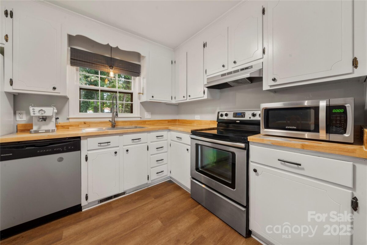 Welcome to 5819 Ruth Drive—less than a 5 mile drive away from the highly attractive Plaza Midwood! Overflowing with character, this home seamlessly blends timeless charm with modern sophistication. The outside eludes the classic beauty of a full brick exterior while the columns serves as a crowning piece that triples in elegance. Additionally, it’s hard to miss the beautifully manicured lawn and lush greeneries that highlights the home’s architectural design, creating a warm and welcoming first impression even before you step foot in. Once inside, you immediately are welcomed by a desirable split floor plan that’s thoughtfully separated making hosting and entertaining a true delight. With polished hardwood floors that will gleam beneath your feet in the formal living, dining and bedroom spaces. Step into the kitchen and it immediately radiates mid-century modern with brand new butcher block counter tops perfect for cooking your next meal or brewing your morning coffee. While there’s endless charm that shines through from front to back, this home is also met with practicality that offers you peace of mind. Whether you're cooling off in the summer or staying cozy in the winter, the brand-newly installed HVAC, security system and water heater provides reliable comfort and efficiency for any homeowner. Nestled right inside of Charlotte, this home is the ideal balance of historic character, modern comfort, and everyday convenience. In a neighborhood with no HOA, you can enjoy the freedom and flexibility of homeownership all while being just minutes away from your favorite local businesses.