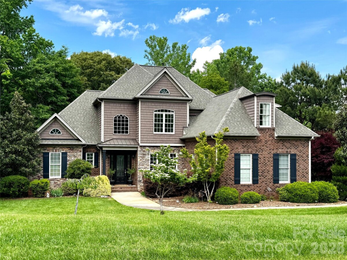 Welcome to this gorgeous custom built brick & stone home with large, ready to complete walk-out basement, perfect for additional living space, nestled in sought-after Masons Crossing, surrounded by the natural beauty of Lake Wylie!! This property on 1.05 acres offers exceptional privacy with a tree-lined backyard, seasonal water views, and stunning landscaping. Step inside to find hardwoods and tile throughout the main level, complemented by rounded wall corners, custom crown molding and abundant natural light. This home has been freshly painted in a neutral color enhancing the open floor plan. The impressive two-story vaulted entry opens into a spacious family room with a remote control gas fireplace accented by travertine tile, along with a vaulted living room. The open floor plan is perfect for both everyday living and entertaining. The gourmet kitchen features an island, custom cabinets, granite countertops and a wine bar. The primary suite is located on the main level and features a double tray ceiling and a spa-like bathroom with a jacuzzi tub, walk-in shower, and generous storage. Upstairs offers two additional bedrooms and a third bedroom or bonus/entertainment room with a wet bar and surround sound—ideal for hosting or relaxing. Outdoor living is just as impressive with an oversized, weatherproof trex deck offering three access points, multiple sitting areas, and peaceful views of trees and seasonal lake scenery. Enjoy whole-home audio with six sets of built-in speakers and the convenience of a central vacuum system. Additional highlights include: a 3-car side-load garage with extended driveway parking, a 1,985 sq ft basement, framed and plumbed with extra-high ceilings, durable 2x6 construction, abundant storage, six windows, and two separate patio entrances, a fire pit area and wiring ready for a hot tub. Recent Updates & Features: New well pump (2024), New 119.5-gallon water pressure tank (2023) Roof replaced (2021) Whole-house water softener system Ecobee programmable thermostat, In-ground irrigation system and NO HOA! This home offers a rare combination of privacy, space, and custom features in a prime Lake Wylie location!! Low taxes and zoned for the new Lake Wylie High school!