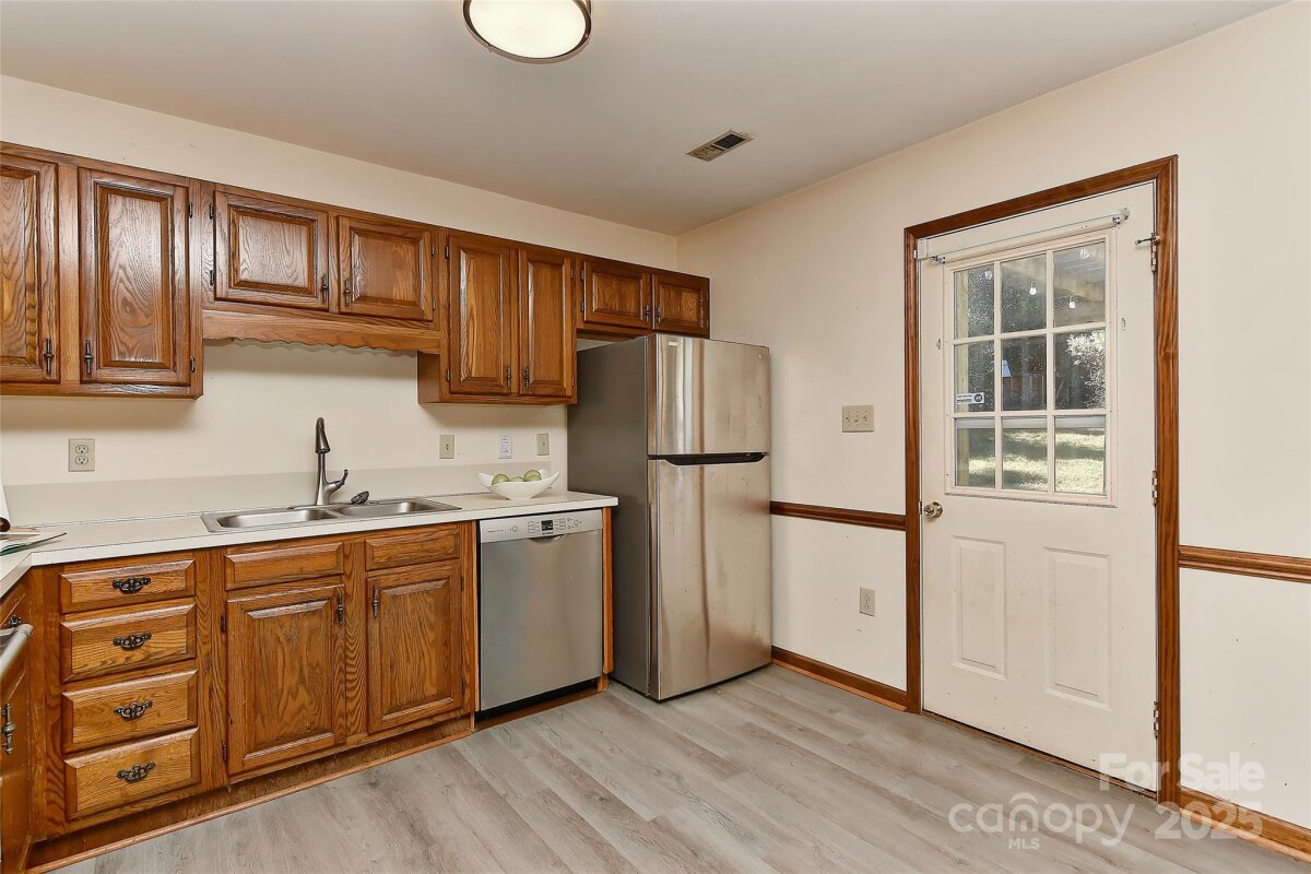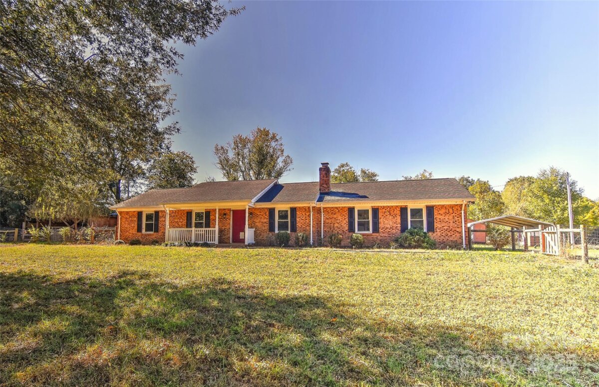 Bring your horses to this 5+ Acre property with 2 acre fenced pasture with 20x24 covered run in area and full brick Ranch home recently updated with vinyl plank flooring, updated baths and large eat-in country kitchen with stainless steel appliances and large living room. Primary bedroom with full bath. Attached septic permit shows 2 bedroom system approved. Floorplan shows 3 bedrooms. Attached, oversize 2 car, sideload garage plus a detached 2 car carport. Multiple storage sheds and 2-3 pens for hens on property. The 5 Acres backs to wooded area and offers lots of possibilities. Other options include additional pastures, riding trails, ATV's, organic gardens or open fields. Close to Monroe, Waxhaw, and Wesley Chapel.