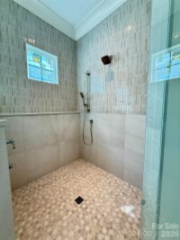 Beautifully built custom home tucked away in the established Mammoth Oaks community overlooking community lake. This executive property sits on a half acre with a swimming pool/spa and is perfect for entertaining. The open floor plan has 10'ceilings on the main and 9'ceilings upstairs. The custom chef's kitchen includes a large island, custom cabinetry, SS appliances including a 48" Wolf gas range and a walk-in hidden pantry/scullery. The dining area is perfect for every day use as well as more formal dining. The primary bedroom is on the 1st floor with view of pool and primary bath with heated tile flooring. Upstairs you will find 4 additional bedrooms, a flex room, large landing & 2 bonus room spaces. The home is Energy Star Certified, has maintenance free Low-e insulated Pella aluminum clad windows, tankless water heater w/recirculation loop, multi-zoned HVAC w/ gas furnace, 7.5"white oak engineered hardwood floors throughout the entire home. Home also has 3 car garage, custom drop zone with lockers and laundry room. Designer tile in laundry and all bathrooms. Mammoth Oaks is located in south Charlotte convenient to Uptown, South Park and Strawberry Hill shopping and restaurants. Also conveniently located to Providence Day, Country Day schools.