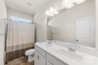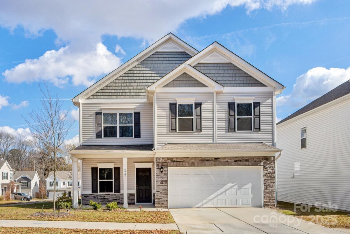 This Immaculate 2024 built home offers 2600 +/- sq foot of thought full design and custom finishes. With 5 bedrooms and 3 full bathroom sit features touches throughout. Near uptown Charlotte Wilora Pond presents The Harrinton plan featuring open floor plan efficiency designed just for you. The foyer leads you effortlessly to the spacious family room, breakfast room, kitchen, and also includes a bedroom and a full bathroom. The kitchen boast granite counter tops Stylish pendant lights, electrical stainless steel appliances, with white color 36" cabinets with crown molding and back splash tiles. The second floor spacious owner's suite is tucked away with a private owner bath including dual vanities and a shower and a garden tub. With three mor bedrooms and a full Toilet, and a laundry room adds to the purpose full ness of the upper level. Relax on the covered porch on the front and patio on the back side of the house