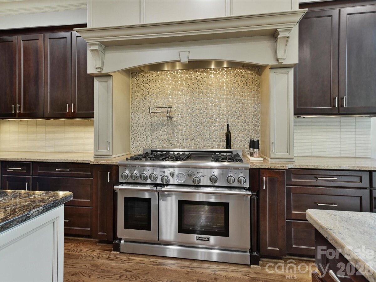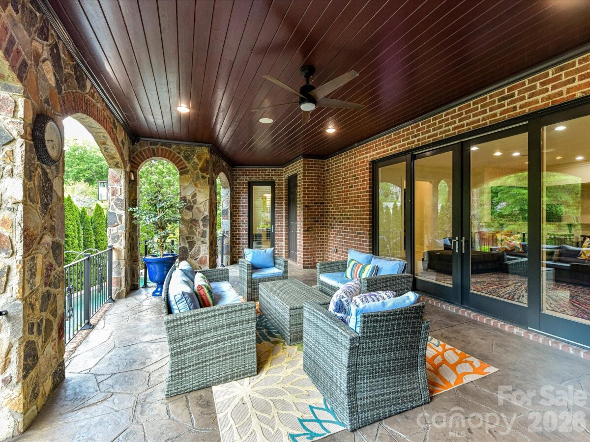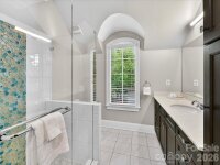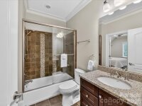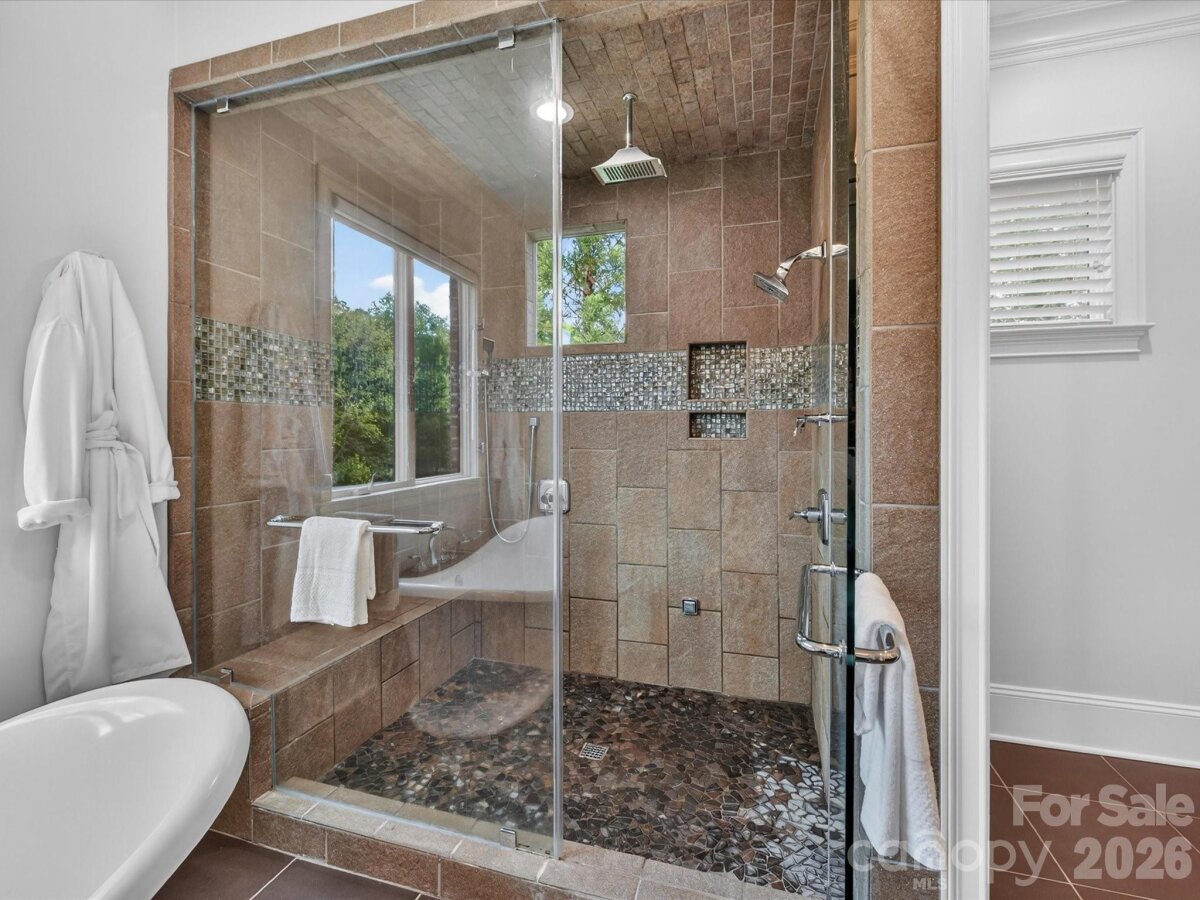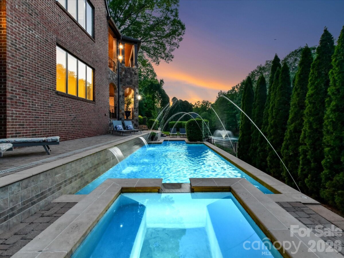 Reminiscent of a romantic Italian villa, this custom brick and stone residence delivers 7000+ square feet of elegant resort-like living…in South Charlotte’s exclusive enclave of Chambery. Enjoy expansive pond views in a private park-like setting. Clark and Hall’s custom Tuscan-style iron and glass front door invites you into 3 levels of meticulously designed living spaces that include 6 bedroom en-suites, a powder room, multiple main level offices, bonus rooms, and flex rooms galore. Oversized casement windows. Arched doorways. Dramatic ceilings throughout: vaulted, tray, cathedral, coffered and turret ranging from 9.5 to 16 feet in height. Hardwood floors throughout much of the main and upper levels. Formal living room with wood wall trim. Great room with fireplace. Gourmet chef’s kitchen features two functional islands, 48†gas range, pot-filler, and built-in refrigerator. Main level oversized primary bedroom suite boasts walk-in closet with new Stark carpet, dual vanities, spa-like bathroom with linen closet, soaking tub, glass shower, heated bathroom floors and private water closet. Two large bonus rooms flank the upstairs floor plan offering 3 generously-sized bedroom en-suites and loft space. One Upstairs Bonus Room functions as a private, undiscoverable safe room and cleverly closes with a custom bookshelf door. The Basement retreat offers 2 bedroom en-suites (one currently used as a home gym), a home theater/media room with tiered seating and projection screen, a 2nd kitchen, and a 500+ bottle humidity-controlled wine cellar, and an abundance of storage. Elevated rear loggia and majestic veranda overlook a heated pool with integrated spa: the perfect backdrop for casual gatherings or formal entertaining. Outdoor grill area. 2-car garage leads to interior drop zone with cabinetry. Dedicated 1-car garage is private and offers no access to interior (currently home to a golf simulator that does not convey). Conveniently located to SouthPark, Phillips Place, championship golf courses, greenways, fine dining and Charlotte Douglas International Airport.