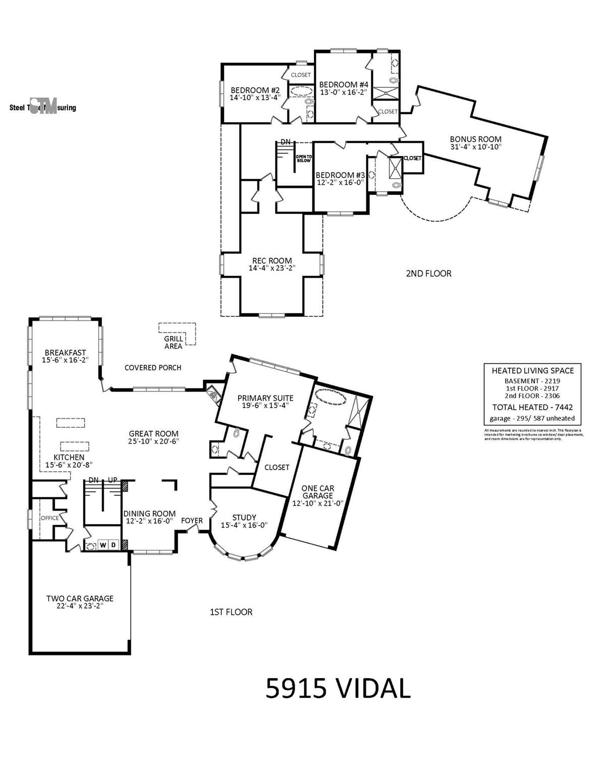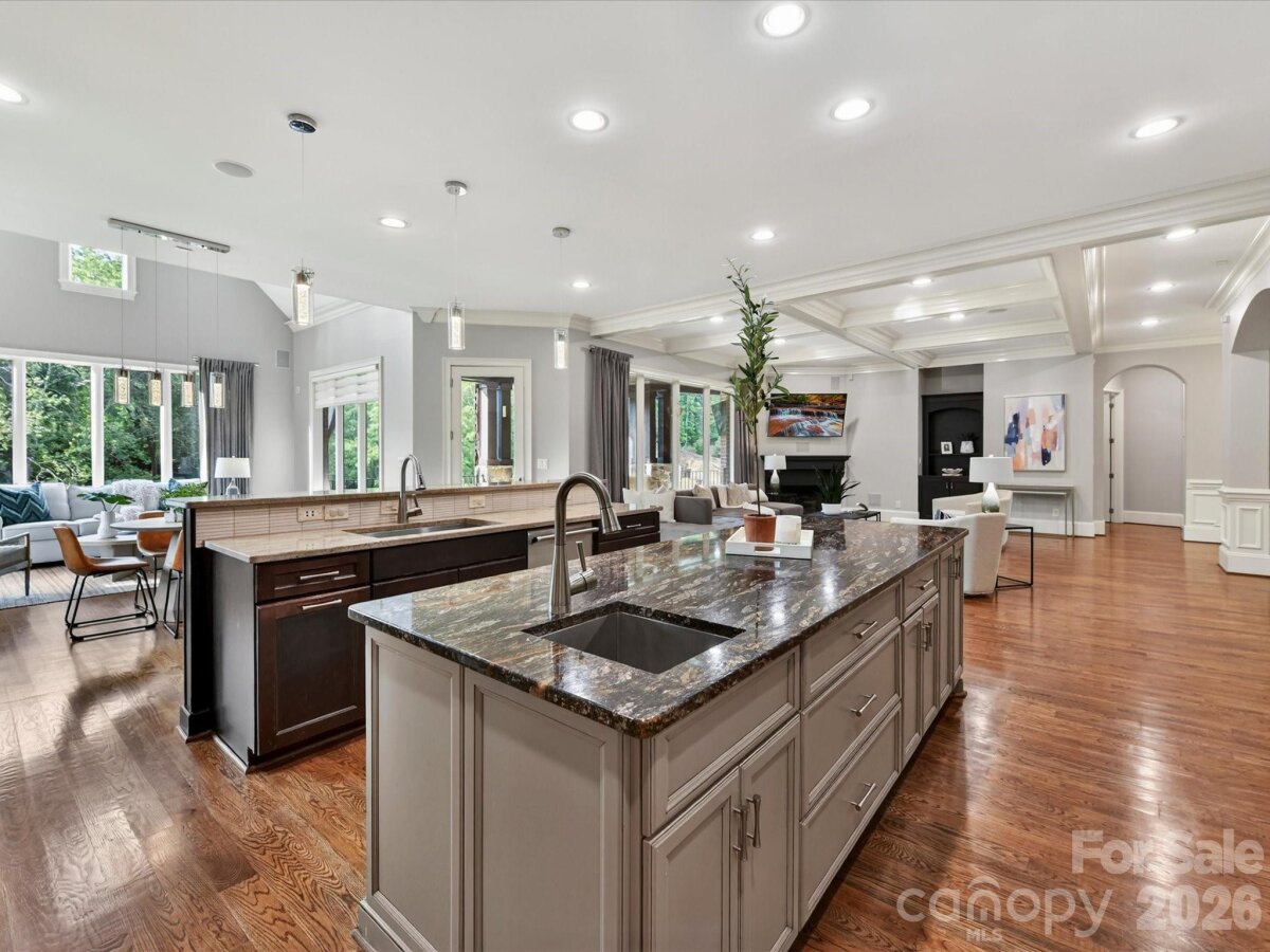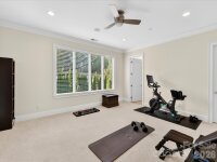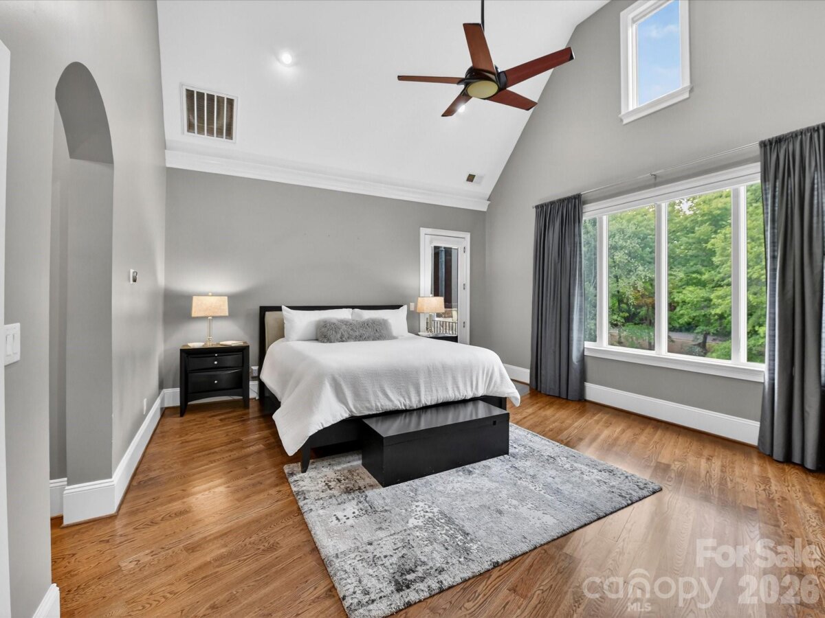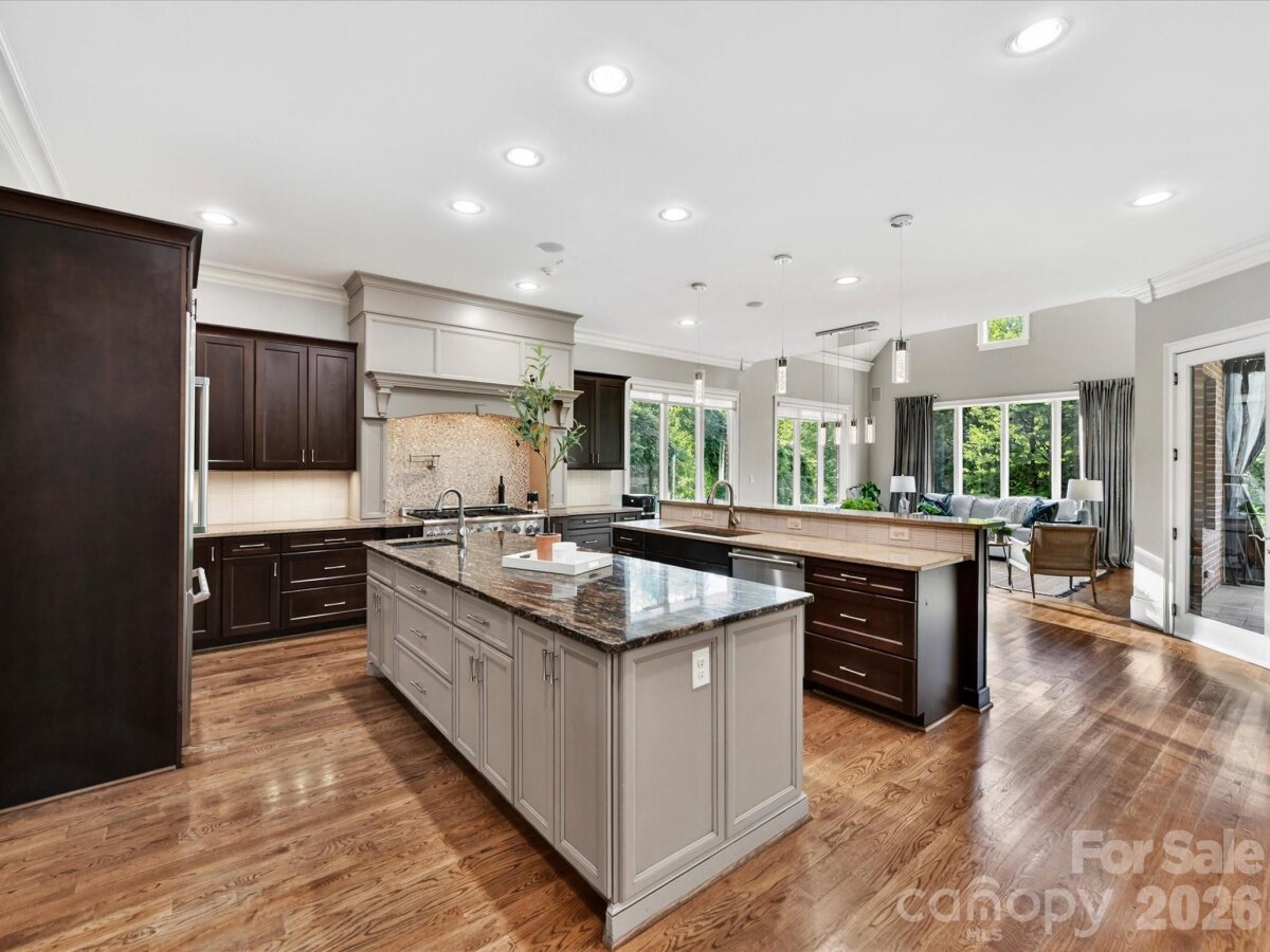 Reminiscent of a romantic Italian villa, this custom brick and stone residence delivers 7000+ square feet of elegant resort-like living…in South Charlotte’s exclusive enclave of Chambery. Enjoy expansive pond views in a private park-like setting. Clark and Hall’s custom Tuscan-style iron and glass front door invites you into 3 levels of meticulously designed living spaces that include 6 bedroom en-suites, a powder room, multiple main level offices, bonus rooms, and flex rooms galore. Oversized casement windows. Arched doorways. Dramatic ceilings throughout: vaulted, tray, cathedral, coffered and turret ranging from 9.5 to 16 feet in height. Hardwood floors throughout much of the main and upper levels. Formal living room with wood wall trim. Great room with fireplace. Gourmet chef’s kitchen features two functional islands, 48†gas range, pot-filler, and built-in refrigerator. Main level oversized primary bedroom suite boasts walk-in closet with new Stark carpet, dual vanities, spa-like bathroom with linen closet, soaking tub, glass shower, heated bathroom floors and private water closet. Two large bonus rooms flank the upstairs floor plan offering 3 generously-sized bedroom en-suites and loft space. One Upstairs Bonus Room functions as a private, undiscoverable safe room and cleverly closes with a custom bookshelf door. The Basement retreat offers 2 bedroom en-suites (one currently used as a home gym), a home theater/media room with tiered seating and projection screen, a 2nd kitchen, and a 500+ bottle humidity-controlled wine cellar, and an abundance of storage. Elevated rear loggia and majestic veranda overlook a heated pool with integrated spa: the perfect backdrop for casual gatherings or formal entertaining. Outdoor grill area. 2-car garage leads to interior drop zone with cabinetry. Dedicated 1-car garage is private and offers no access to interior (currently home to a golf simulator that does not convey). Conveniently located to SouthPark, Phillips Place, championship golf courses, greenways, fine dining and Charlotte Douglas International Airport.