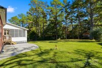 Beautiful, full brick home in Wesley Chapel. Custom built in 1999. Updated kitchen and baths, three generous sized secondary bedrooms. The primary bedroom is spacious and light, updated primary bath, separate walk in closets, jetted garden tub, oversize shower, tile floor. Great kitchen with granite counter tops, eat at bar and two separate serving areas for entertaining. Bosch gas range, Bosch dishwasher and microwave. Tall kitchen cabinets, tons of counter workspace. Plantation shutters on all windows (except living room), hardwood floors in the foyer, dining room, kitchen and den. Separate laundry room (5'8" x 8'7"), cabinets and a laundry sink. The large great room has fireplace with gas logs. Step out of the great room onto the spacious screen porch (19'7" x 14'7"), skylights, ceiling fan. Finished garage, shelving, work shelf. Access huge unfinished, walk-up attic, (57'2" x 49"x 4) by permanent stairs in the garage. Lovely, mature, fenced back yard. 10x12 separate full brick storage building. This is a wonderful home. You can enjoy the serene, private all brick neighborhood.