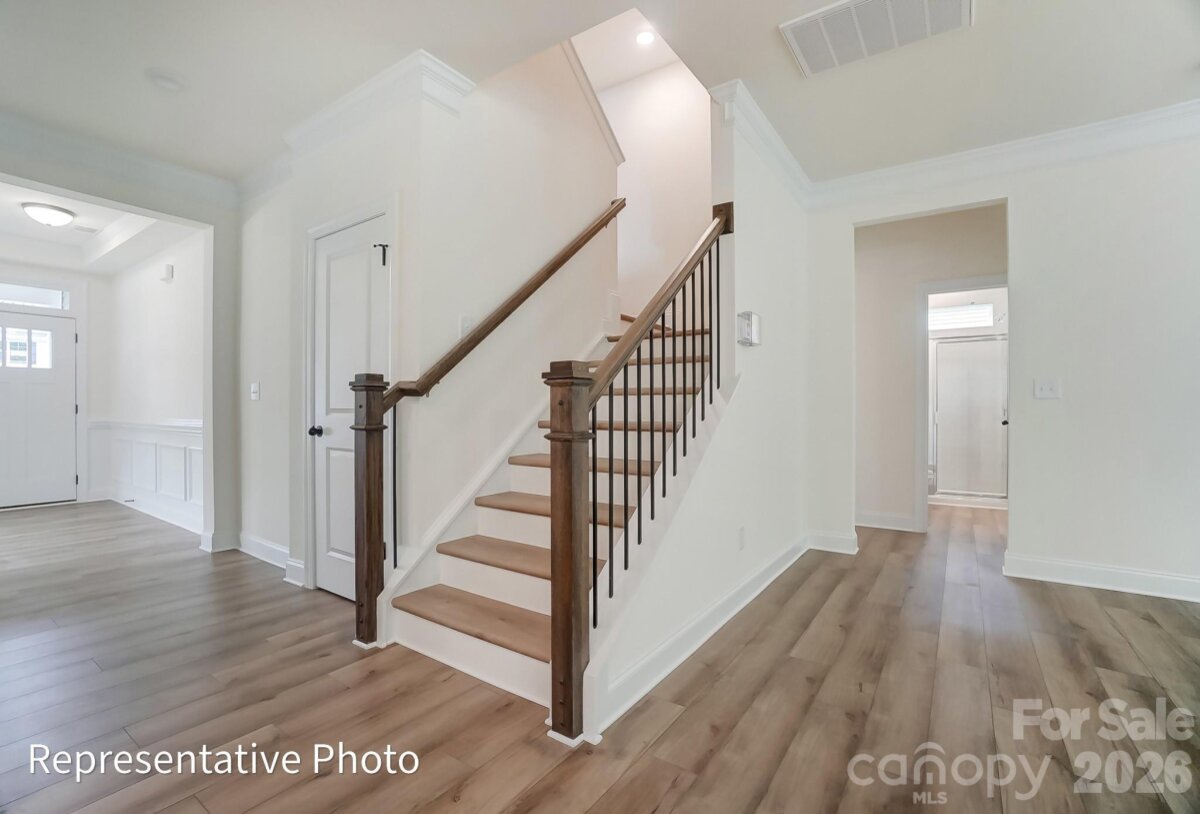 New construction in Huntersville near Birkdale Village and a short drive to Uptown Charlotte! This 3-story Davidson plan has 5 bedrooms, 4 baths, a rear covered porch, and more than 3,400 square feet of living space. The main floor includes a guest bedroom & full bath with a 5-ft shower, a dining room with tray ceiling, and a family room with a direct-vent, gas fireplace. The kitchen and butler pantry have white cabinets, quartz counters, and a tile backsplash. The kitchen also features a stainless range hood and stainless appliances, including a gas cooktop and wall oven & microwave. The second floor includes a loft, the primary suite with a luxury bath & sitting room, two secondary bedrooms connected with a Jack-n-Jill bath, and the laundry room. The third floor has a spacious bedroom with a full bath. Other wonderful extras are upgraded wood trim, a beadboard drop zone in the mud room, and quartz counters in all baths. Visit today!