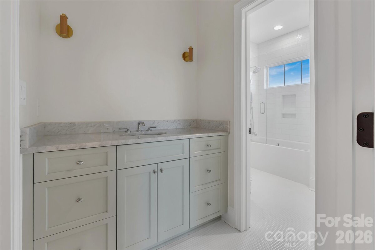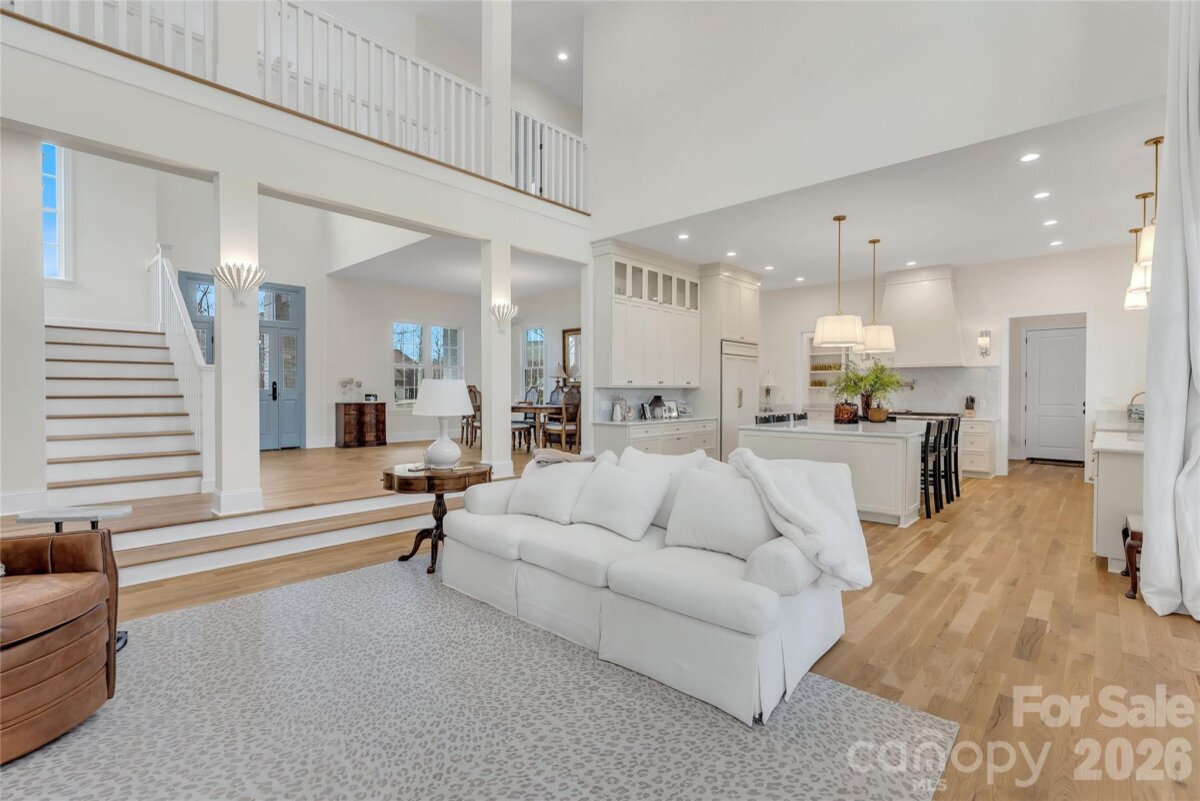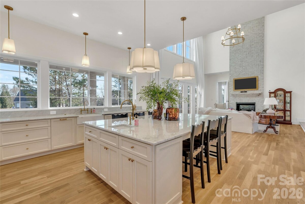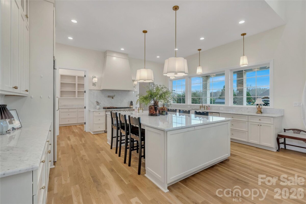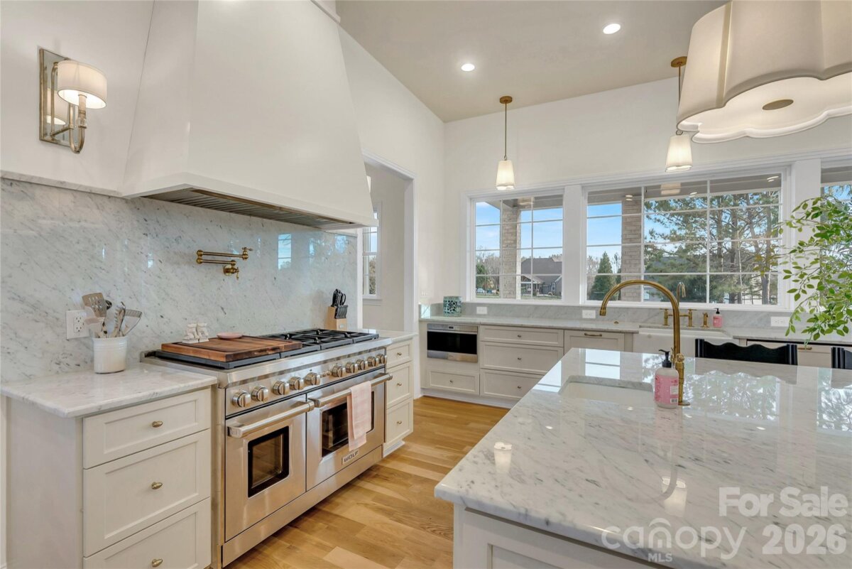 Prepare to be captivated by this custom-built sanctuary where contemporary elegance meets timeless craftsmanship. Located in Bickett Ridge, this residence is far more than a house—it is a curated lifestyle statement designed for the most discerning homeowner. From the moment you cross the threshold, your breath will be taken away by the soaring 24-foot ceiling with 20+ foot windows & floor to ceiling brick fireplace that anchor the living space, bathing the interior in an abundance of natural light. Underfoot, the seamless wide-plank white oak hardwood floors exude a warm, organic luxury that flows effortlessly through every room of the home. The heart of this home is a culinary masterpiece that would inspire any professional chef. Anchored by a premium marble waterfall island, the kitchen is outfitted with an elite, professional-grade appliance suite: • Wolf gas range and built-in microwave • Sub-Zero integrated refrigerator • Cove premium dishwasher The exquisite marble surfaces extend beyond the countertops to the backsplashes, perfectly complemented by designer Visual Comfort lighting that adds a layer of artisanal brilliance to the space. The main-level primary suite is a true sanctuary of relaxation. The ensuite bathroom is a spa-like escape, enveloped in premium marble from the floors to the custom shower surrounds. For the ultimate in modern convenience, the laundry facilities are elegantly integrated directly into the primary walk-in closet, simplifying your daily routine without sacrificing style. The architectural excellence continues upstairs, where you will find: • A dedicated executive home office, perfect for the modern professional. • Three expansive secondary bedrooms, each featuring oversized walk-in closets that offer incredible storage. • Two beautifully appointed full bathrooms—including a private ensuite and a thoughtfully designed Jack-and-Jill bath featuring charming penny tile and a classic soaking tub. The attention to detail is staggering. From the intricate V-groove paneling adorning the dining room and stairwell to the warm, stained wood ceilings on both the front and back porches, no surface has been left untouched. Even the atmosphere is elevated by a sleek gas fireplace, creating a cozy focal point for the grand living area. We are pleased to offer exclusive buyer incentives when using our preferred lender, making the path to owning this dream home even more seamless. Opportunities of this caliber, featuring such high-end finishes and architectural scale, are a rare find in Unionville. Do not wait—get your appointments scheduled immediately, as a masterpiece of this quality will not last.
