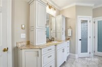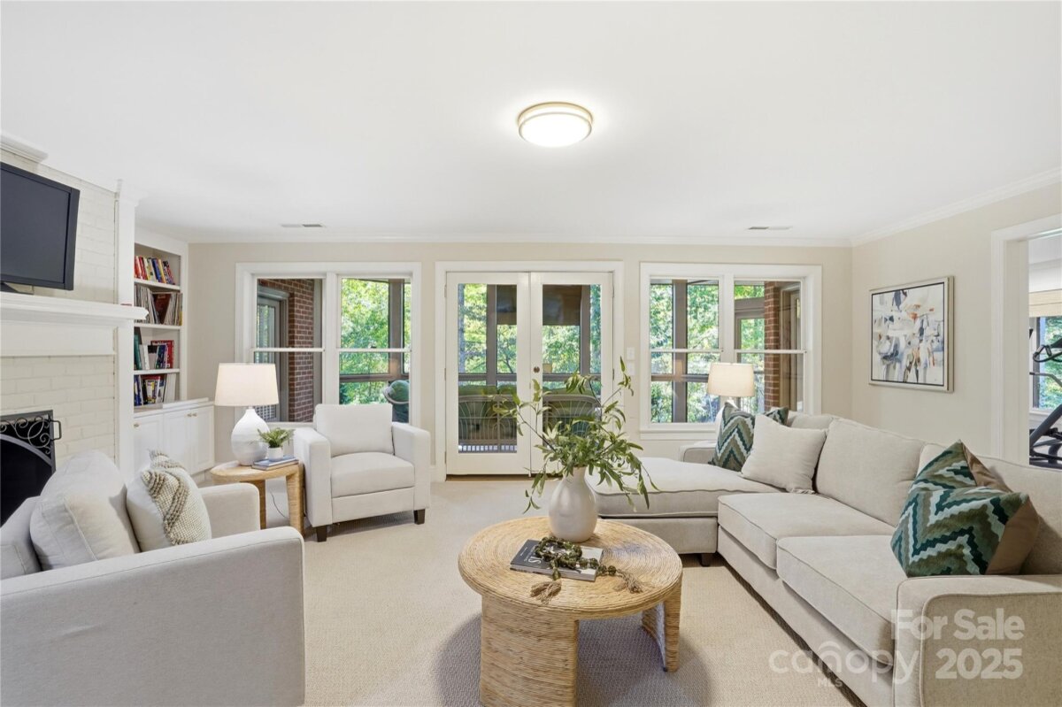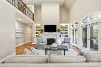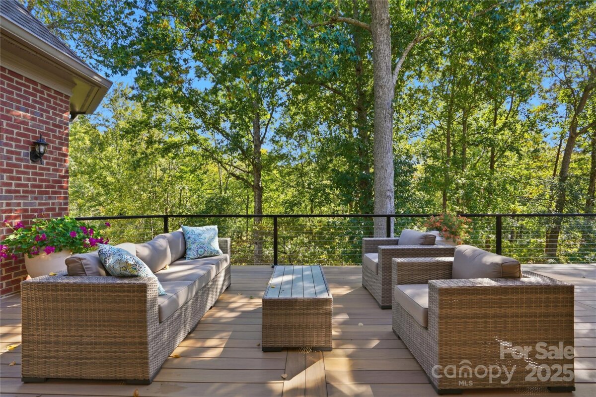 Welcome to this stunning home in the highly sought-after Carrington community! This exceptional two-story BASEMENT home truly has it all—offering 5 bedrooms, a bonus room with a back staircase, and 4 full plus 1 half baths. The impressive chef’s kitchen features a Sub-Zero refrigerator (new in 2022), double ovens, warming drawer, a large center island with seating, and a walk-in pantry. A dramatic vaulted ceiling and French door leading to the deck add volume and light to the breakfast area. Additional French doors from the adjoining family room fill the space with bright light and beautiful panoramic views of the expansive backyard (Lot is .83 acres). The main level also includes elegant formal dining and sitting room (currently used as an office). The primary suite is a true retreat. Sitting area, French doors to the deck, spacious walk-in closet, dual vanities, garden tub, separate shower, private water closet, and heated floors complete the luxurious retreat. The AMAZING WALK OUT BASEMENT features custom wine storage, wet bar, cozy den with fireplace, and a generous bedroom en suite with a walk-in closet and attached bath—plus an additional room that could serve as another bedroom or flex space. Enjoy the outdoors from the main-level expansive maintenance-free composite deck (new in 2022), offering private views, or unwind on the lower-level screened porch all overlooking the large backyard. From the screened porch, enjoy the big game on the mounted TV along with scenic views of the backyard. This home has been meticulously maintained, with a new roof (2022), two HVAC systems (2023 & 2024), and brand new carpet (2025). Carrington is a vibrant neighborhood with a pool, clubhouse, tennis, pickleball, and basketball courts, all supported by a low HOA. Residents love the year-round swimming made possible by the covered pool and the many community holiday events held throughout the year.