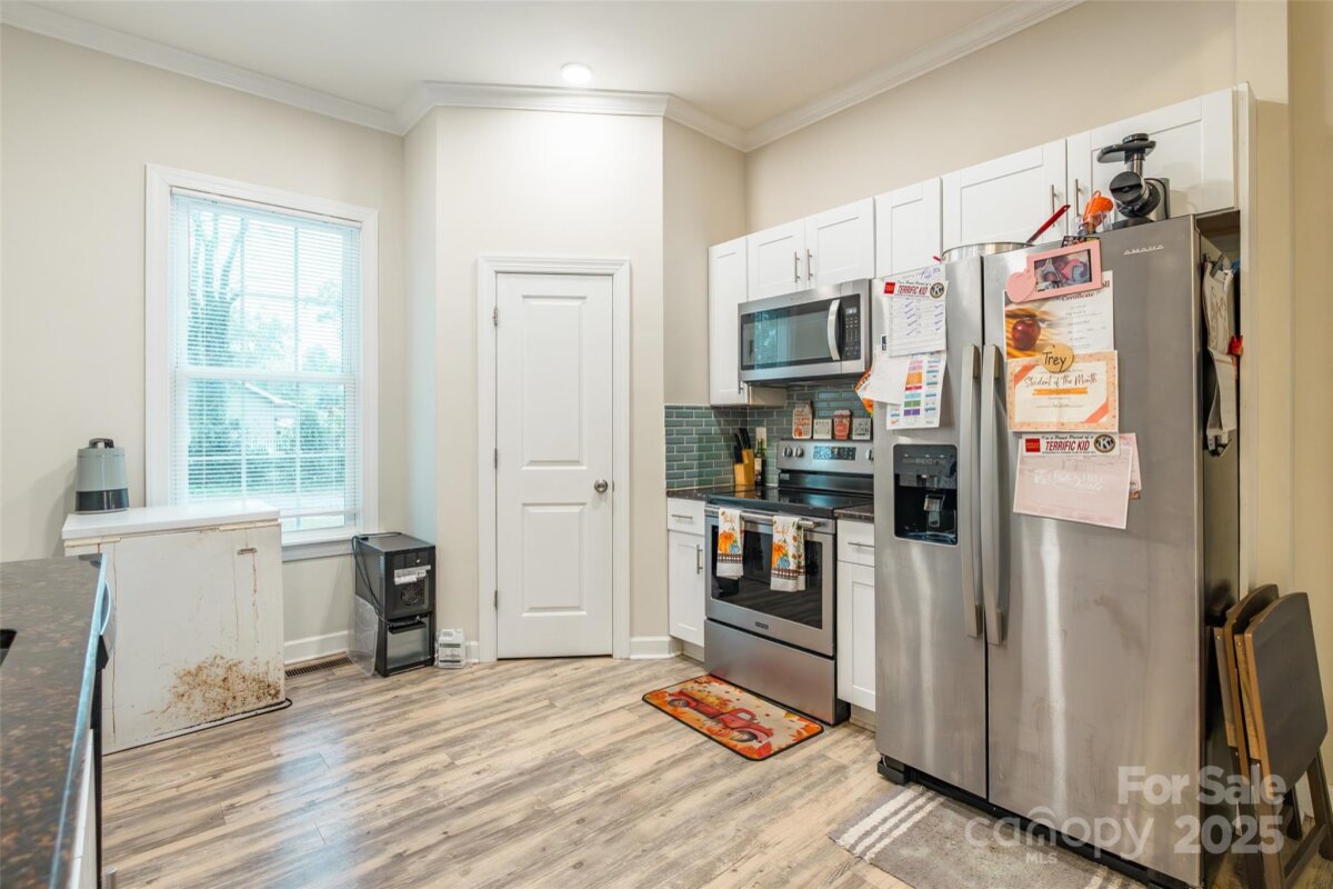 Discover this charming 3-bedroom, 2-bath home located in the heart of up-and-coming downtown Rock Hill, just minutes from shopping, dining, and entertainment. Enjoy nearby recreation centers and trails, perfect for an active lifestyle. Step inside to find 12-foot high ceilings, a bright open layout, and a small basement with a concrete slab floor—ideal for storage or a workshop. The kitchen features granite countertops and stainless steel appliances, with a washer and dryer included for added convenience. Relax or entertain outdoors on the large terrace area, situated on a .25-acre corner lot offering plenty of space and privacy. Whether you’re looking for a first home, rental investment, or renovation project, this property has endless potential in one of Rock Hill’s fastest-growing areas!