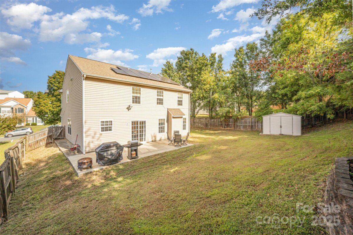 Welcome to your Concord retreat!From the moment you arrive, the inviting cozy front porch sets the tone — the perfect spot to enjoy your morning coffee, wave to neighbors, or simply relax at the end of the day. Inside, you’ll find hardwood floors flowing upstairs and downstairs, creating both warmth and durability throughout the home. The layout provides plenty flexibility, while updated appliances ensure a move-in ready experience. The kitchen features granite countertops, tile backsplash, and stainless appliances including the refrigerator, which stays with the home. A new dryer is also included, saving the next owner both time and expense. Peace of mind comes easy here thanks to the seller’s investment in the big-ticket items: the HVAC system, water heater, and roof have all been recently replaced - giving your years of worry free living. Even better, the home is equipped with solar panels, offering the new owner huge long-term savings on electric bills — an eco-friendly upgrade that adds real value. Upstairs, the large primary suite serves as a true retreat. It features a spacious bathroom with room to unwind and a huge walk-in closet offering abundant storage. Secondary bedrooms and baths provide plenty of flexibility for family, guests, or even a home office. Outside, the private backyard oasis sets this home apart. With no neighbors behind you — just your own land stretching all the way to the next street — it feels like you’re tucked away in the mountains while still enjoying the convenience of Concord living. The yard is perfect for entertaining, gardening, play, or simply soaking in the peace and quiet. A backyard shed provides additional storage for tools, equipment, or hobbies, keeping the garage and home clutter-free. The two-car garage provides even more storage and parking, rounding out the practical features of the property. Whether you’re looking for a place to host gatherings, relax in privacy, enjoy the benefits of solar energy, or take advantage of modern updates without the hassle, this home has it all. With its combination of solar panels, recent upgrades, included appliances, spacious living areas, backyard shed, and rare privacy, this Concord home is truly move-in ready and waiting for its next chapter.