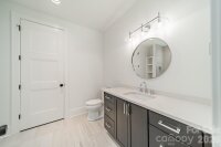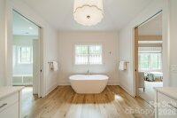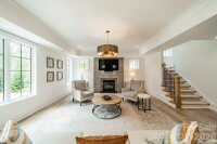 Beautifully designed and thoughtfully crafted, this exceptional home blends luxury with everyday livability. The chef’s kitchen is a true centerpiece, featuring premium Thermador appliances, a spacious walk-in pantry, and high-end designer finishes. Rich hardwood floors flow throughout the home, complemented by soaring ceilings and an abundance of natural light that highlights the private, serene views from both the front and back. The main level offers a versatile guest bedroom or office, while the inviting great room opens seamlessly to a screened porch—perfect for indoor-outdoor living. Upstairs, the stunning primary suite serves as a private retreat, complete with a generous walk-in closet and spa-like feel. The fully finished basement provides a large entertainment space ideal for gatherings, movie nights, or recreation. Designed with future convenience in mind, the home includes a built-in shaft for a potential elevator. An additional upstairs room offers flexibility as a fourth bedroom with a private bath or a secluded office with its own den. This home effortlessly combines elegance, comfort, and functionality in every detail.