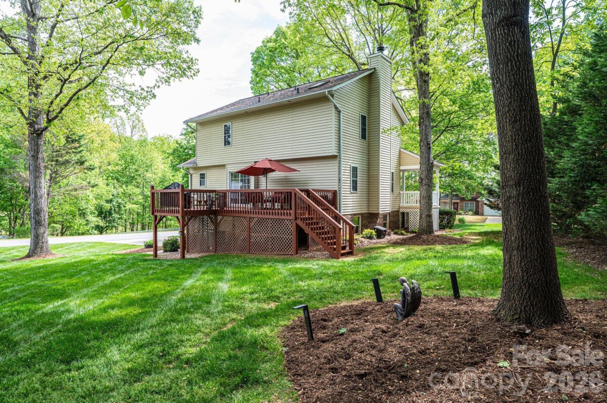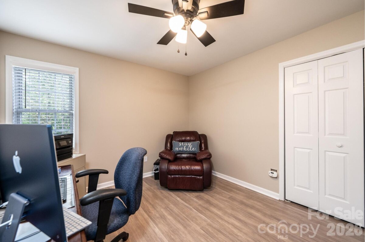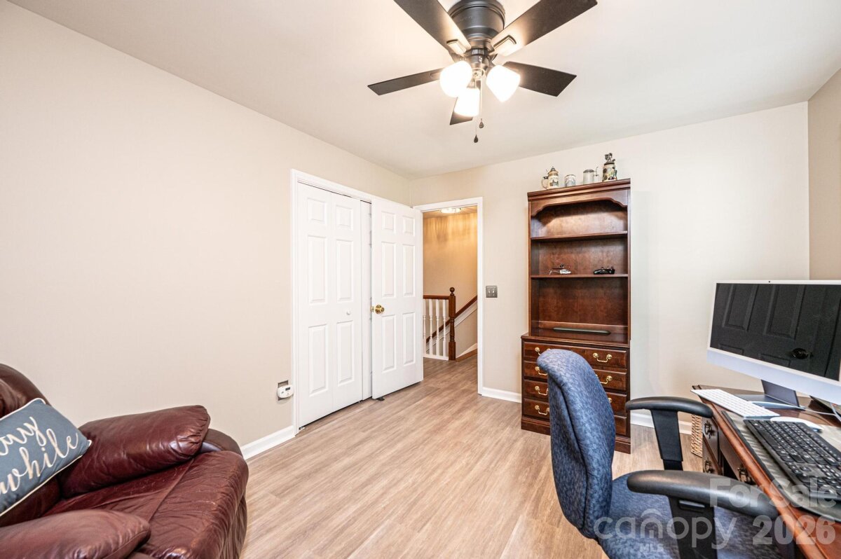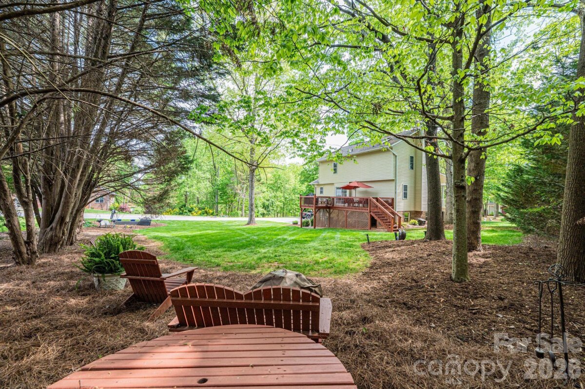 Nestled in the desirable Providence Forest community, this impeccably maintained home offers comfort, style, and exceptional curb appeal on a beautifully landscaped, level corner lot—complete with a charming covered front porch perfect for relaxing and welcoming guests. Featuring three bedrooms and two-and-a-half baths, this residence provides a thoughtful layout designed for both everyday living and entertaining. The main level showcases a spacious great room filled with natural light, a versatile office or flex space ideal for working from home or hobbies, and an inviting eat-in kitchen perfect for casual dining and gathering. Upstairs, the primary suite serves as a relaxing retreat with a vaulted ceiling, accompanied by two additional bedrooms and a full bath. An unfinished basement offers ample storage or the potential for future expansion. Step outside to enjoy the deck overlooking the serene yard—an ideal setting for outdoor relaxation or entertaining. This home combines meticulous care, functional living spaces, and a prime location—ready to welcome its next owner.