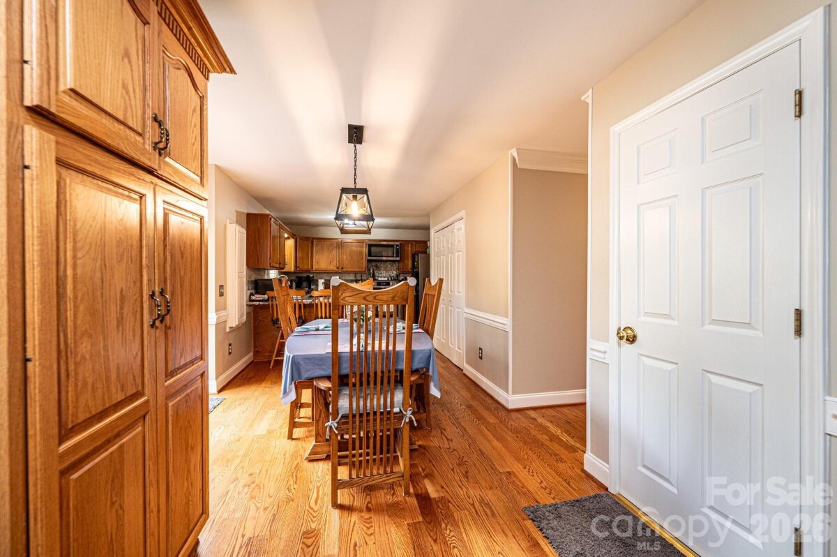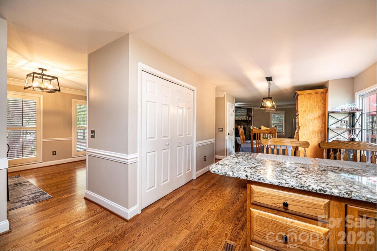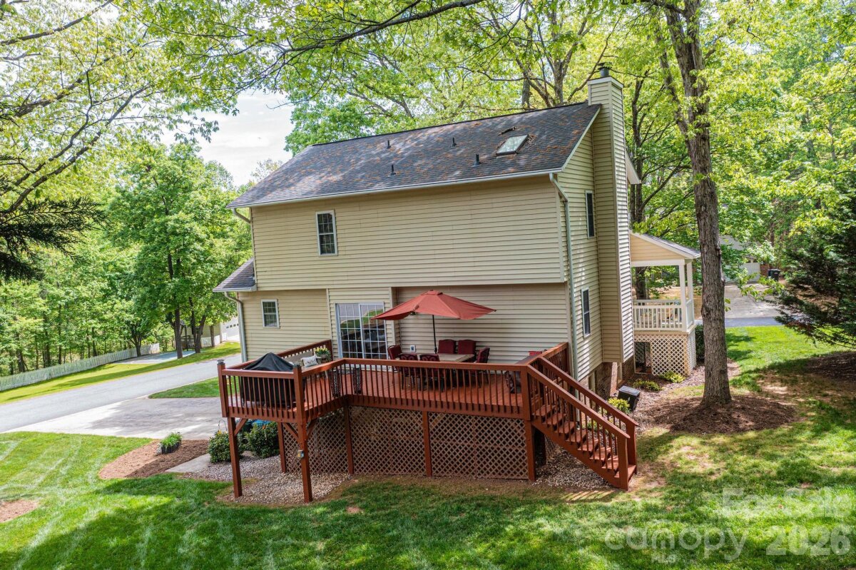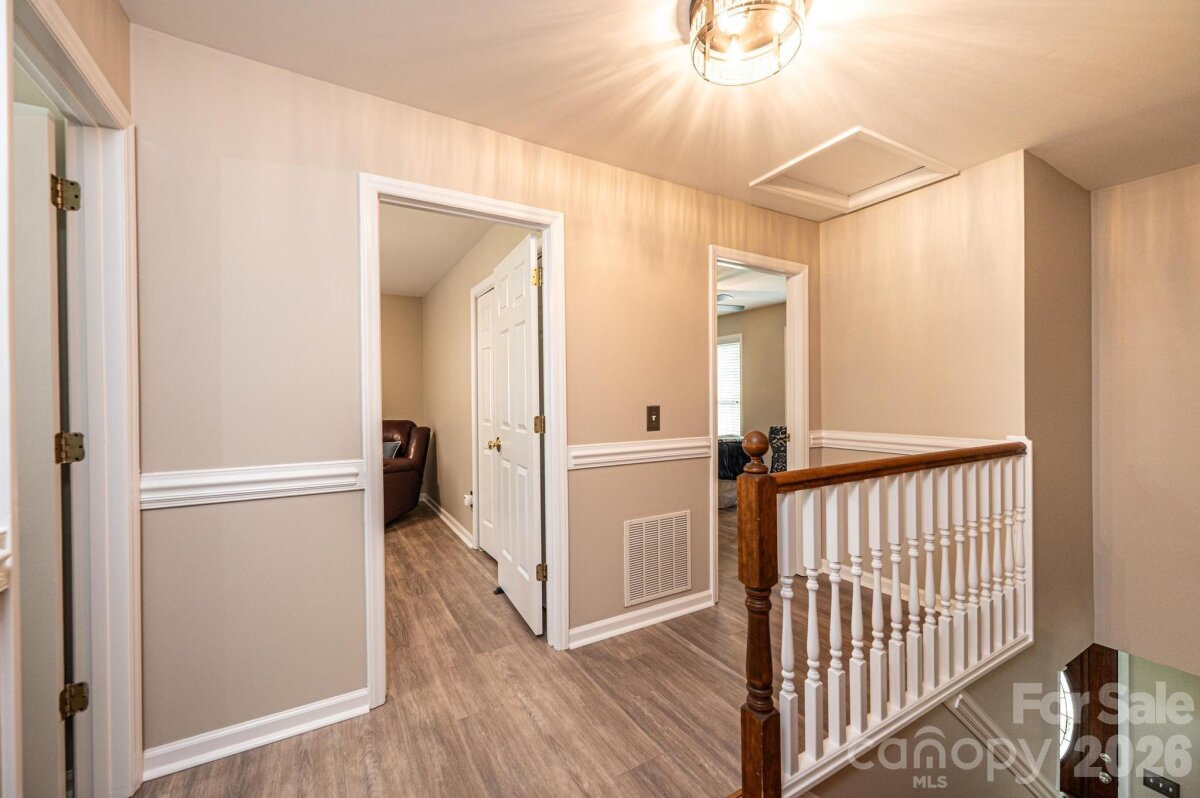 Nestled in the desirable Providence Forest community, this impeccably maintained home offers comfort, style, and exceptional curb appeal on a beautifully landscaped, level corner lot—complete with a charming covered front porch perfect for relaxing and welcoming guests. Featuring three bedrooms and two-and-a-half baths, this residence provides a thoughtful layout designed for both everyday living and entertaining. The main level showcases a spacious great room filled with natural light, a versatile office or flex space ideal for working from home or hobbies, and an inviting eat-in kitchen perfect for casual dining and gathering. Upstairs, the primary suite serves as a relaxing retreat with a vaulted ceiling, accompanied by two additional bedrooms and a full bath. An unfinished basement offers ample storage or the potential for future expansion. Step outside to enjoy the deck overlooking the serene yard—an ideal setting for outdoor relaxation or entertaining. This home combines meticulous care, functional living spaces, and a prime location—ready to welcome its next owner.