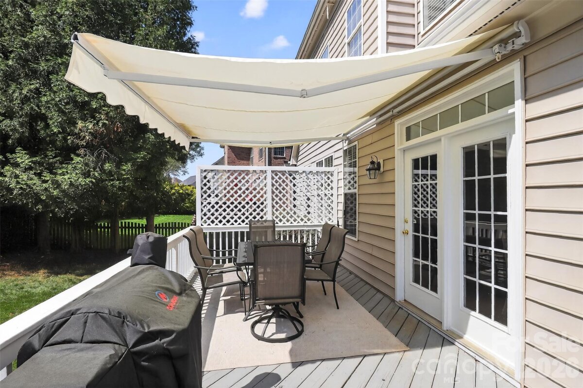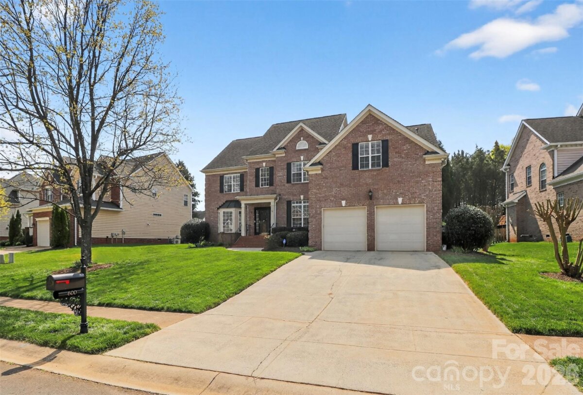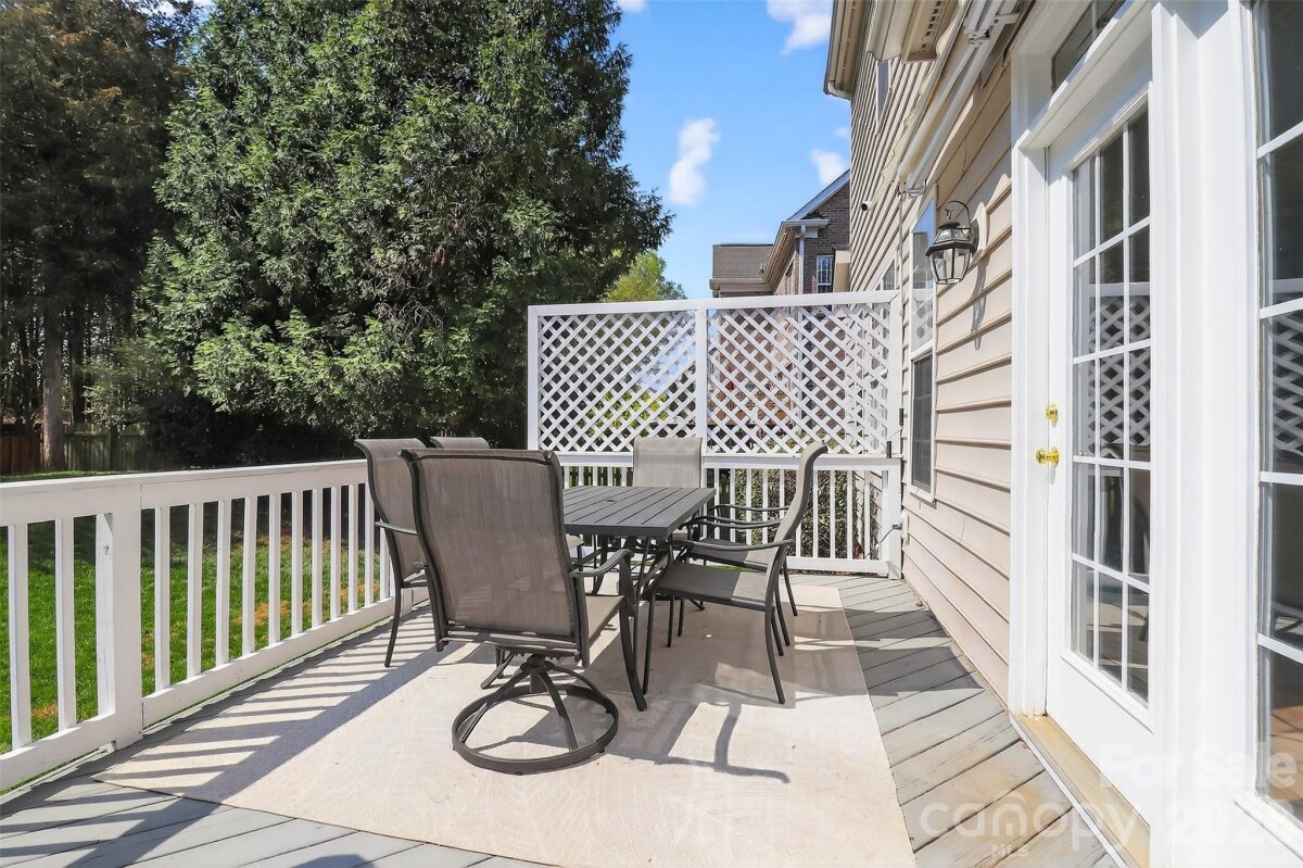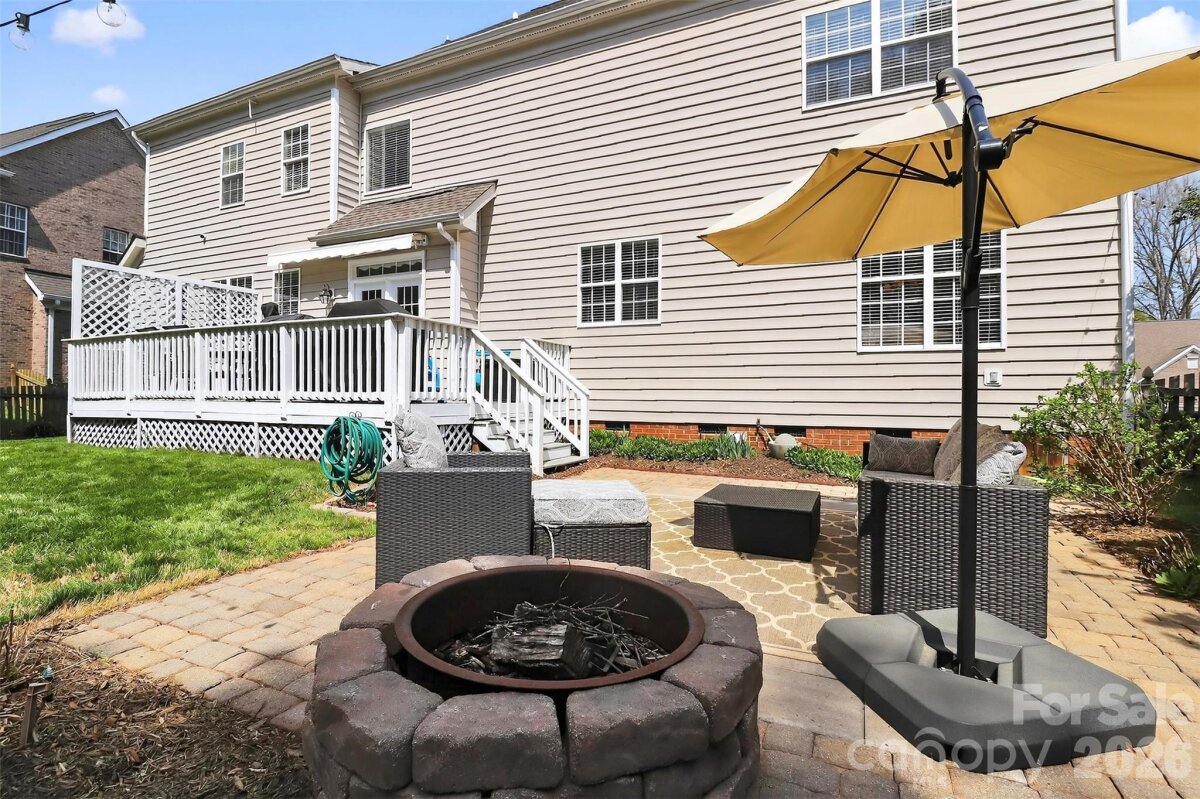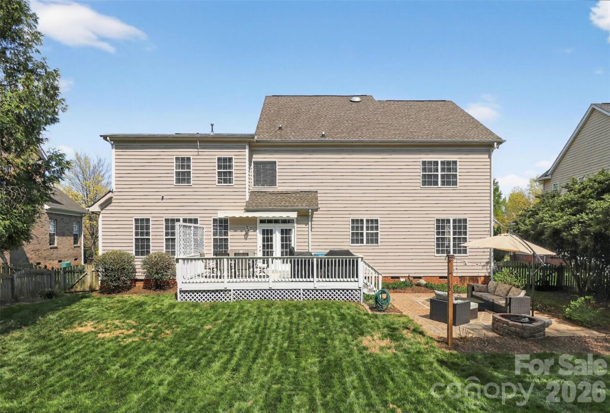 Lovely 6 bedroom home with guest suite on main level. Large bonus room/bedroom. Natural light floods the main level that welcomes guests into the 2-story foyer framed by gracious living and dining rooms. Kitchen is a dream with tons of cabinets and counter space, a breakfast area and is open to the family room. Main level is rounded out by the guest suite and laundry room. A second staircase leads upstairs to a generous primary suite boasting an adjacent sitting area. 3 more bedrooms and a large bonus room that functions as the 6th bedroom. Don't miss the inviting deck and paver patio areas that compliment the lush green yard that is fenced in. All of this space and lovliness situated in popular Hunter Oaks close to Blakeney. A quick 10 min to Rea Farms area and 485 makes commuting effortless. Don't miss this stunning home.