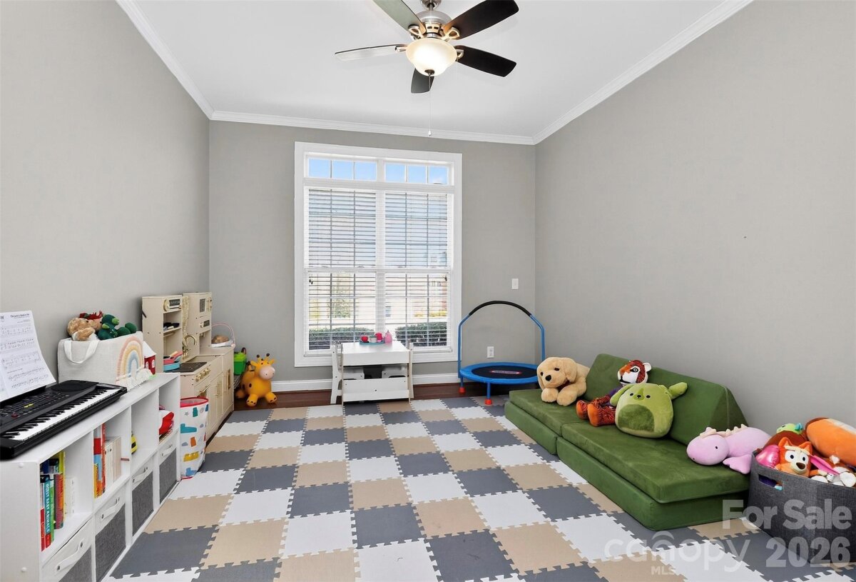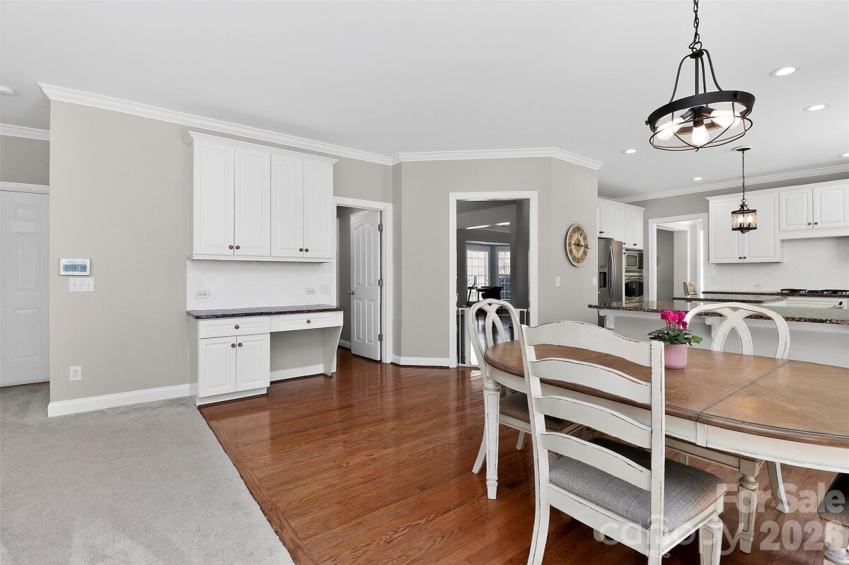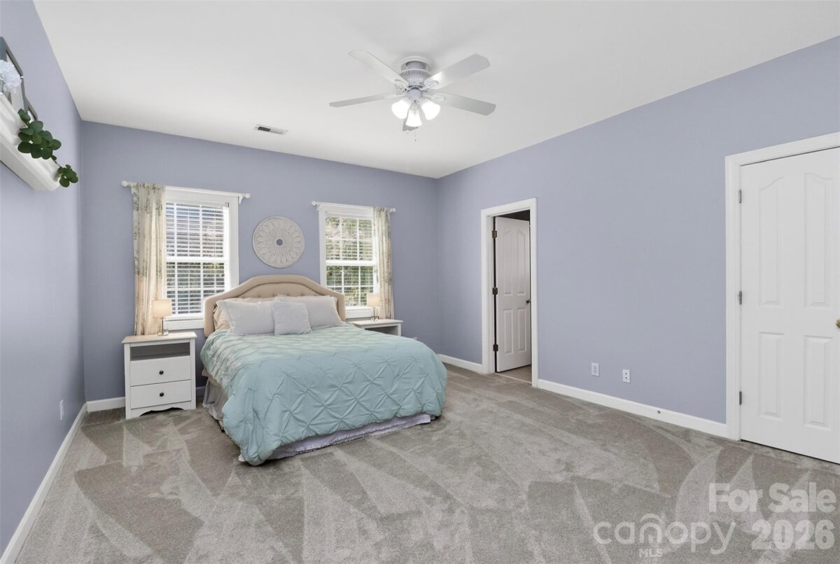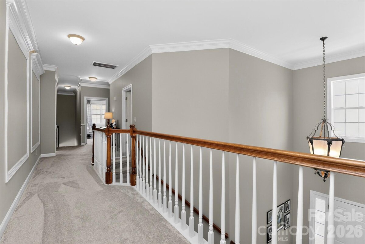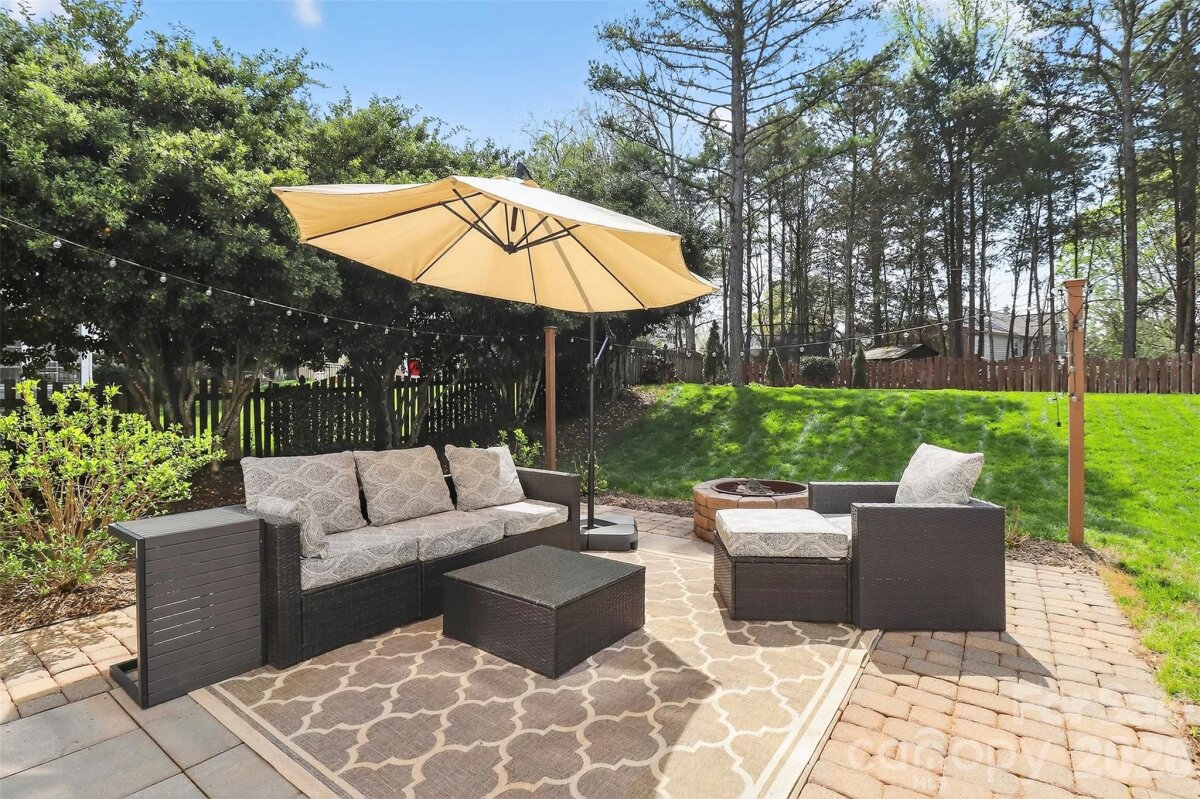 Lovely 6 bedroom home with guest suite on main level. Large bonus room/bedroom. Natural light floods the main level that welcomes guests into the 2-story foyer framed by gracious living and dining rooms. Kitchen is a dream with tons of cabinets and counter space, a breakfast area and is open to the family room. Main level is rounded out by the guest suite and laundry room. A second staircase leads upstairs to a generous primary suite boasting an adjacent sitting area. 3 more bedrooms and a large bonus room that functions as the 6th bedroom. Don't miss the inviting deck and paver patio areas that compliment the lush green yard that is fenced in. All of this space and lovliness situated in popular Hunter Oaks close to Blakeney. A quick 10 min to Rea Farms area and 485 makes commuting effortless. Don't miss this stunning home.