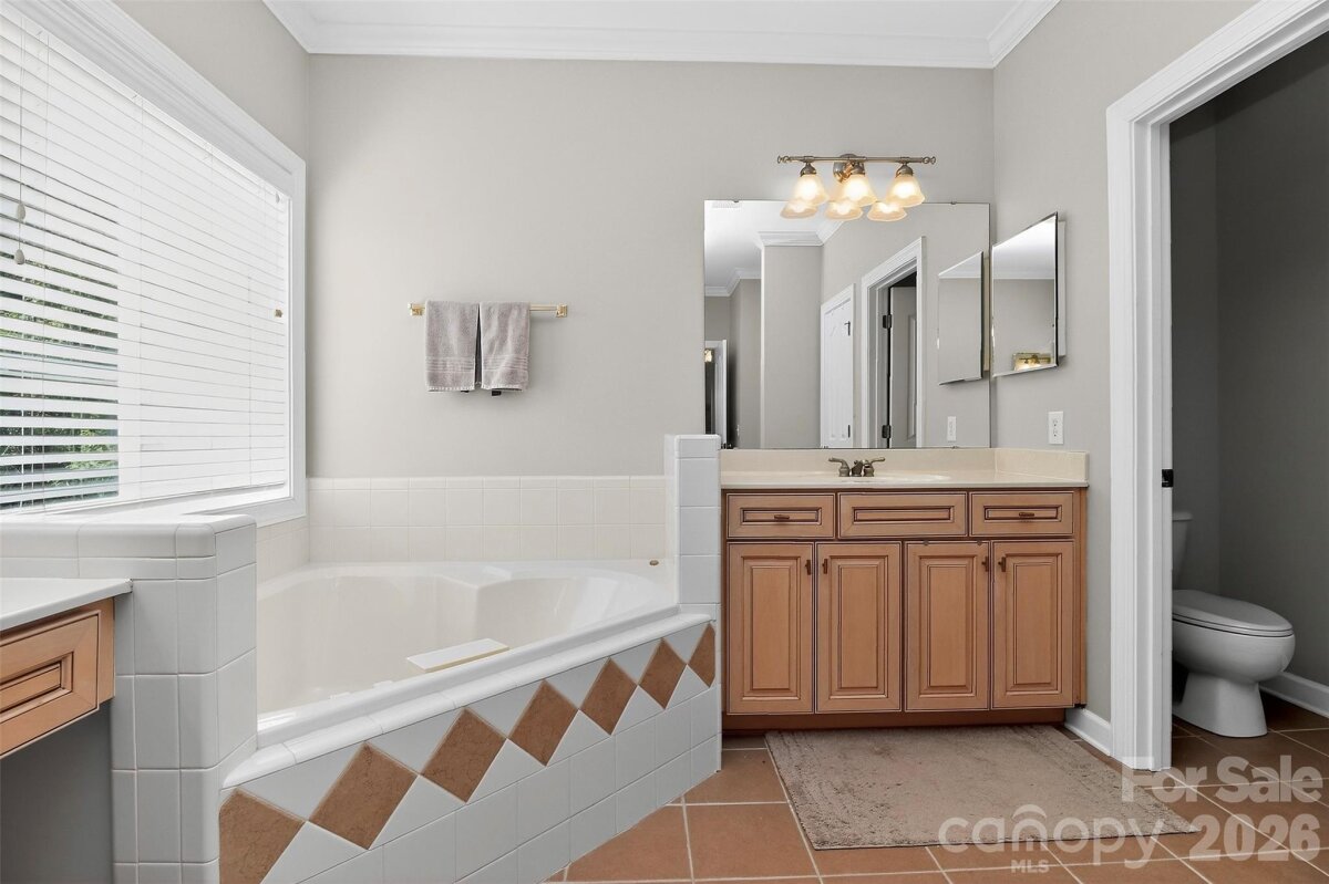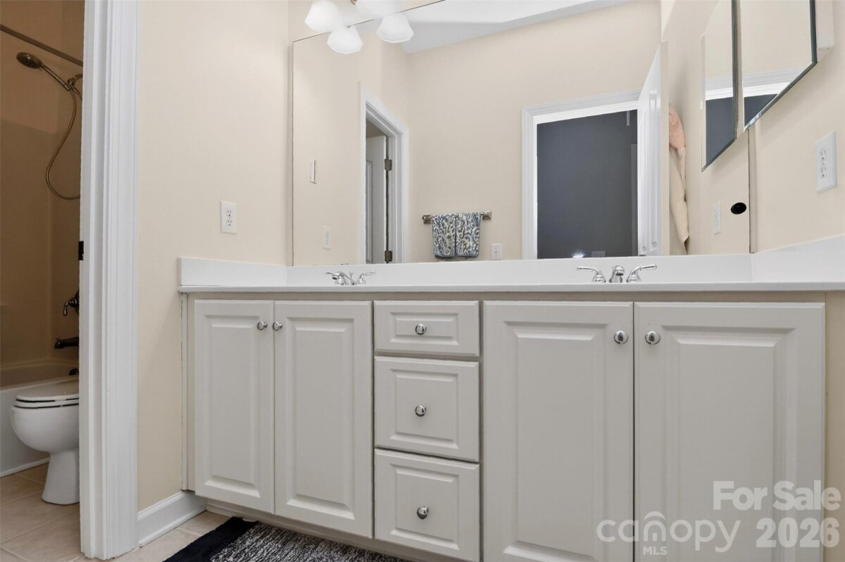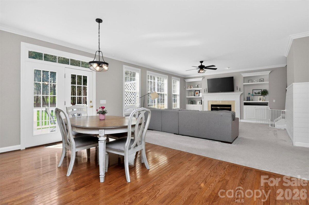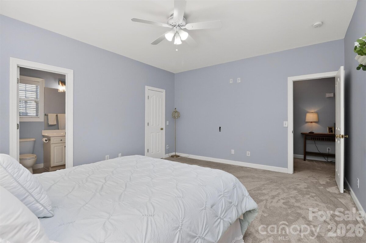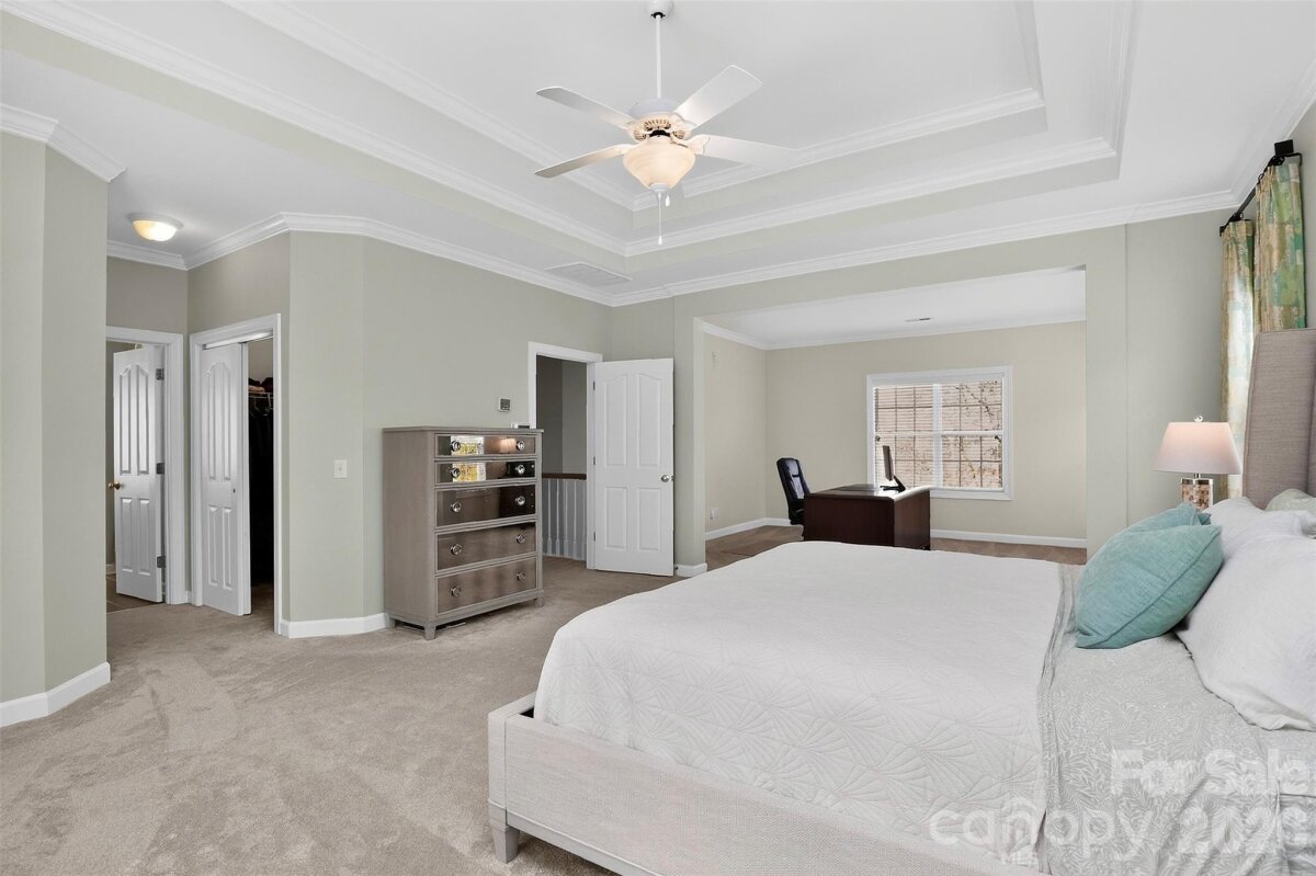 Lovely 6 bedroom home with guest suite on main level. Large bonus room/bedroom. Natural light floods the main level that welcomes guests into the 2-story foyer framed by gracious living and dining rooms. Kitchen is a dream with tons of cabinets and counter space, a breakfast area and is open to the family room. Main level is rounded out by the guest suite and laundry room. A second staircase leads upstairs to a generous primary suite boasting an adjacent sitting area. 3 more bedrooms and a large bonus room that functions as the 6th bedroom. Don't miss the inviting deck and paver patio areas that compliment the lush green yard that is fenced in. All of this space and lovliness situated in popular Hunter Oaks close to Blakeney. A quick 10 min to Rea Farms area and 485 makes commuting effortless. Don't miss this stunning home.