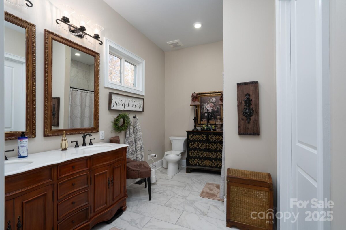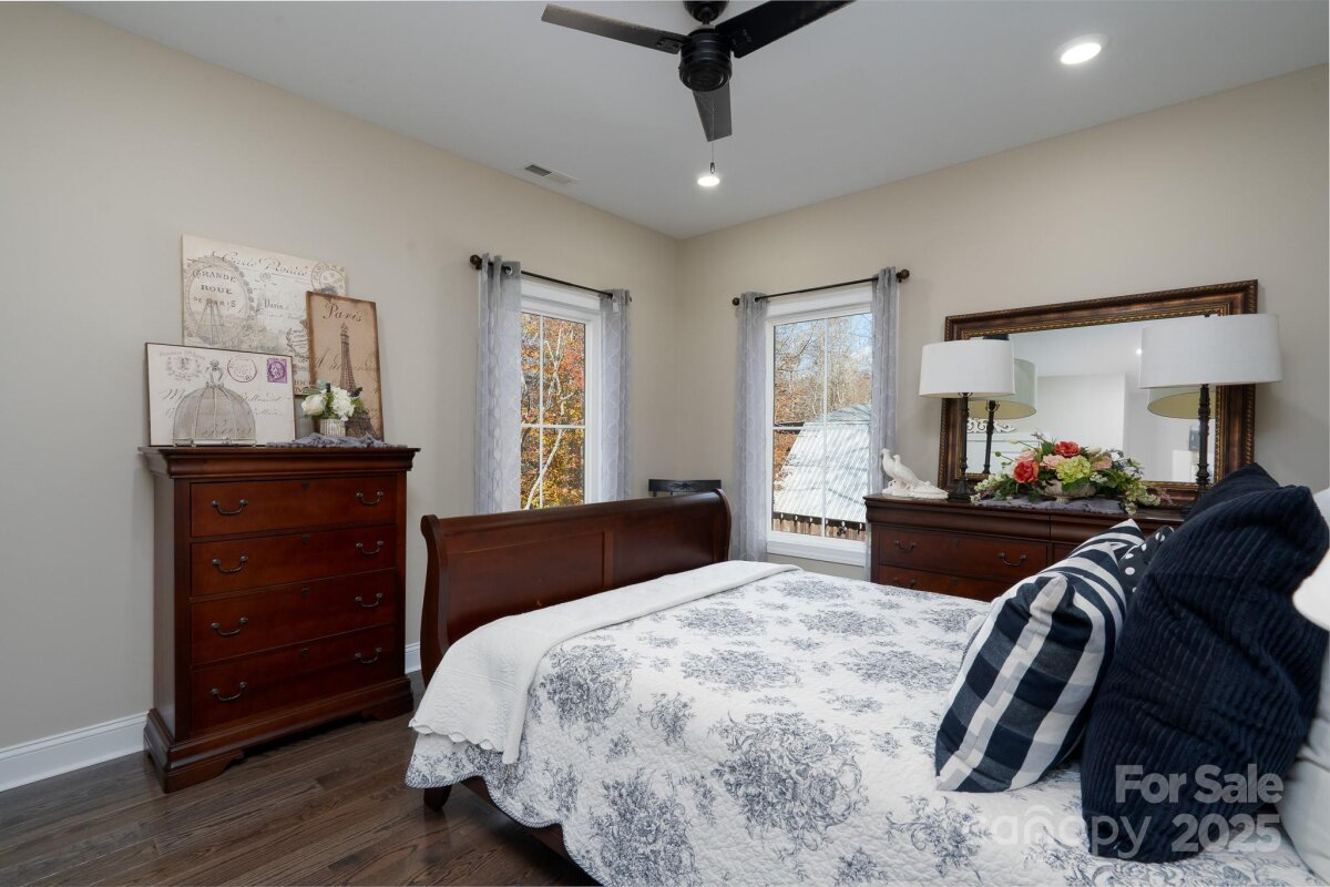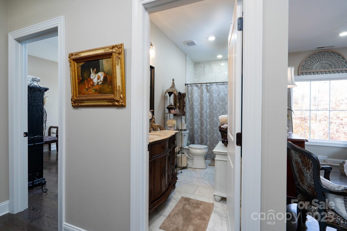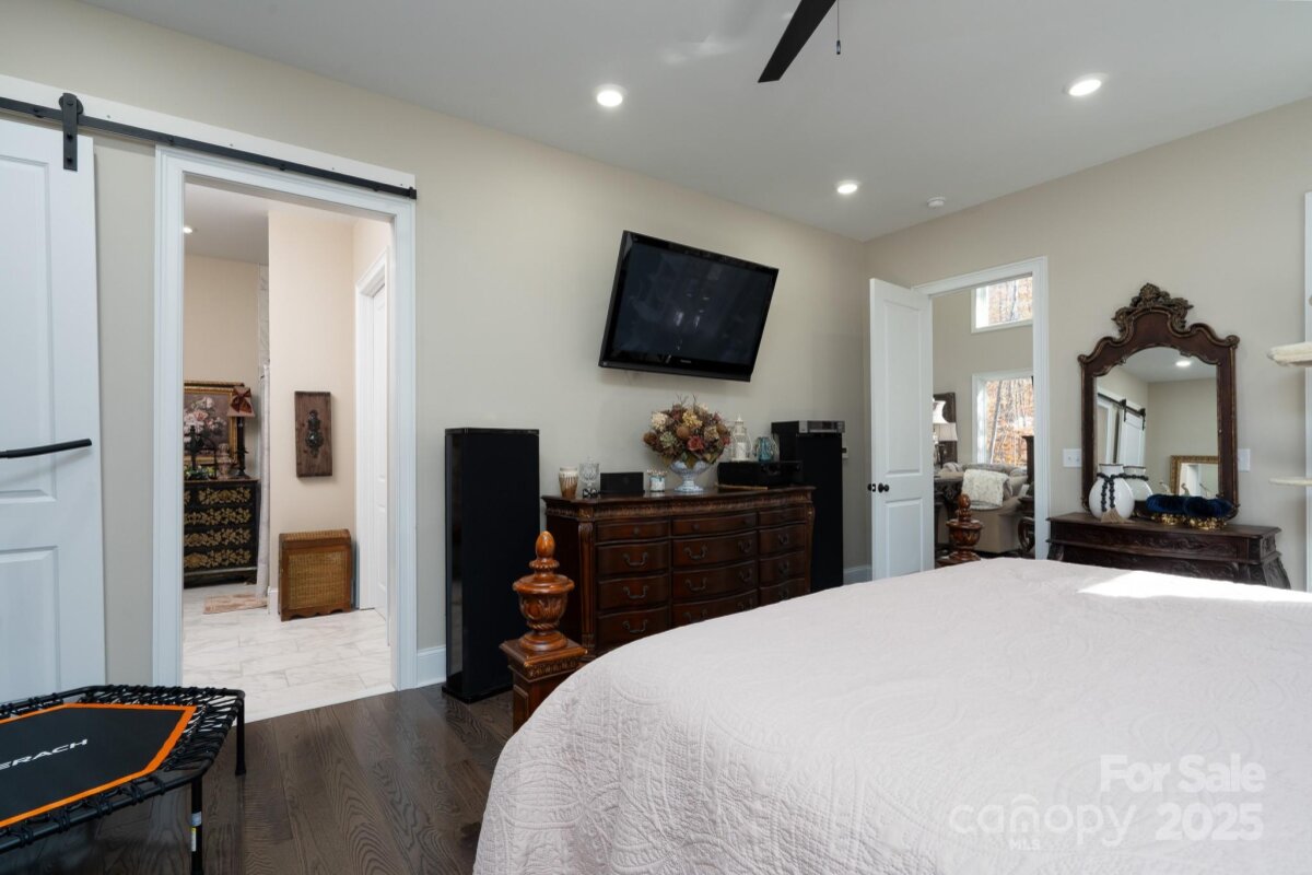 Custom built home sitting on just under 20 wooded acres on the out skirts of Statesville. This property is ideal for those looking for complete privacy with quick access to the interstate (5.3 miles), shopping (3.3 miles) and Lake Norman State Park (3.3 miles). Main home consists of 3 beds, 2.5 baths, large bonus area and flex space. Lower level has an open floorplan with an abundance of windows to let in the natural light. Beautiful kitchen with large island and walk-in pantry. 2-story Great Room with 16' ceilings leads to a covered back deck overlooking the spring fed creek and waterfall. Just off the GR is the primary suite and primary bath which also has access to the back deck. 1/2 bath and laundry are also located on the lower level. Upstairs you'll find a spacious bonus area for games, reading or office area. 2 more bedrooms, full bath, flex space and walk-in attic access for storage. When you're ready for some R&R, the sitting area by the creek is a great place to go. Nothing beats the sound of a flowing creek with waterfall. When you're done relaxing, it's time to explore the rest of the property. With just approx. 20 acres at your fingertips, let your imagination run wild. Set up your trail cameras to see all the wildlife running free on your property. The detached barn has a studio apt upstairs with full bath and kitchenette. The downstairs is currently being used as an office but also has a full bath and storage.