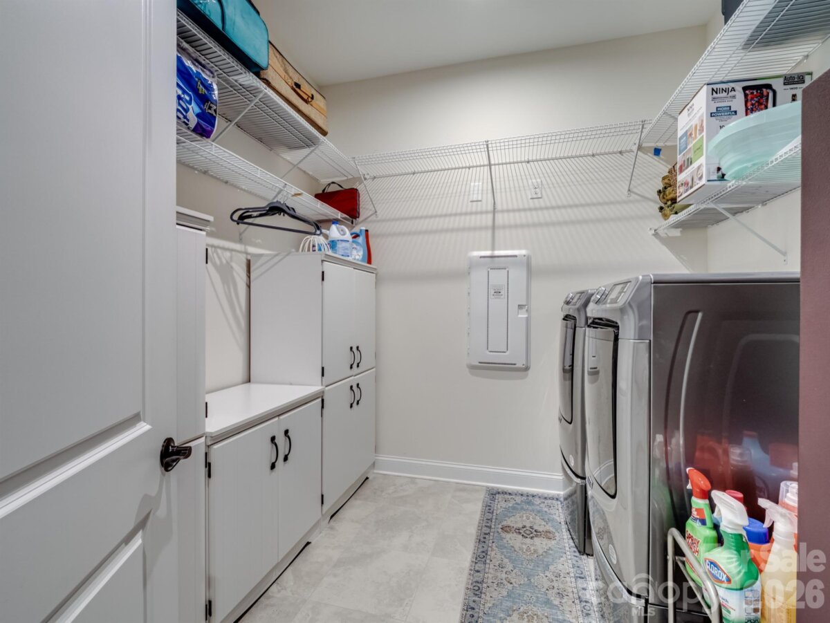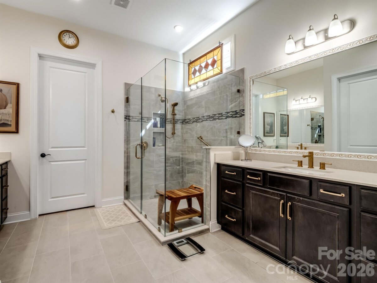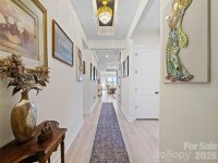 Beautiful and meticulously maintained, this stunning home offers designer finishes, spacious living areas, and access to resort-style amenities. A private office with elegant French doors provides the perfect space for working from home or quiet study. The chef’s kitchen is a true highlight, featuring a massive island with a one-bowl sink, 5-burner gas cooktop, wall oven, walk-in pantry, quartz countertops, and a porcelain marble backsplash—ideal for both everyday living and entertaining. Natural light pours into the sunroom, which extends off the living room to create a bright and airy space perfect for lounging or hosting guests. The primary bedroom suite is a peaceful retreat with dual vanities, a large tiled shower, and a custom closet organizer designed for optimal storage and convenience. Secondary bedrooms are spacious and thoughtfully designed. Bedroom 2 includes its own private bathroom, making it perfect for guests or as a mother-in-law suite. Bedroom 3 offers a generous walk-in closet, providing plenty of storage space. Throughout the home, stylish design elements such as tray ceiling accents, updated chandeliers, and 7.5 -inch luxury vinyl plank (LVP) flooring elevate the overall aesthetic. Large-format tile in wet areas adds both beauty and durability. The garage is equally impressive, featuring gleaming epoxy flooring and a utility sink for easy clean-up. This home is conveniently located near Village Commons, offering quick access to shopping, dining, and everyday essentials. As part of a vibrant community, residents can enjoy a full suite of resort-style amenities including a clubhouse, art studio, swimming pool, pickleball, bocce ball, and tennis courts. From its functional layout and thoughtful upgrades to its unbeatable location and lifestyle offerings, this home truly has it all. Don’t miss the opportunity to make it yours!