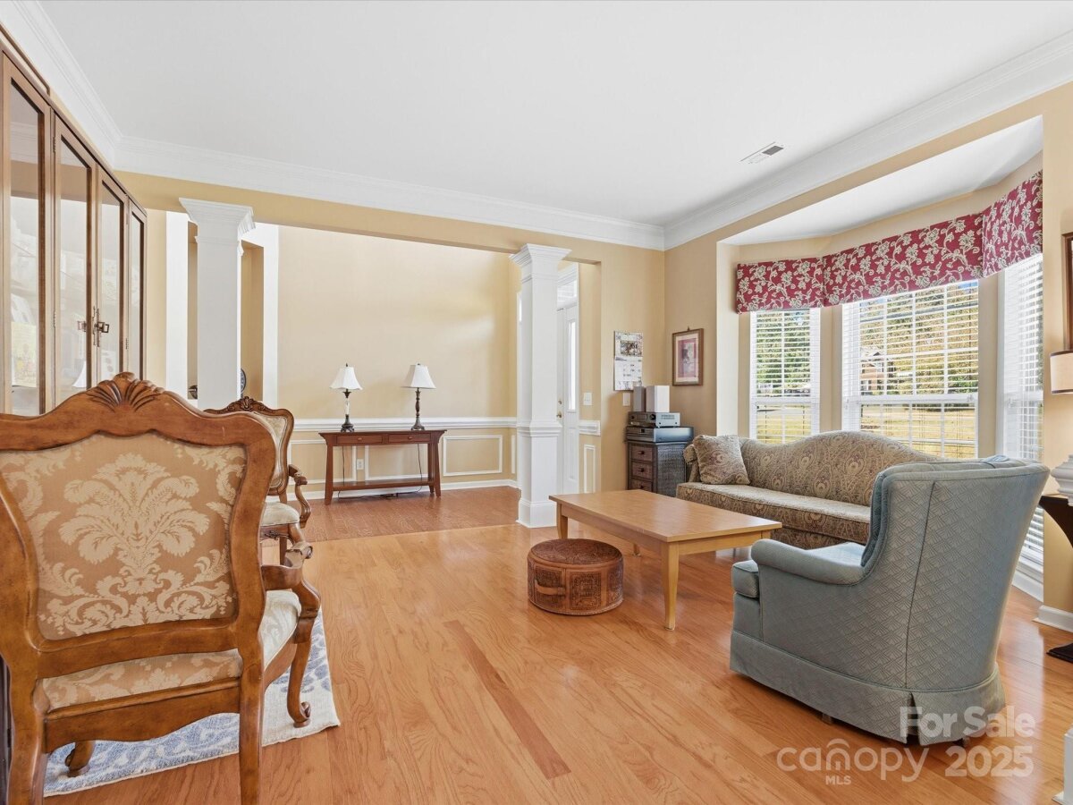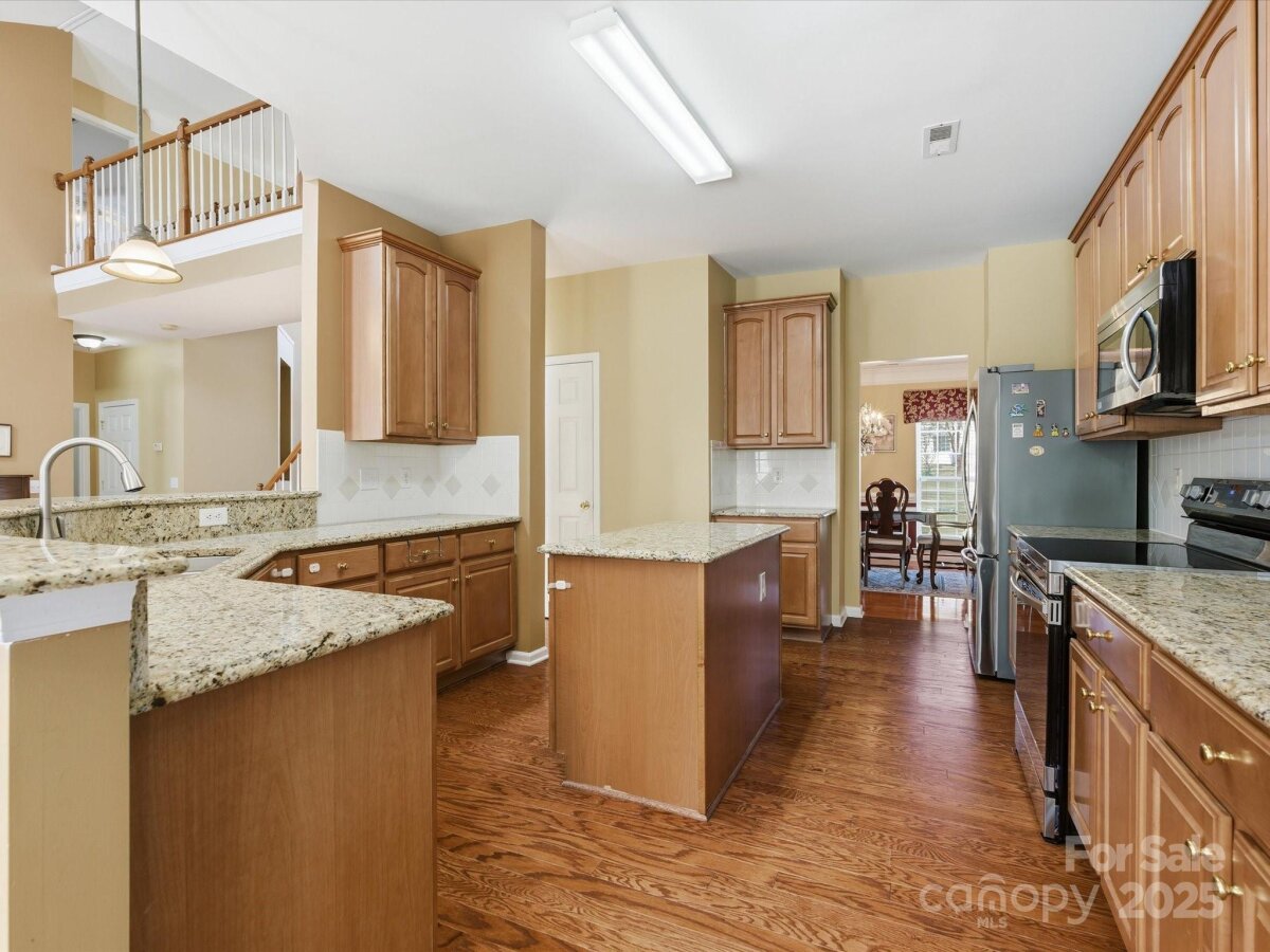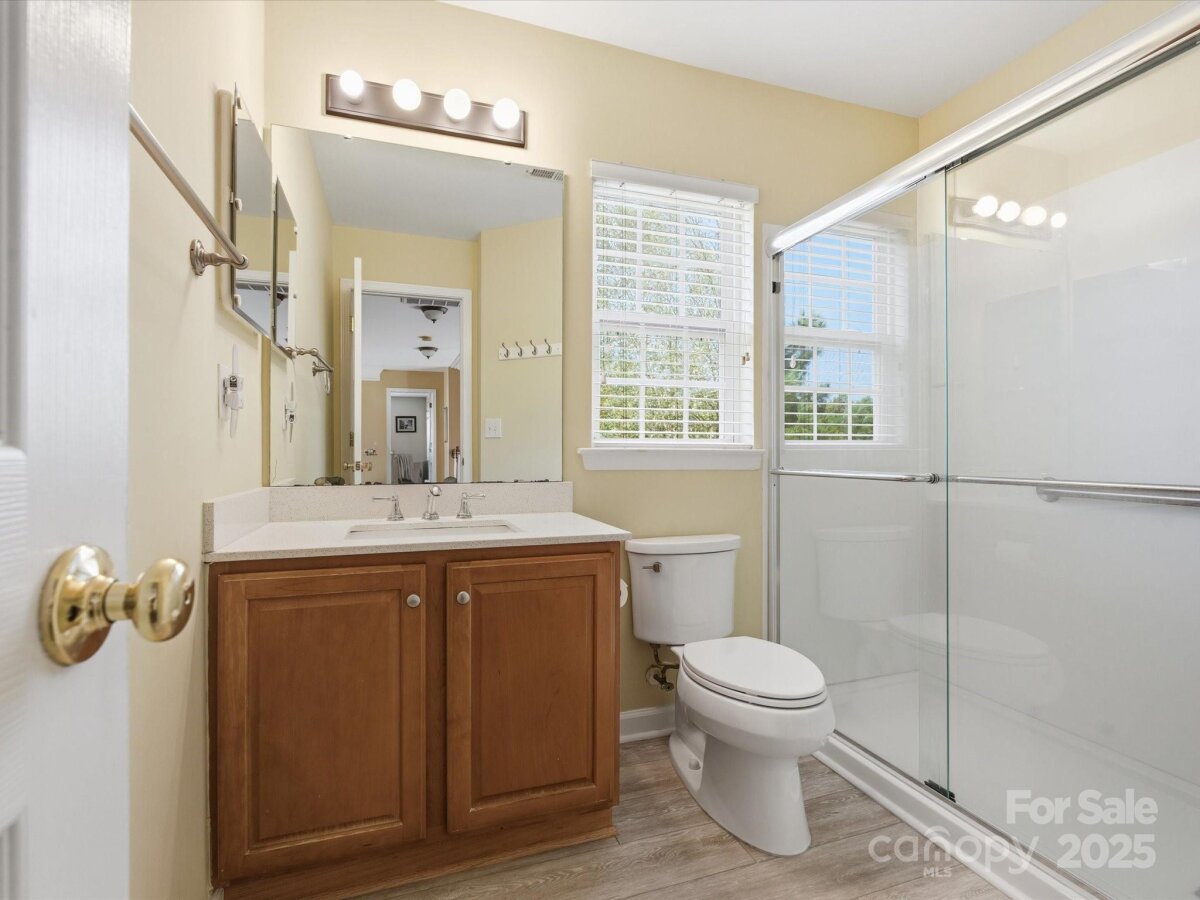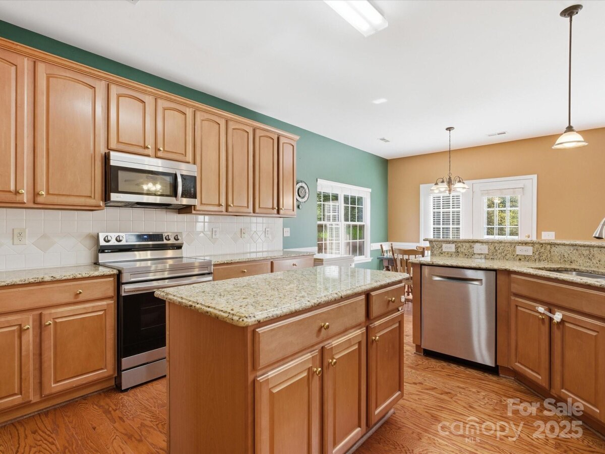 Elegant Living in the Village of Wesley Chapel's Stonegate community. Timeless curb appeal with brick and classic vinyl construction, 4br, 2.5ba + BONUS room. 8m to I-485/Waverly. 5m to Atrium Health Union West. Stonegate community is known for its tree-lined streets, sidewalks, and access to a clubhouse, swimming pool, playground, ponds, and meandering walking trails. Step inside the two-story foyer filled with natural light and high-end hardwood flrs throughout the whole home. (No carpet!) Living and dining rooms showcase detailed wainscoting, crown molding, and large windows, perfect for gatherings or quiet evenings. Gourmet chef's kitch features granite counters, stainless steel appliances, center island, ample cabinet space. Bright breakfast area has views of acres of natural habitat owned by the HOA. Great rm has vaulted ceilings, skylights, and a cozy gas-log fireplace—the heart of the home for everyday comfort and entertaining. Main-floor luxury primary suite with vaulted ceilings, room for a sitting area, and walk-in closet. The primary bath includes dual vanities, a soaking tub, and glass-enclosed shower. Upstairs, 3 spacious bedroms and a bonus room (or 5th br) ideal for home office, media and recreation space. Each room offers generous storage and natural light, enhancing the home’s welcoming atmosphere. Walk-in attic space provides a perfect spot for seasonal storage. Relax and entertain in the fenced, level backyard, perfect for gatherings...designed for gardening, grilling, or simply enjoying the peaceful surroundings. Enjoy the perks of an active and connected neighborhood. The community clubhouse, pool, and walking trails foster a friendly, small-town feel just minutes from South Charlotte’s premier shopping and dining and downtown Waxhaw's breweries and restaurants. Served by top-rated Cuthbertson schools. Comfort, sophistication, and community all in one. Discover a place where timeless architecture meets modern living. Welcome Home!