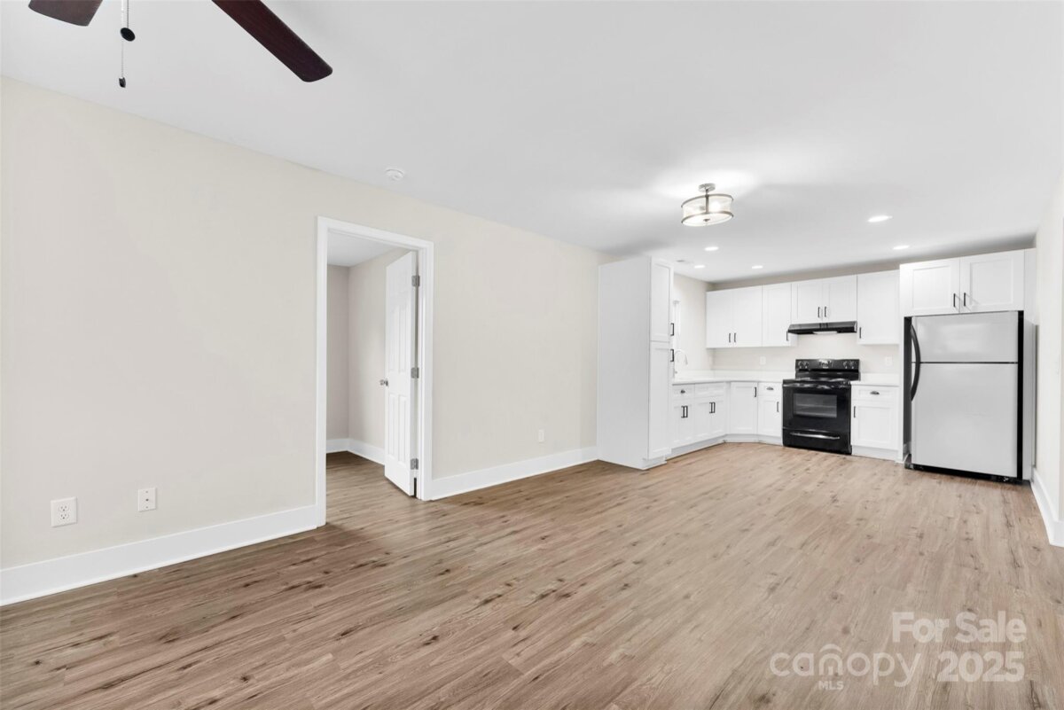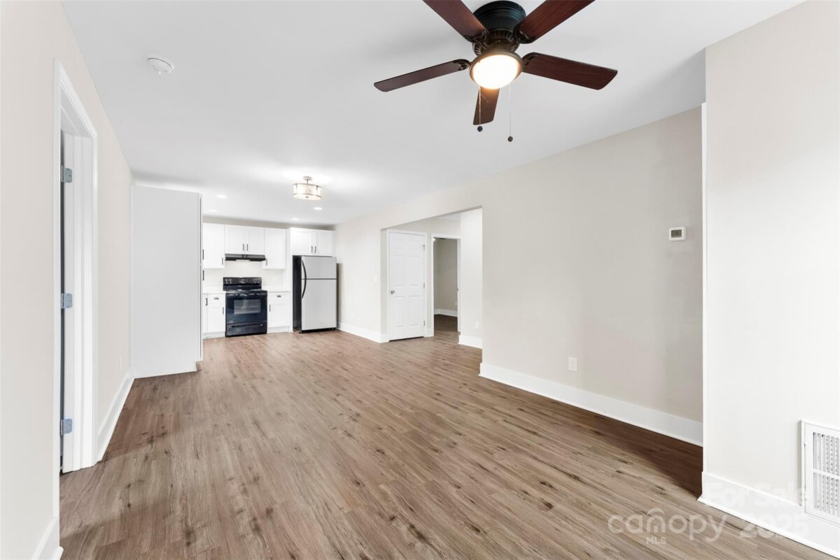 Welcome HOME! Check out this 3BR, 2 BA with NOA HOA, sitting .32AC with 905 Sq ft. As you walk in you will see a spacious family room that overlooks the breakfast area and kitchen with white cabinets, quartz countertop that includes a refrigerator. Laminate flooring throughout, ceiling fans in bedrooms, neutral paint and so much more. Roof 2021, Hvac 2022, Updated electric and plumbing. Spacious backyard with 1 shed and 1 building. New Blinds included on most of the windows Town of Ranlo ball field, splash pad and park are in walking distance. Don't Miss this one.
