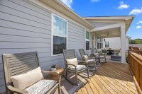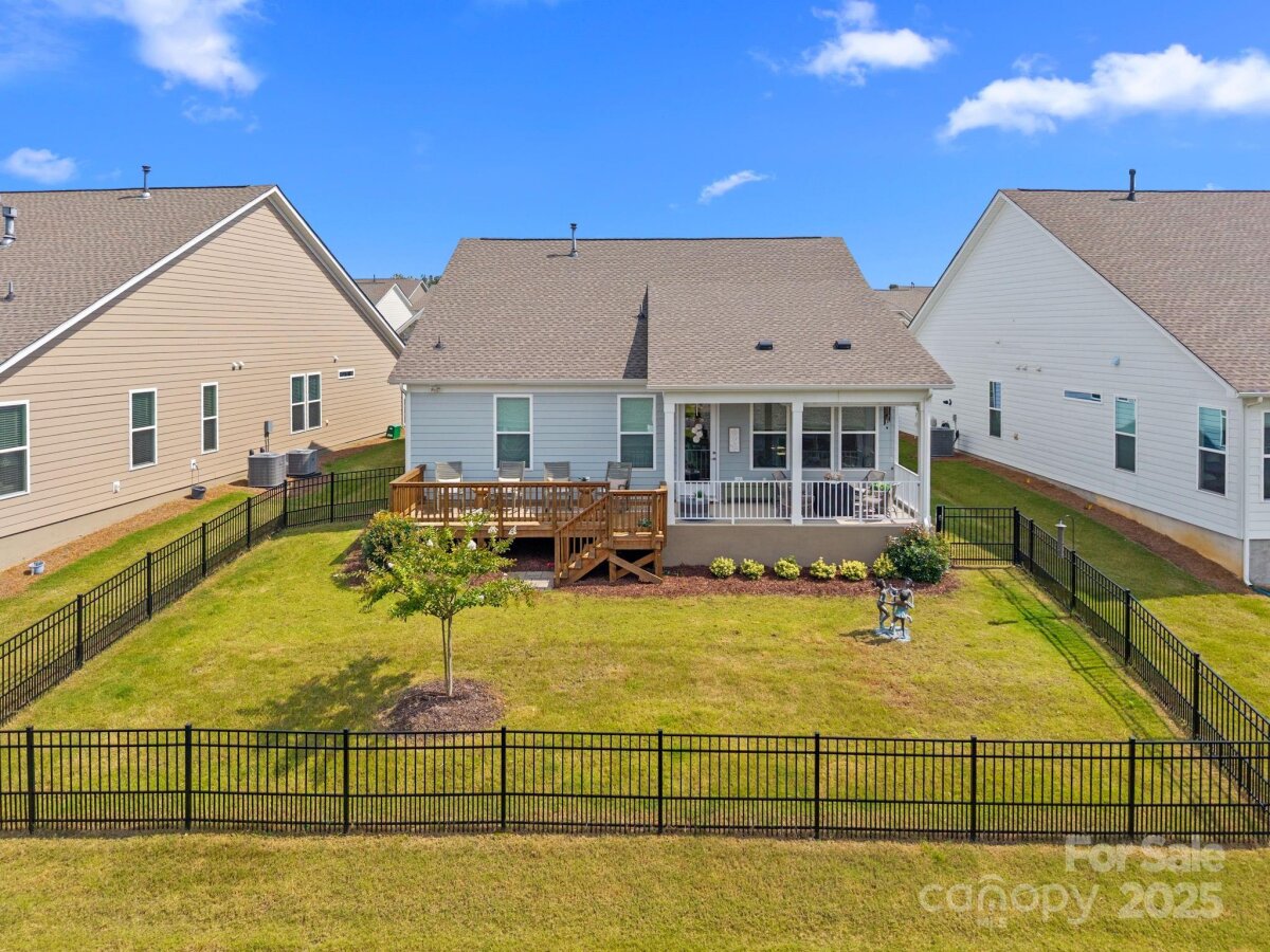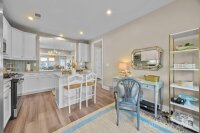 Step into this stunning 2-bedroom Ashford floor plan that combines thoughtful design with modern elegance. The front kitchen layout opens seamlessly into the spacious main living area, highlighted by soaring 11-ft ceilings and a cozy gas fireplace. The kitchen boasts upgraded white cabinetry with under-mount lighting, sleek quartz countertops, a decorative backsplash, and premium GE stainless steel appliances, including a 30" gas range, dishwasher, and microwave. Throughout the main living areas, you’ll find EVP flooring, upgraded light fixtures, and custom window shades, adding both style and functionality. The owner’s suite is a true retreat, featuring a tray ceiling, walk-in closet with custom built-in shelving, and a spa-like bath with his-and-her vanities topped with granite counters. Outdoor living is just as impressive with a fenced-in backyard, a relaxing back porch with plenty of seating for entertaining, and an irrigation system that keeps the beautifully maintained landscaping lush and vibrant year-round. Additional highlights include a 2-car garage with a 4-ft extension for extra storage and space for hobbies. Every detail has been meticulously cared for, giving this home the look and feel of a brand-new property—straight out of a magazine. Enjoy resort-style living in a 55+ community designed for comfort, convenience, and connection. This home is truly move-in ready and waiting for you.