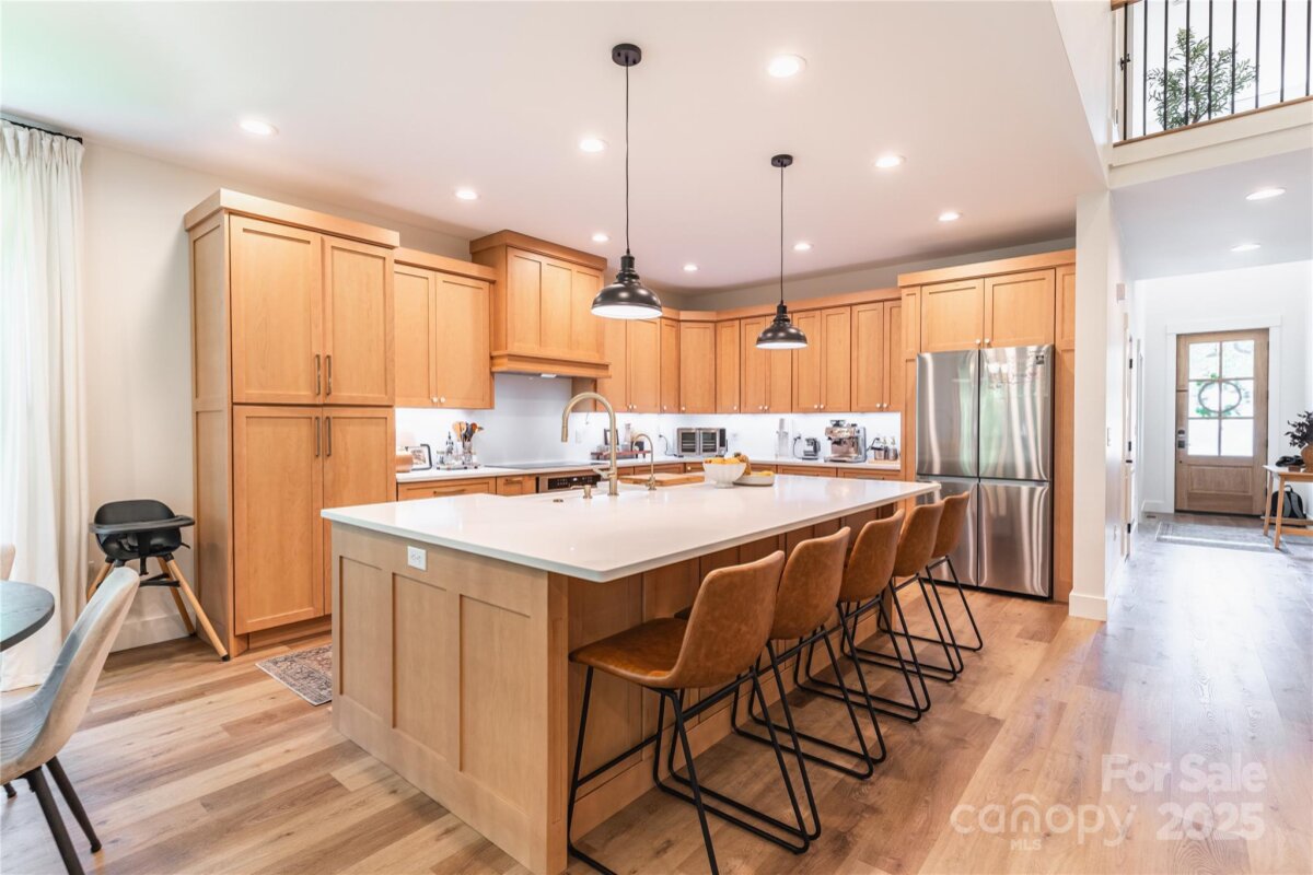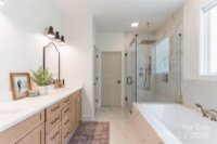 Custom home completed in 2022 nestled in a quiet cul-de-sac, in a well established neighborhood. This spacious home combines modern finishes with timeless style. Open-concept plan with 2 story foyer and high ceilings in the main living area. Gourmet kitchen featuring quartz countertops, custom cabinets, stainless steel appliances, a large island with bar seating and plenty of storage. Main-level master bedroom features tray ceilings, walk-in closet, an en-suite with dual sink vanity, large soaking tub, a spacious shower and a mother-in-law suite on the main level. Two bedrooms on the second floor share a full bathroom. Large bonus area above the garage. Screened-in back porch overlooking the wooded backyard boasts privacy and outdoor living. 1,102 sq ft unfinished walkout basement with endless possibilities. Located minutes from downtown Conover, shopping, schools, I-40 and HWY 16. This home offers suburban tranquility, convenience and most importantly quality construction throughout.